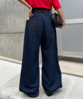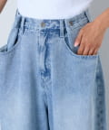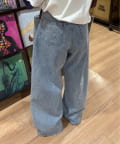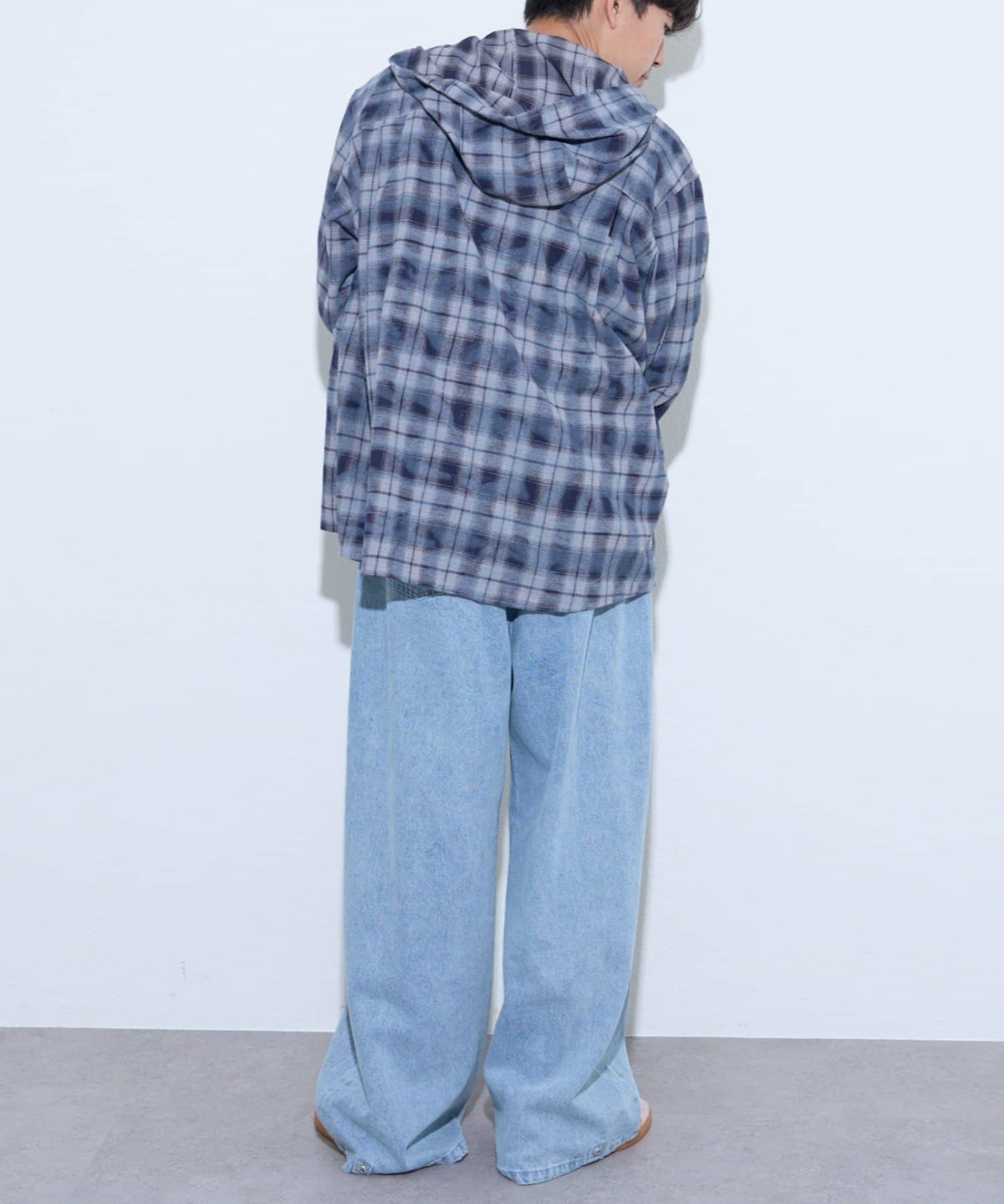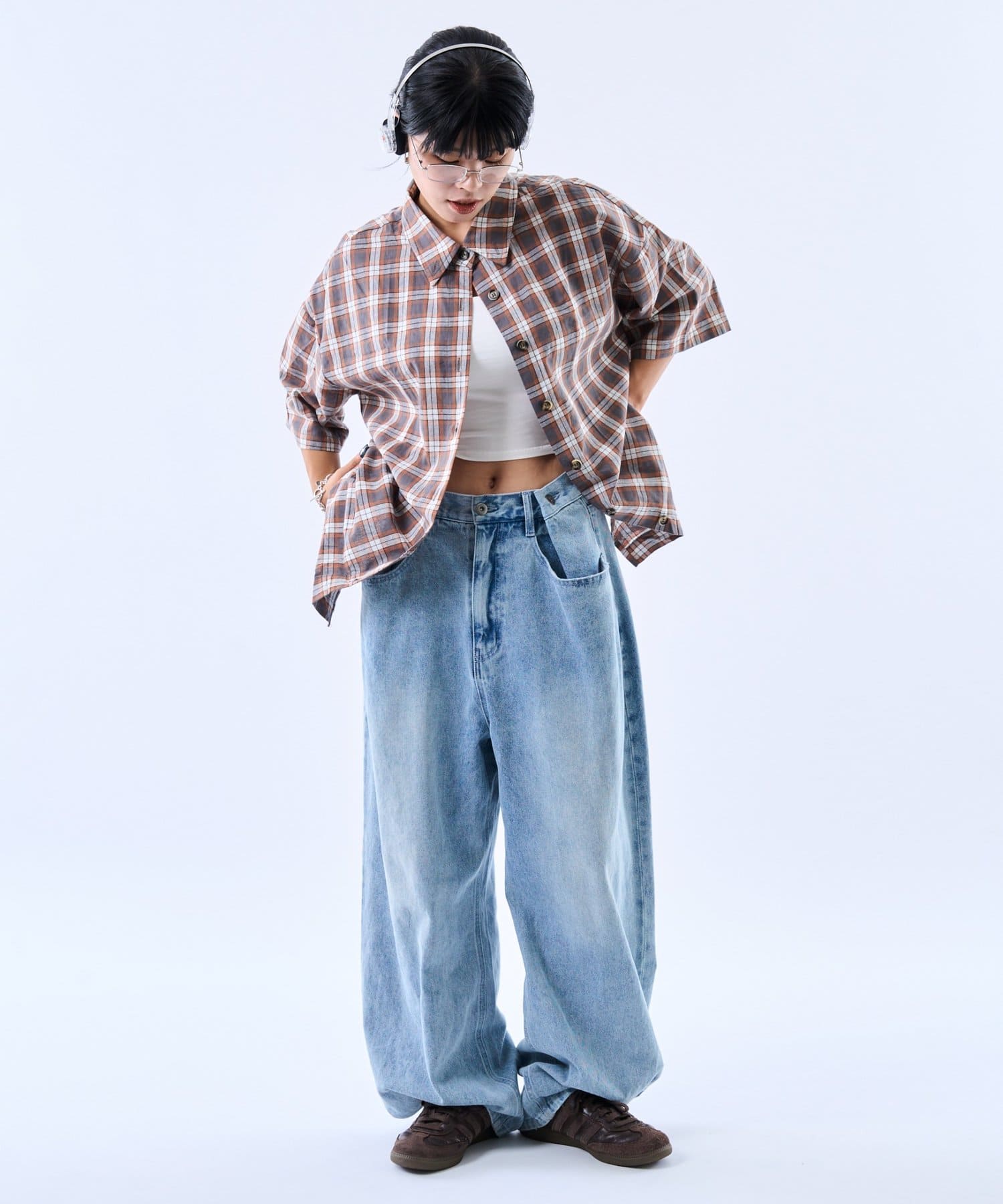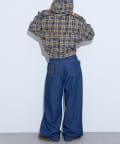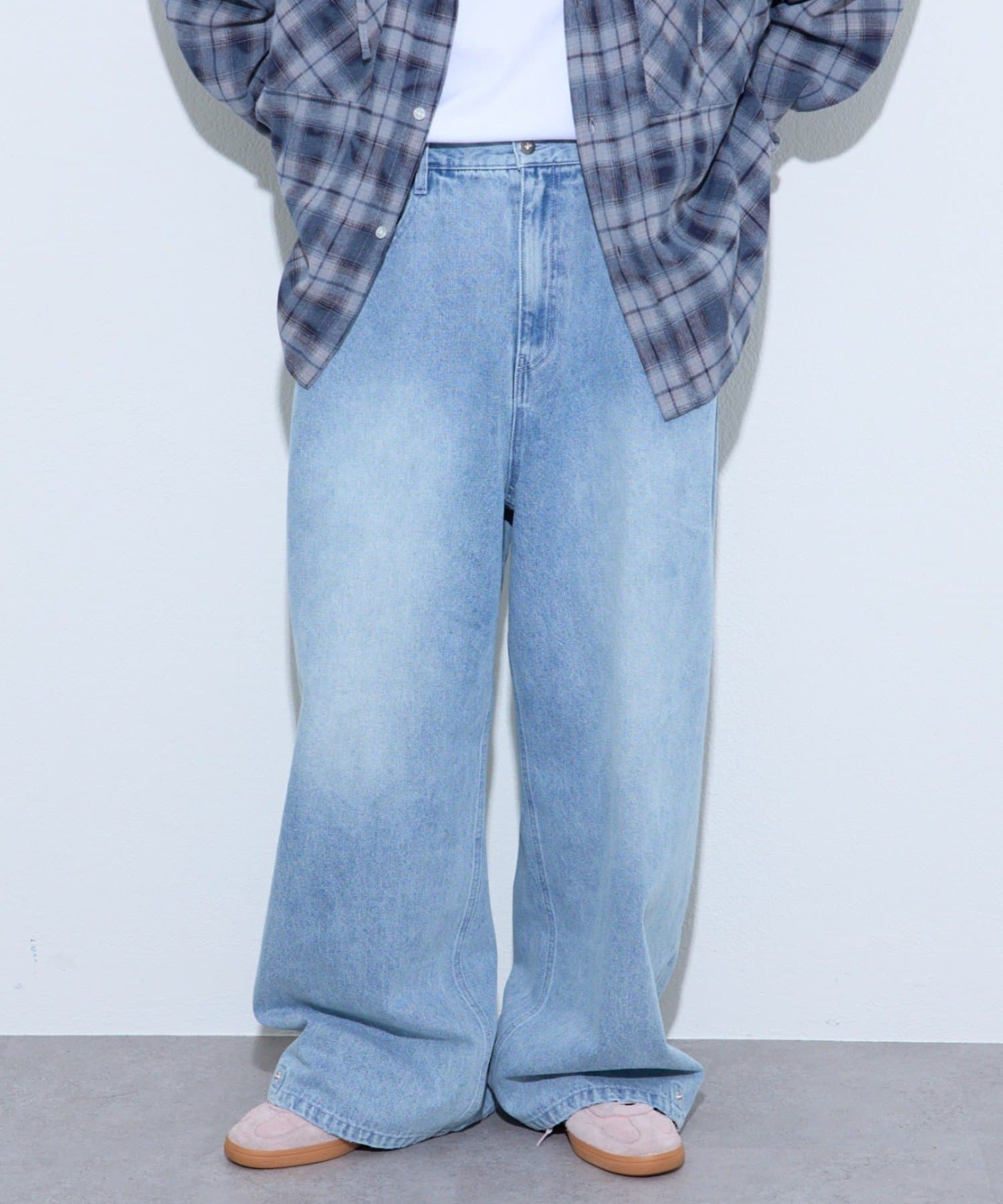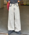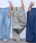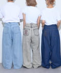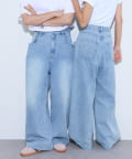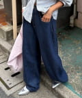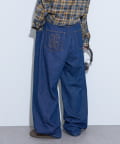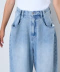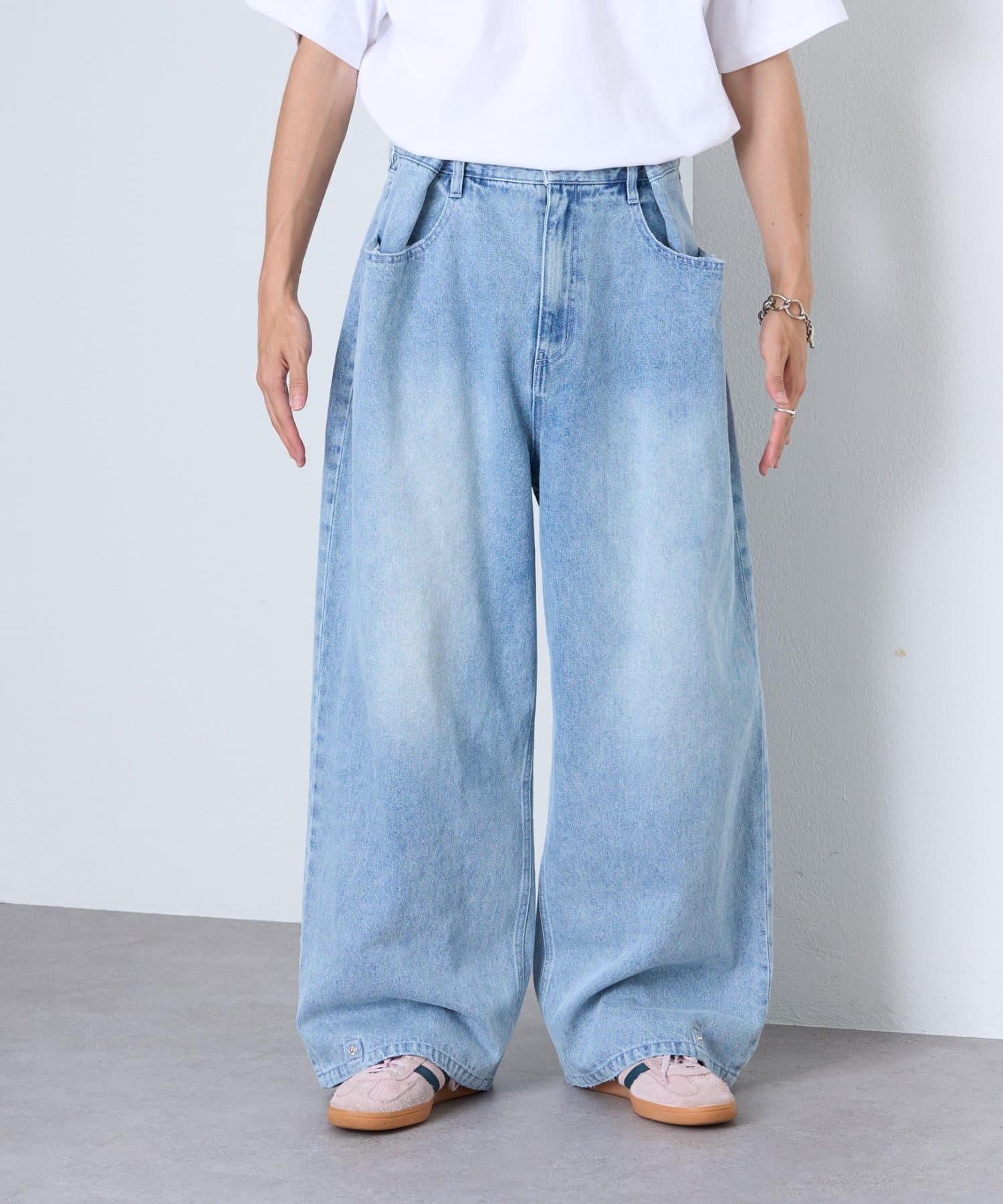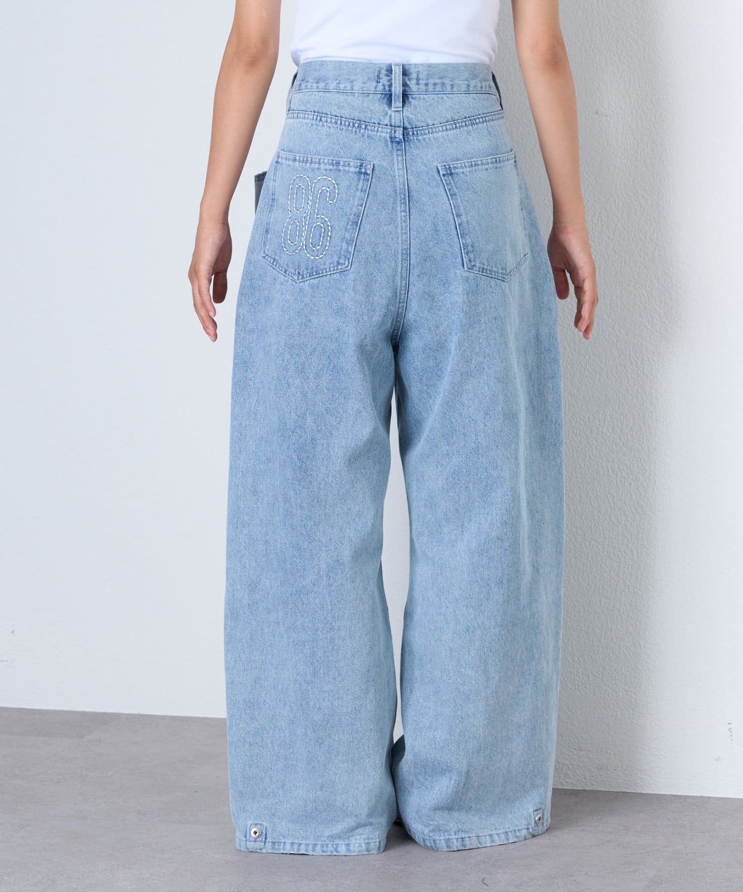 【2WAYシルエット調節可能】【UNISEX】オーバーダイウエストタックデザインデニム