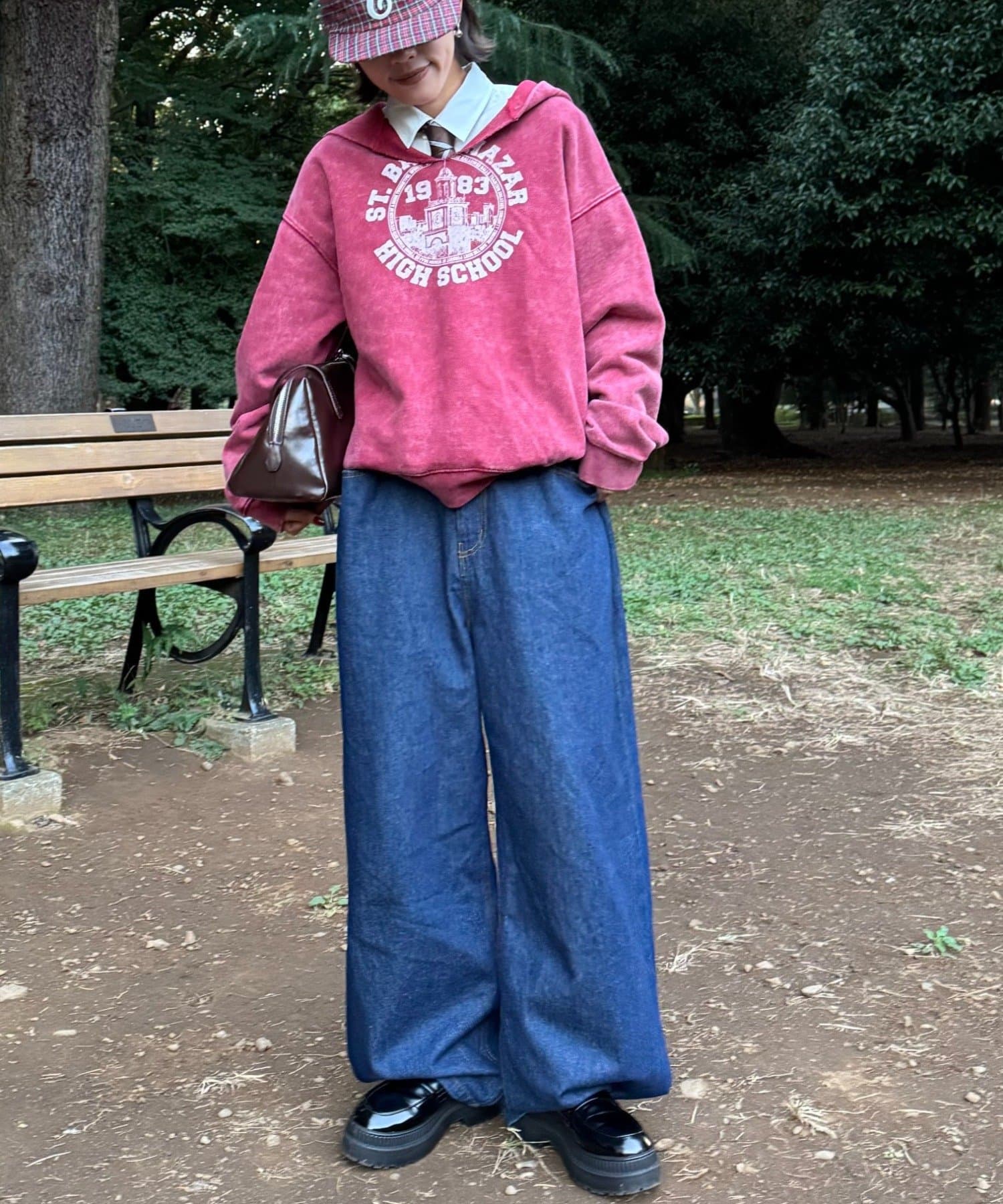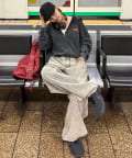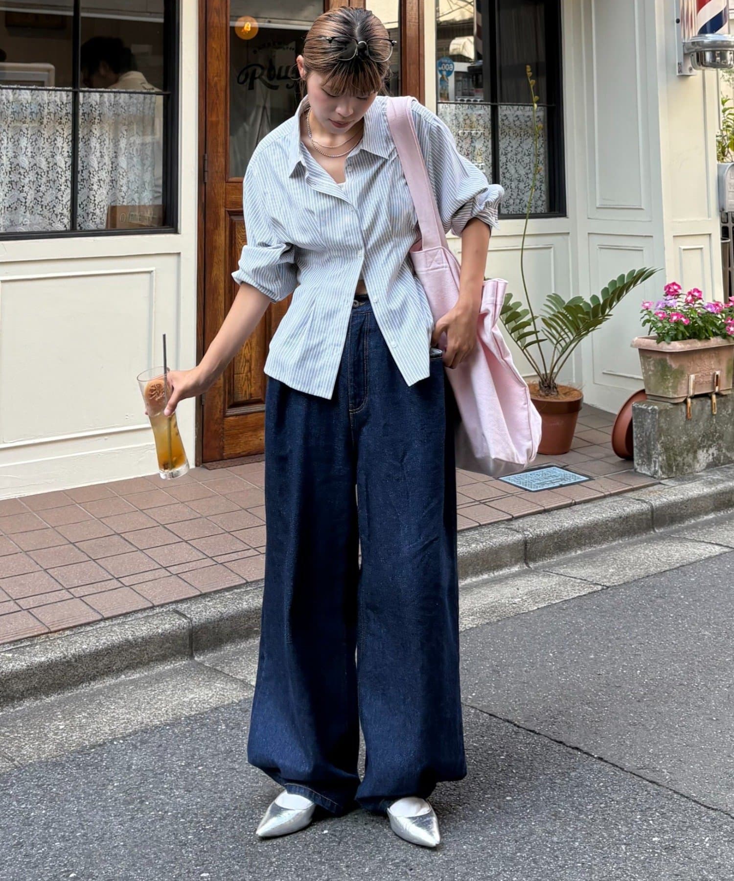コンパクトなトップスと合わせて、バランスを楽しむスタイリングもおすすめです♩