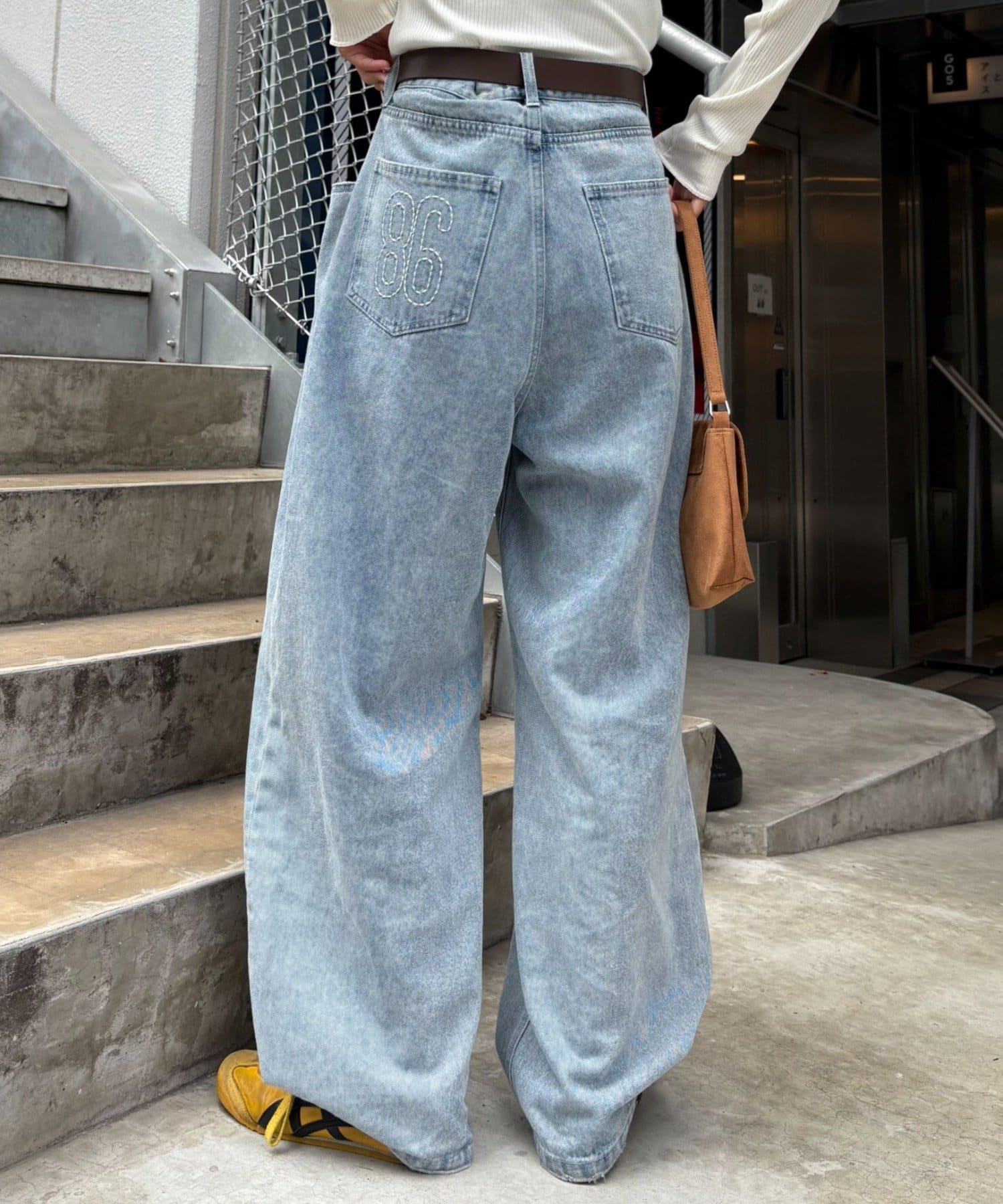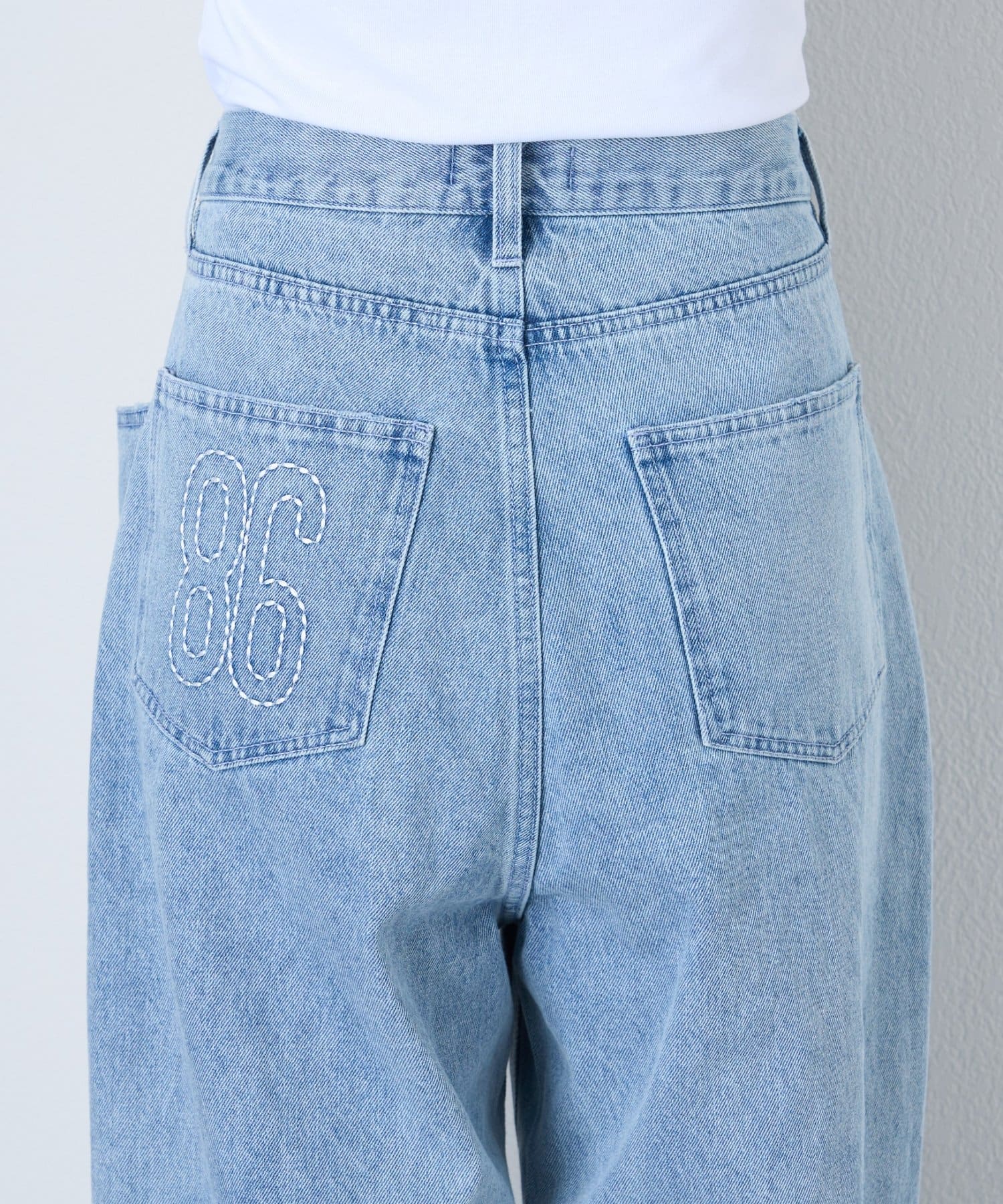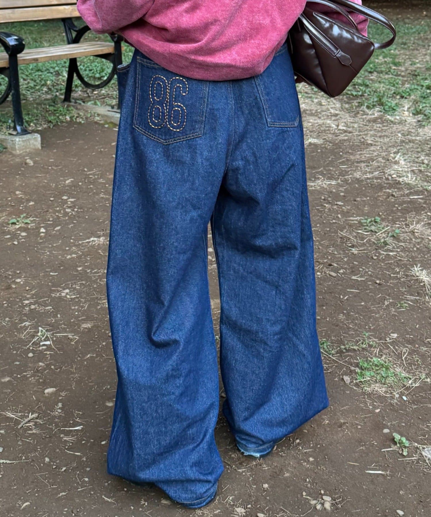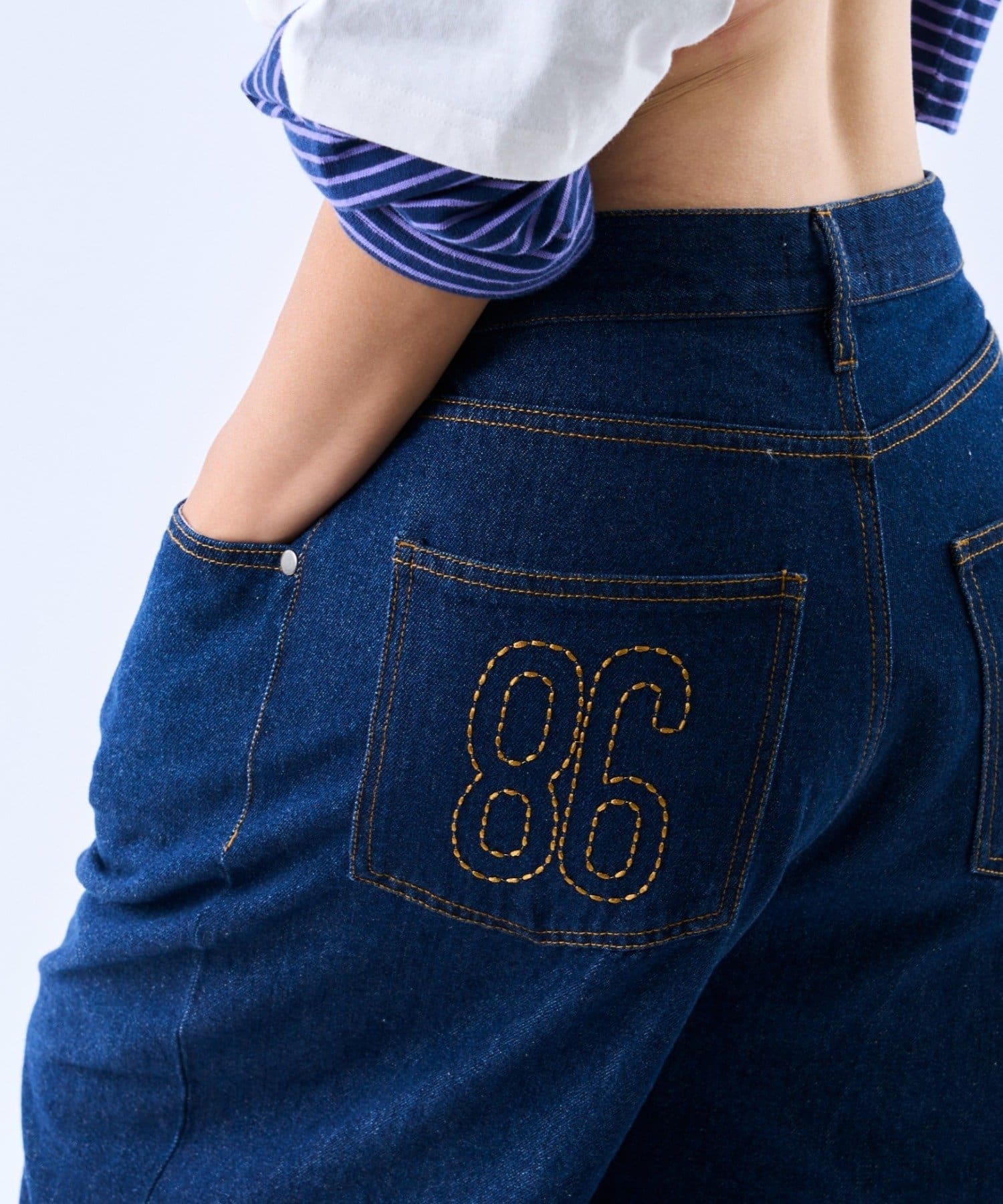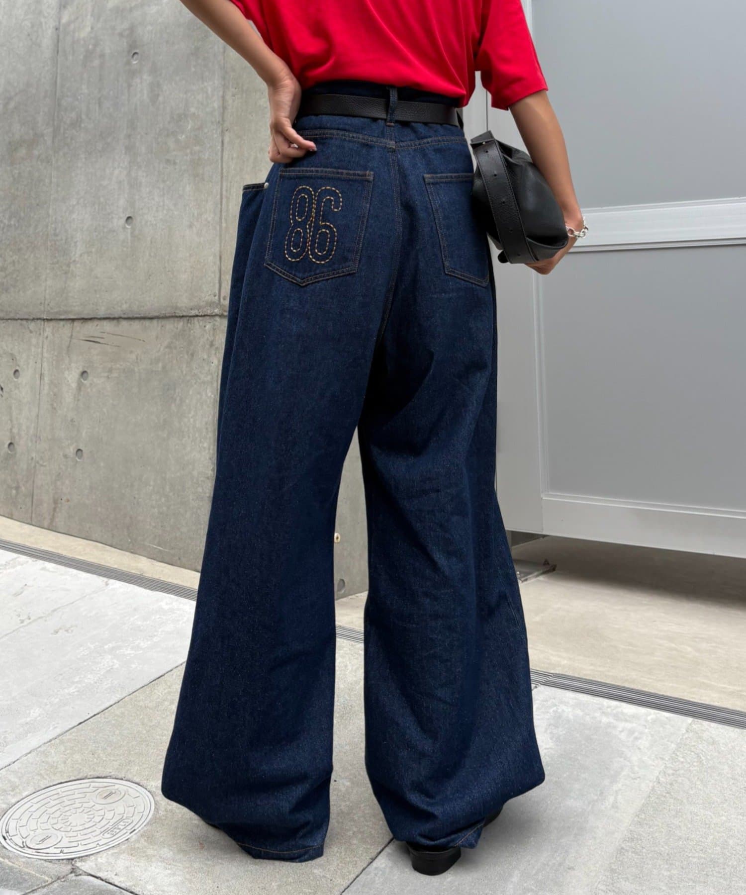 バックポケットには、大胆なナンバリング刺繍を施し、後ろ姿までこだわったデザインに。