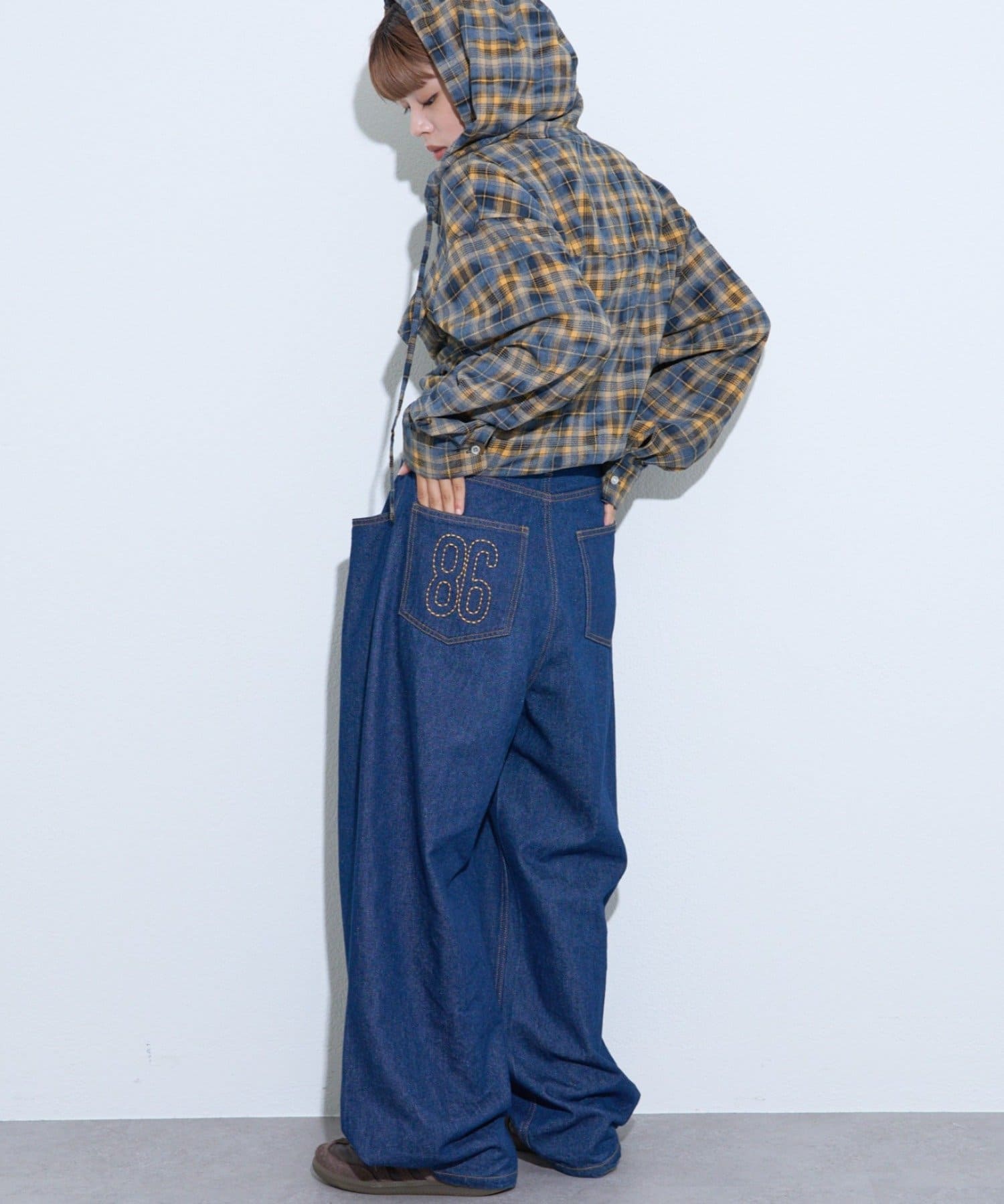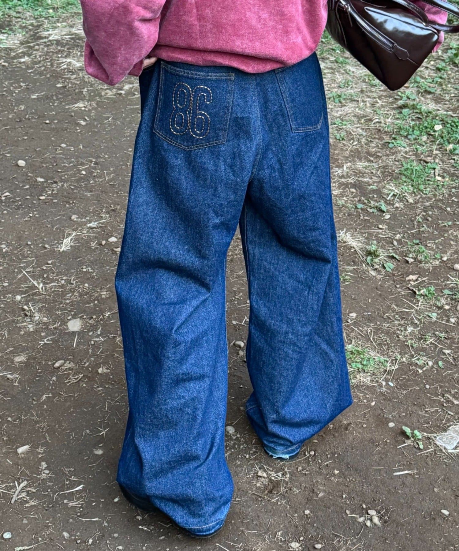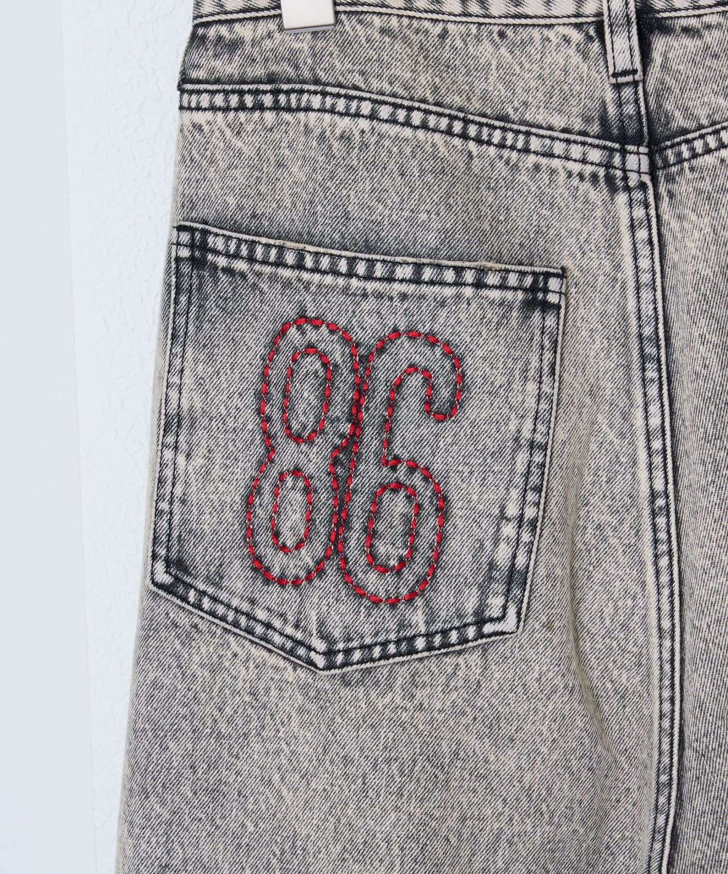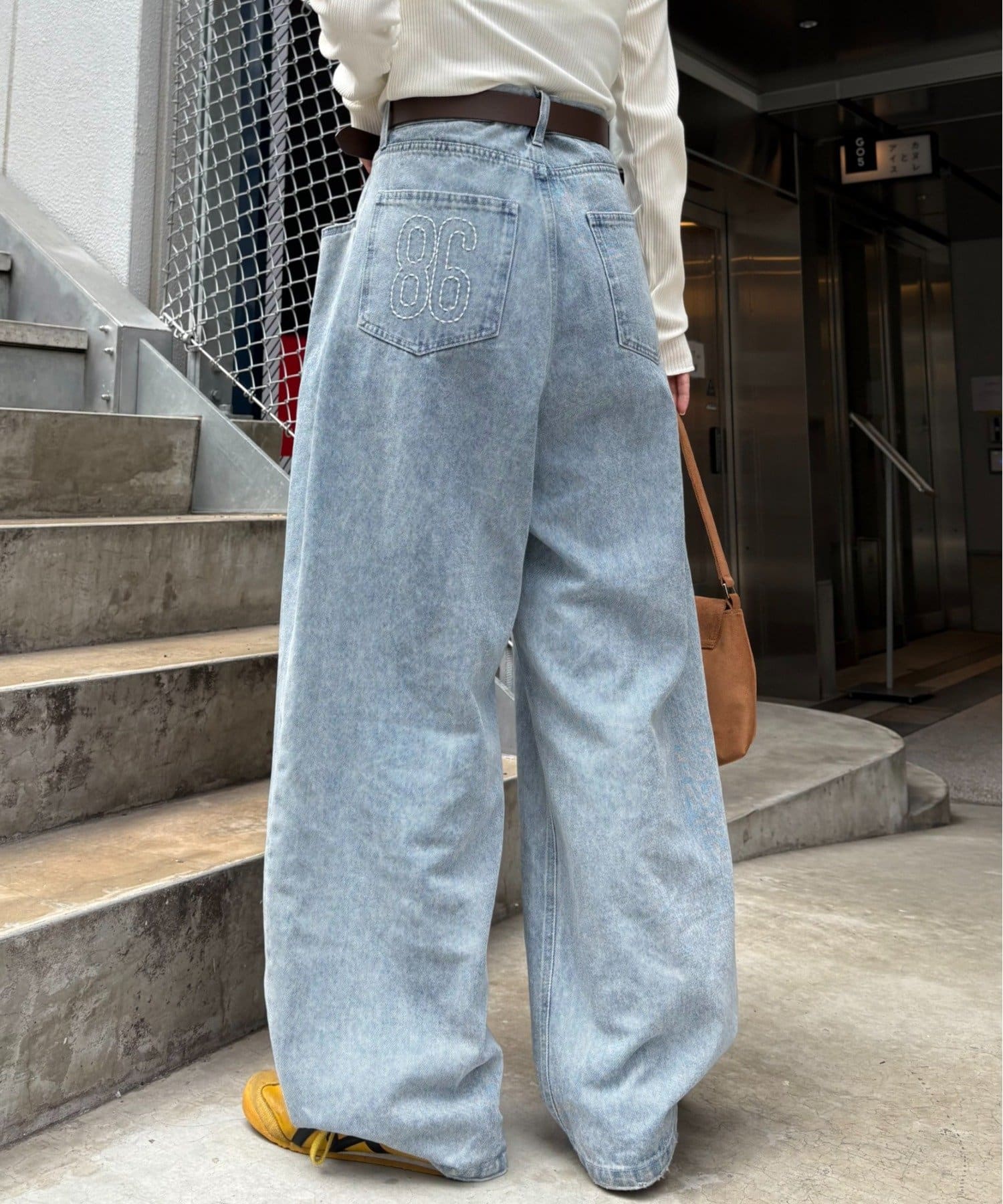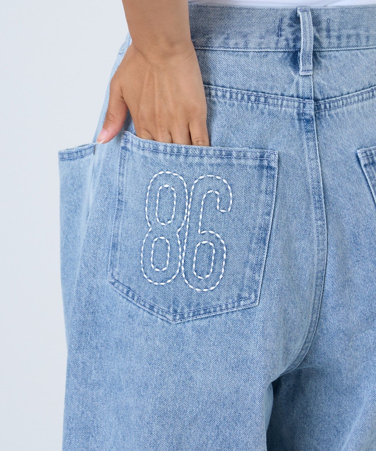 バックポケットには、大胆なナンバリング刺繍を施し、後ろ姿までこだわったデザインに。