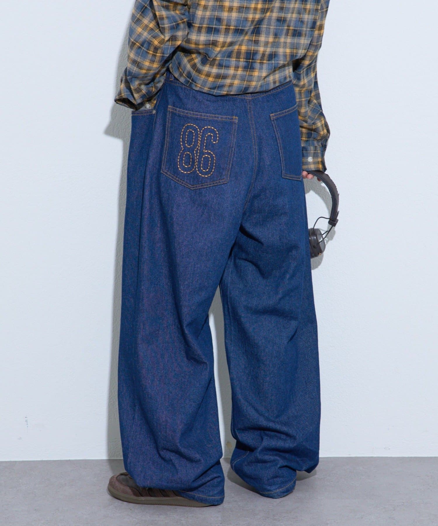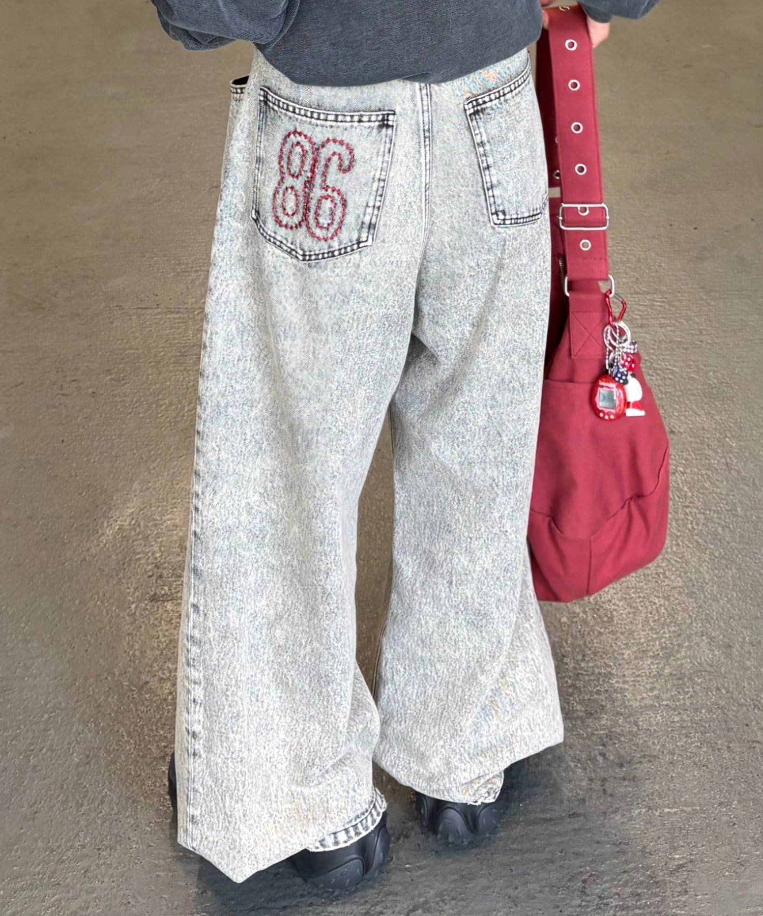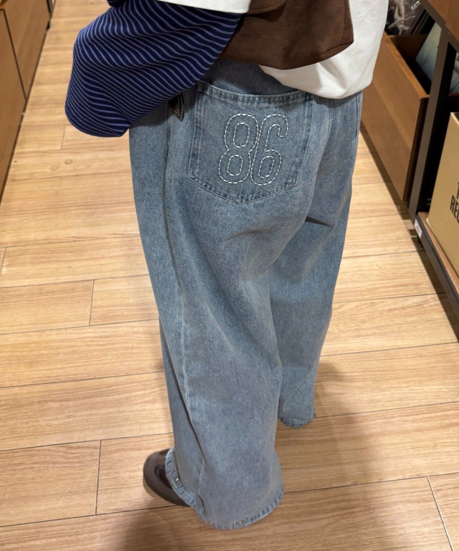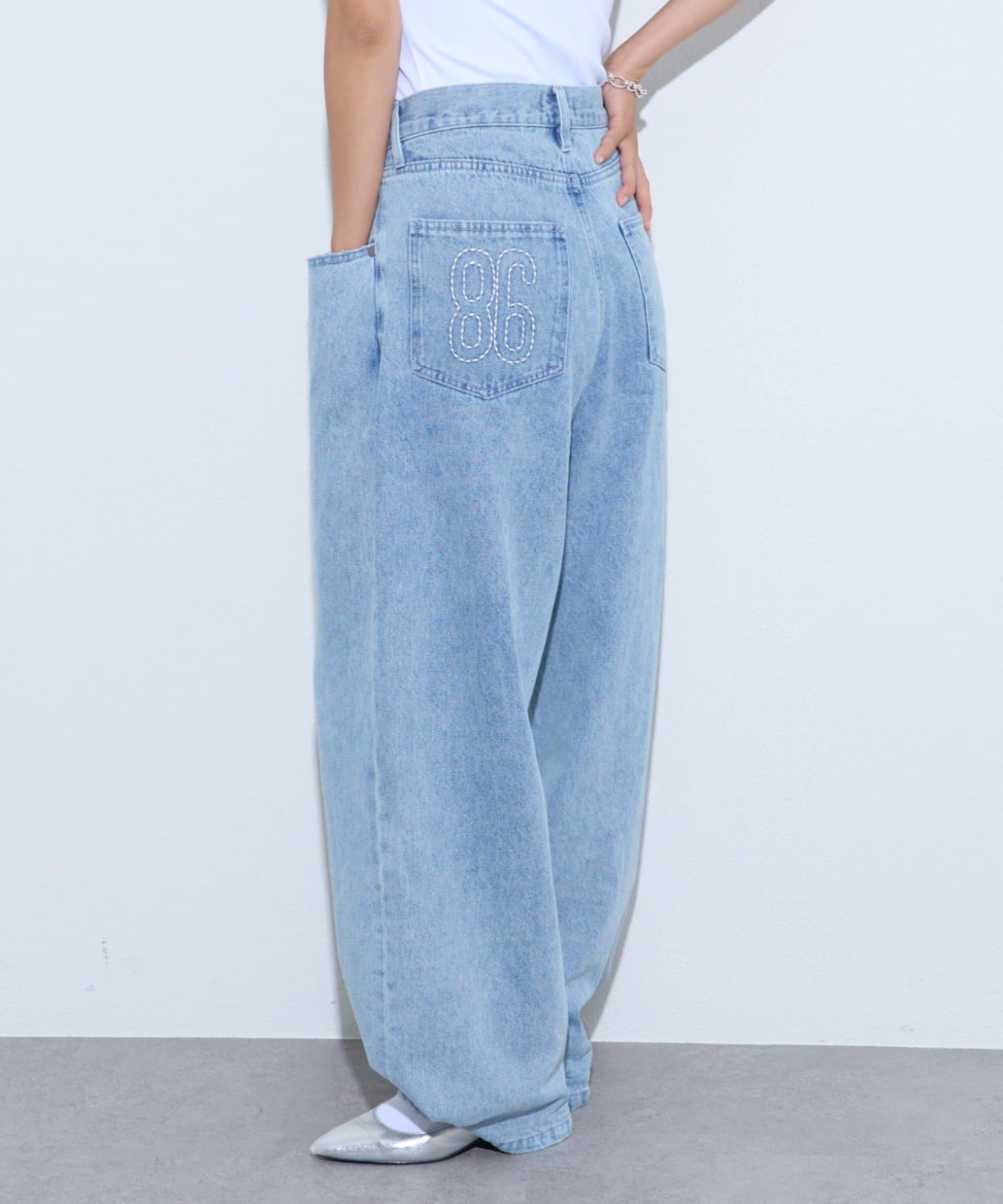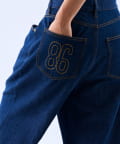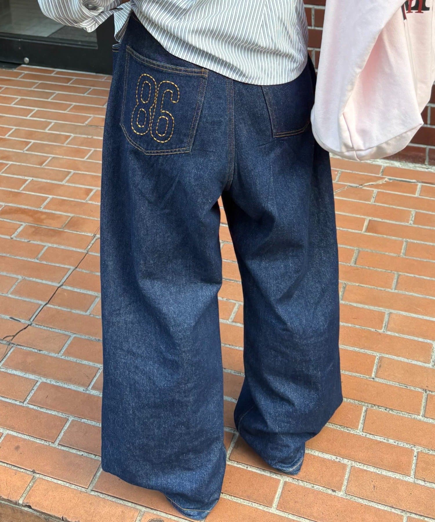 バックポケットには、大胆なナンバリング刺繍を施し、後ろ姿までこだわったデザインに。