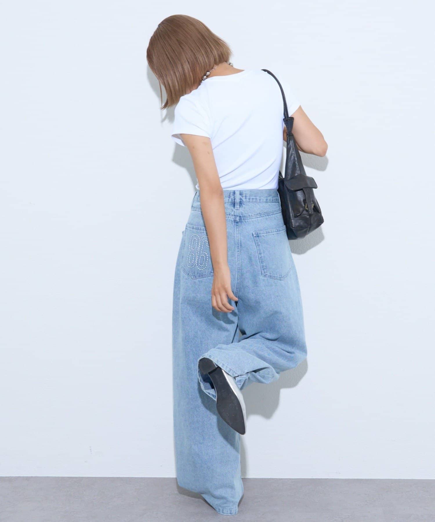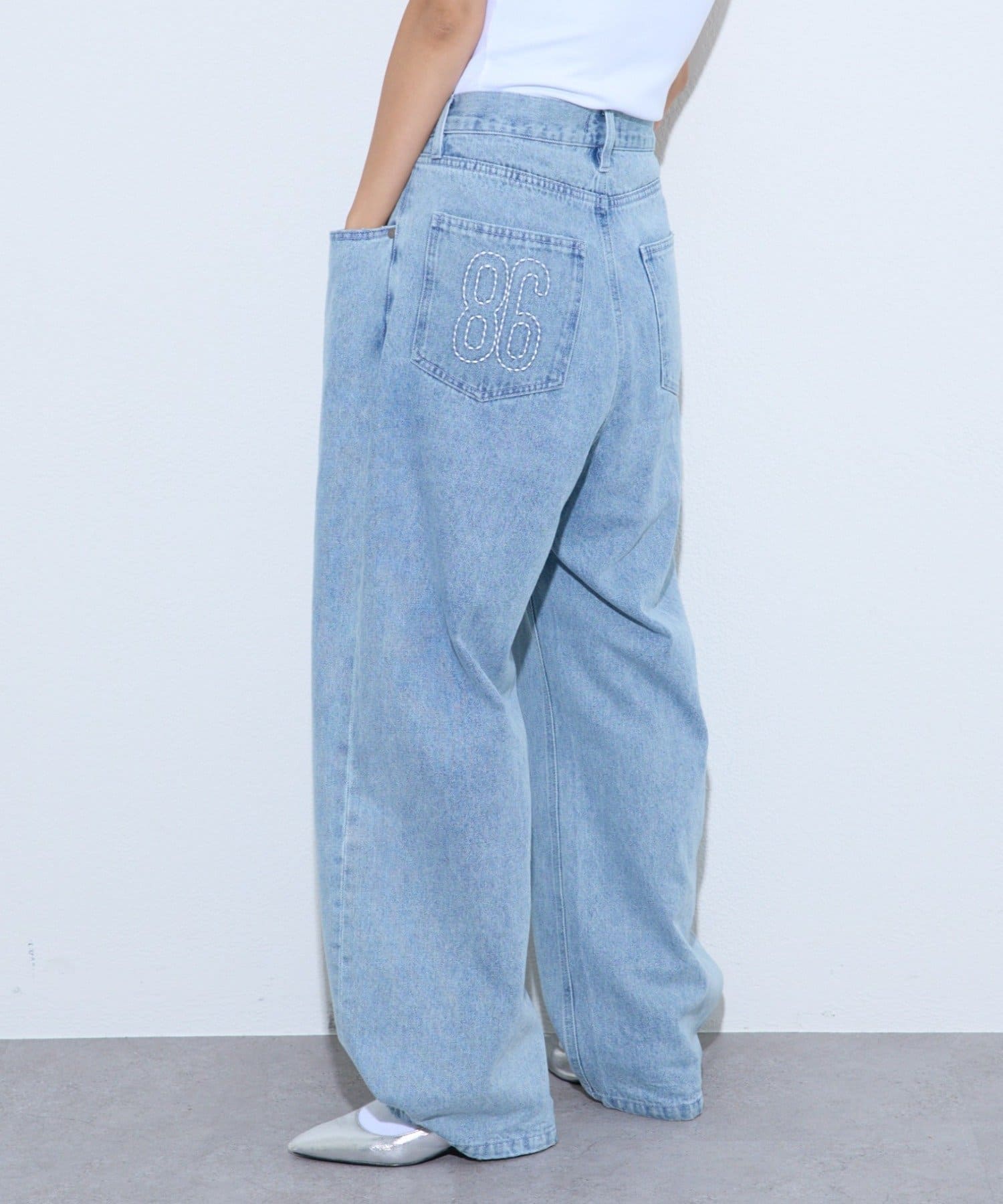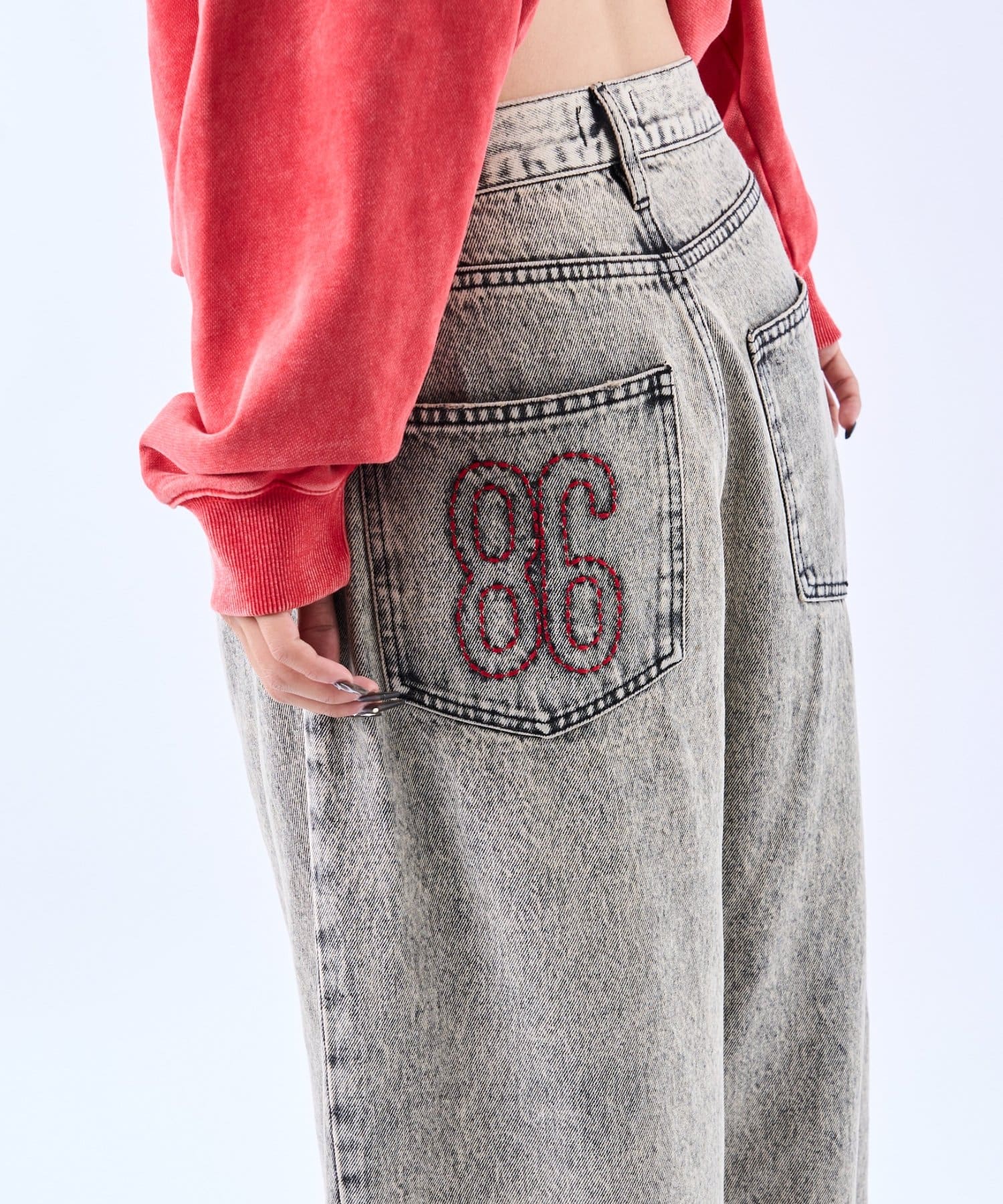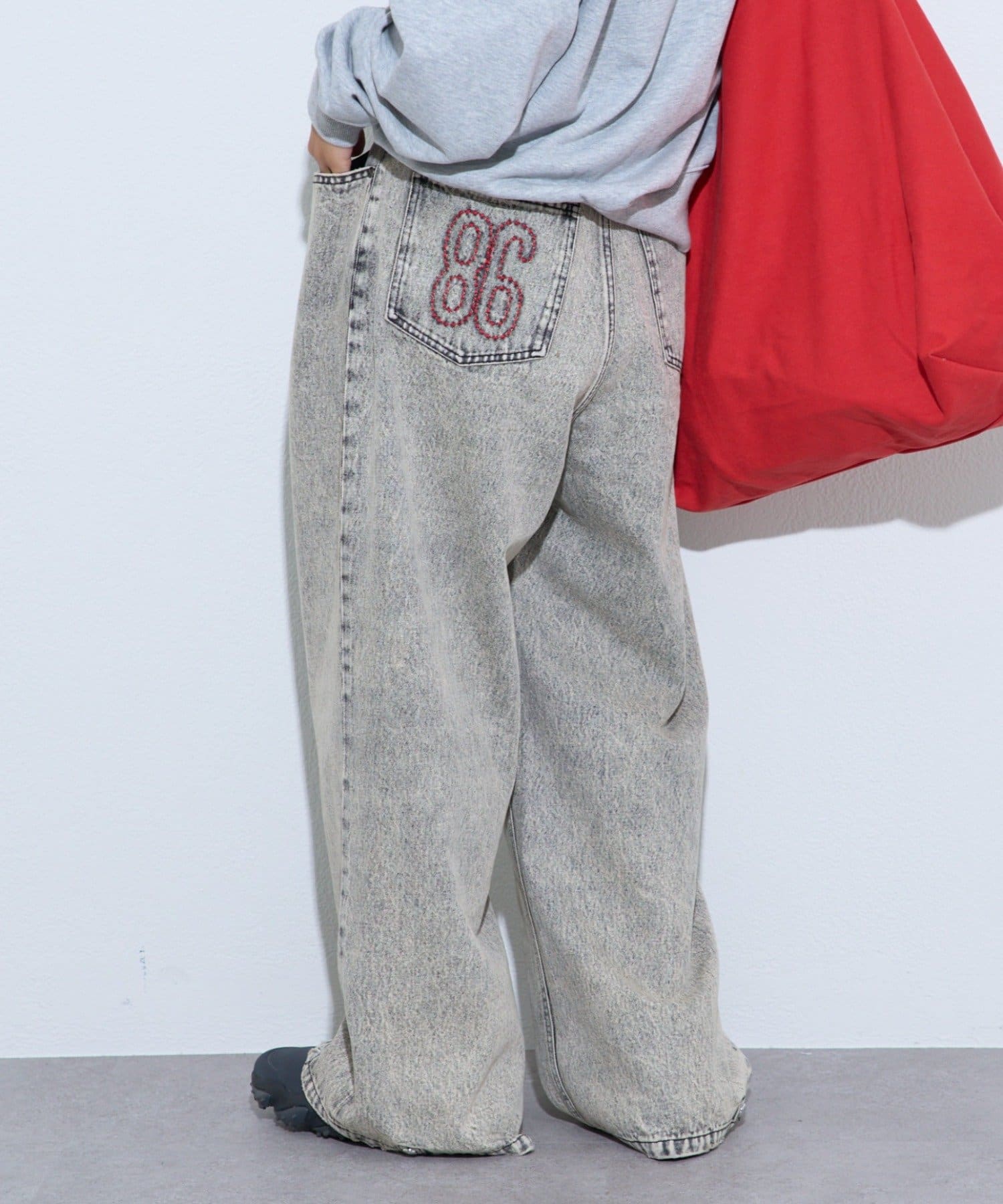 バックポケットには、大胆なナンバリング刺繍を施し、後ろ姿までこだわったデザインに。