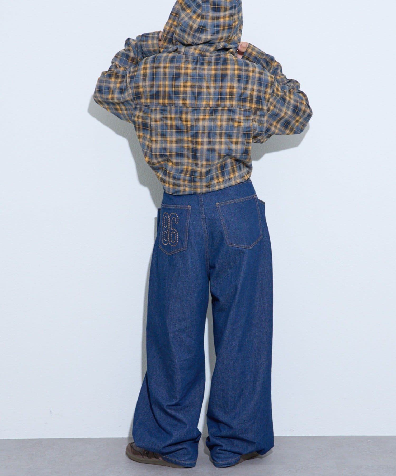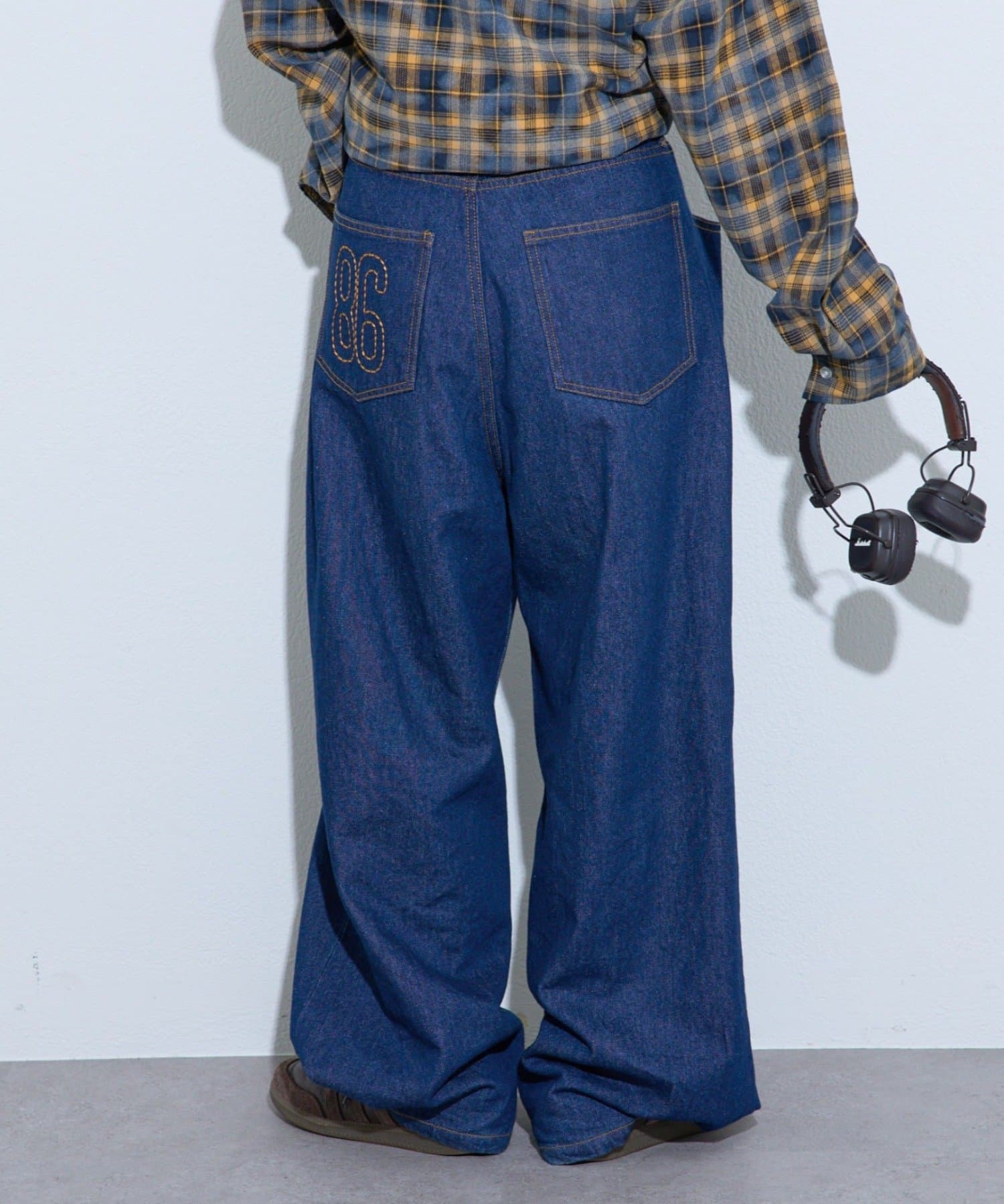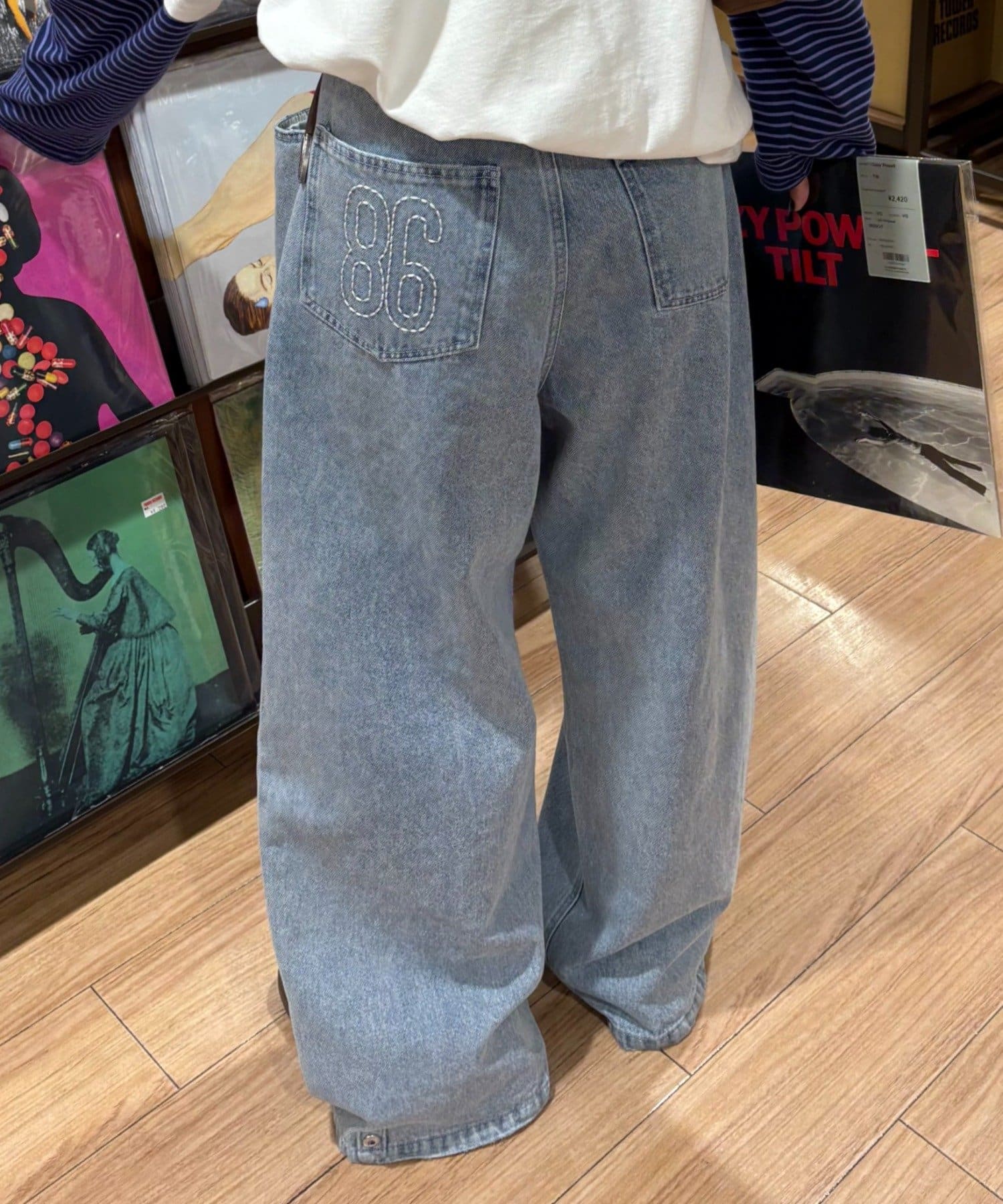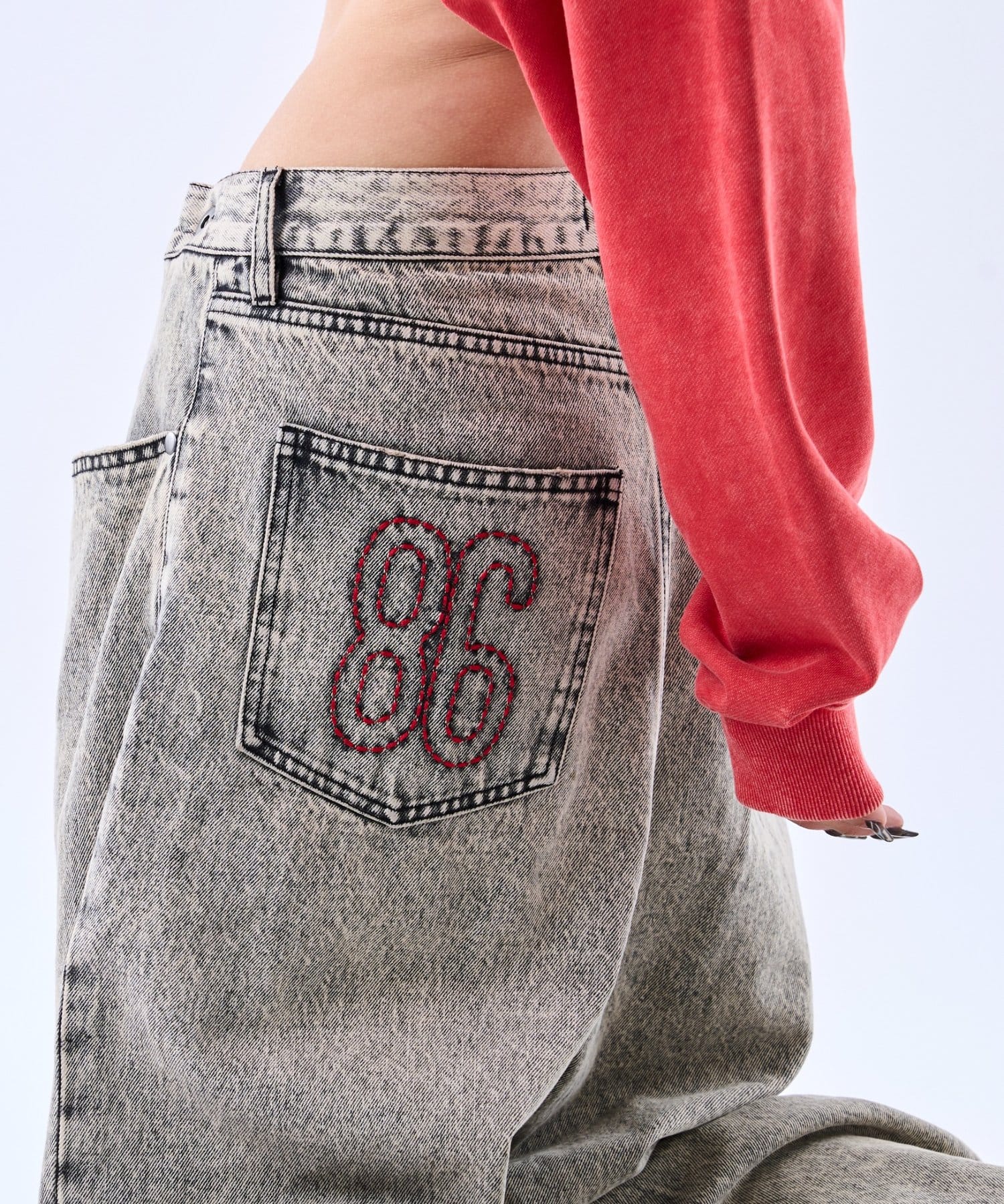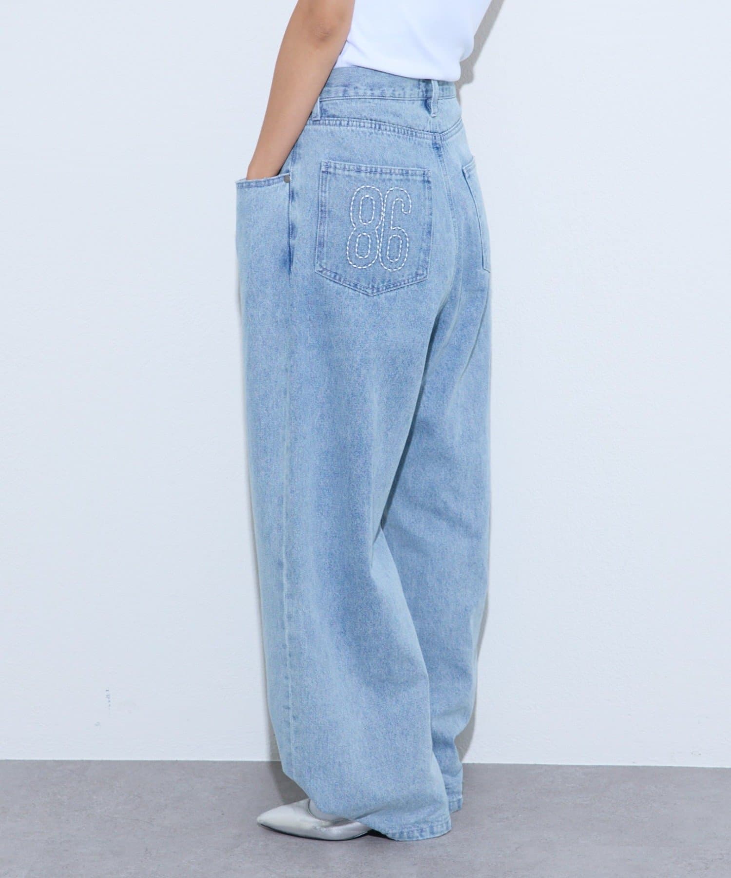 バックポケットには、大胆なナンバリング刺繍を施し、後ろ姿までこだわったデザインに。