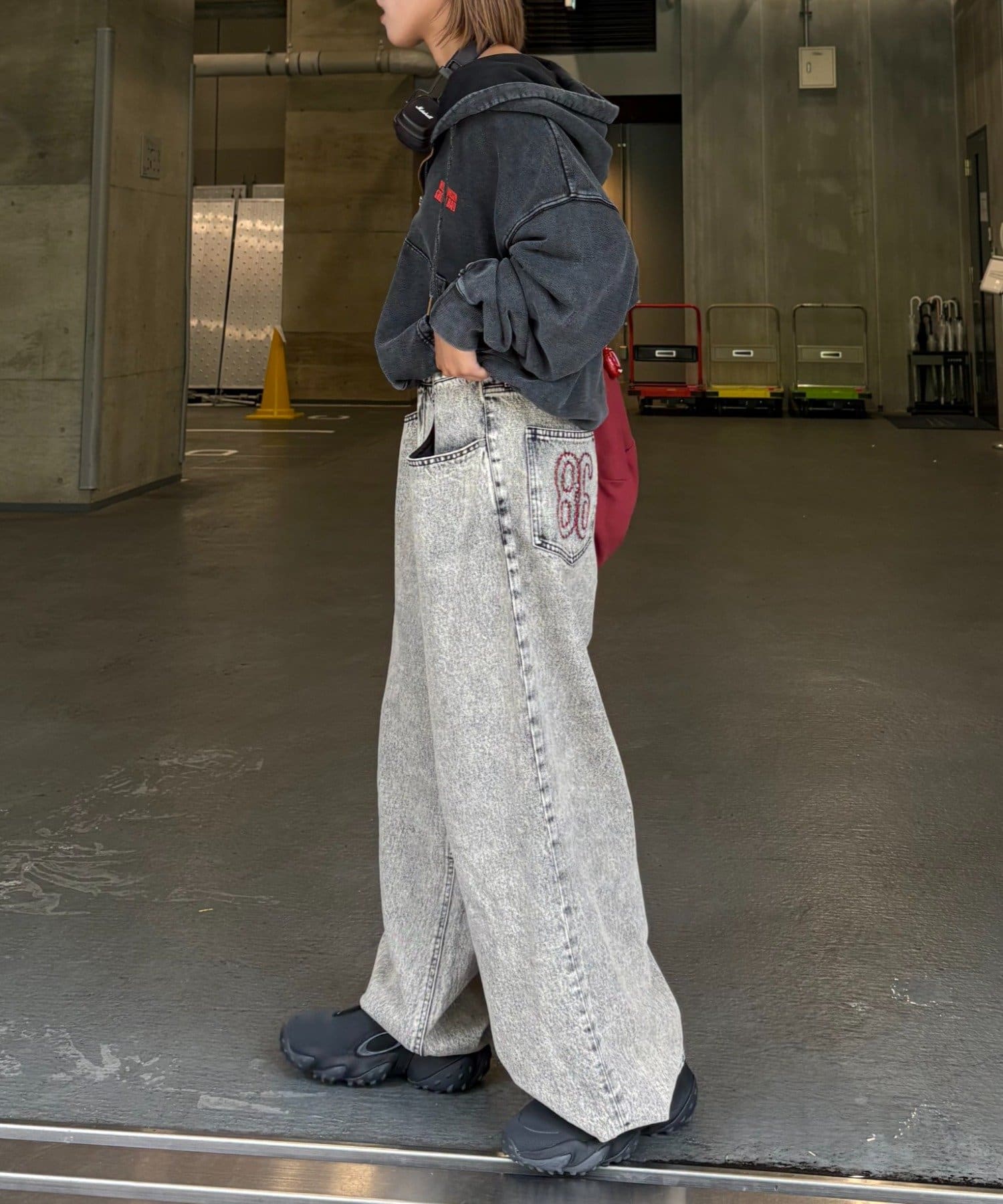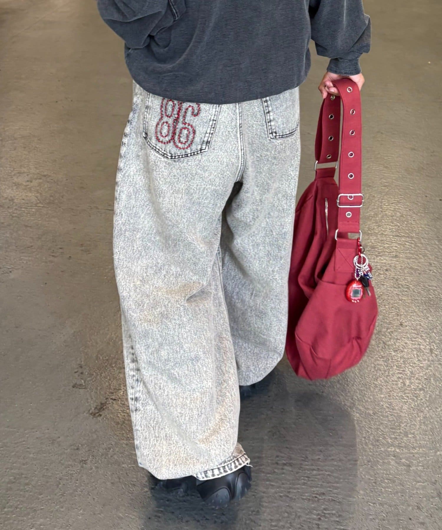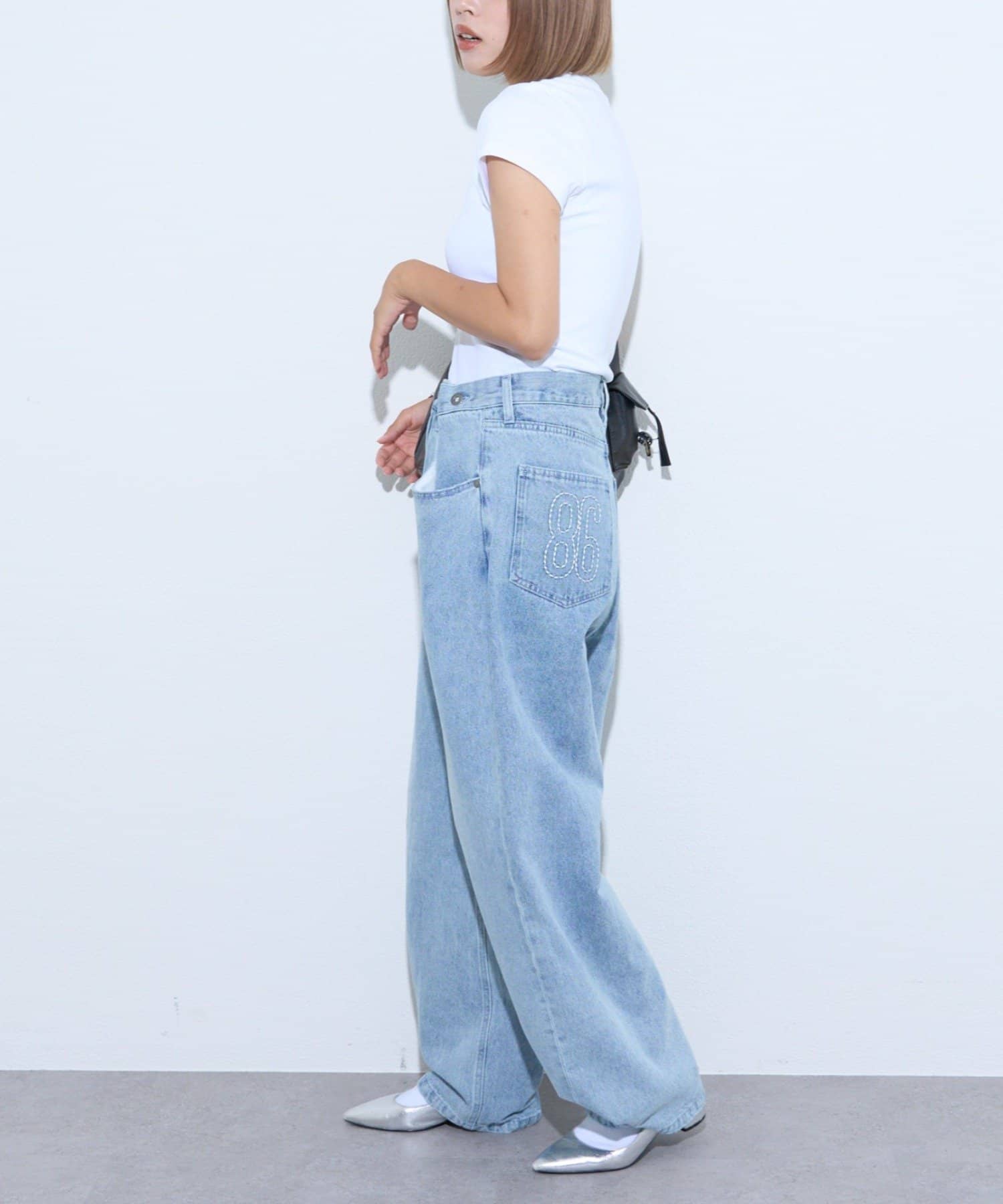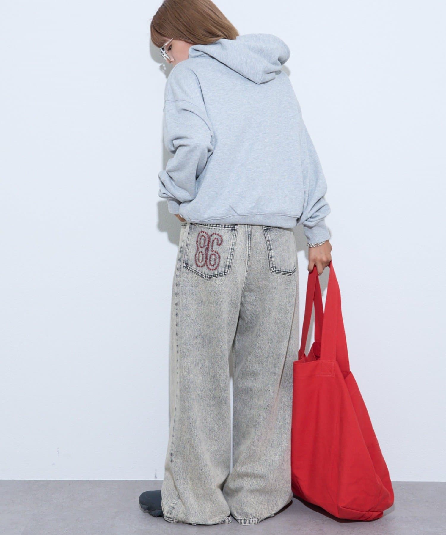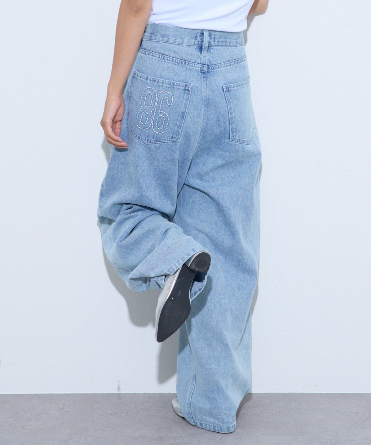 バックポケットには、大胆なナンバリング刺繍を施し、後ろ姿までこだわったデザインに。