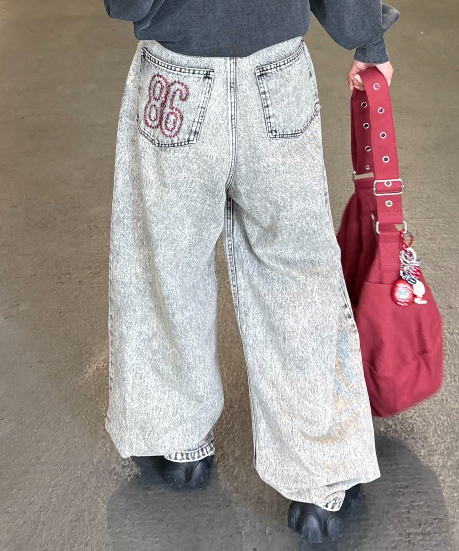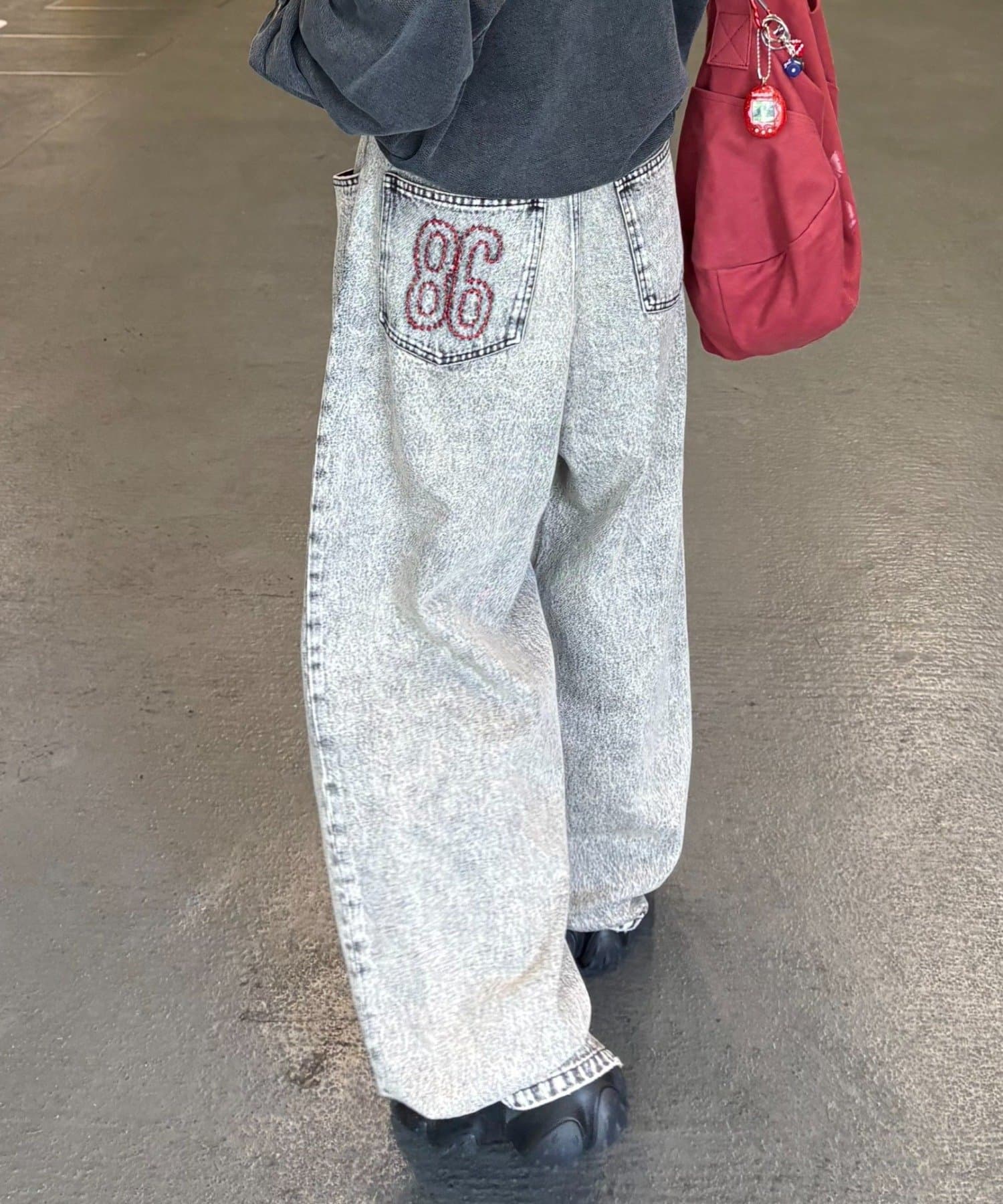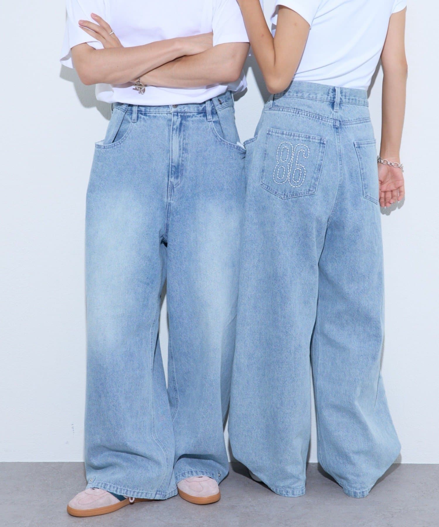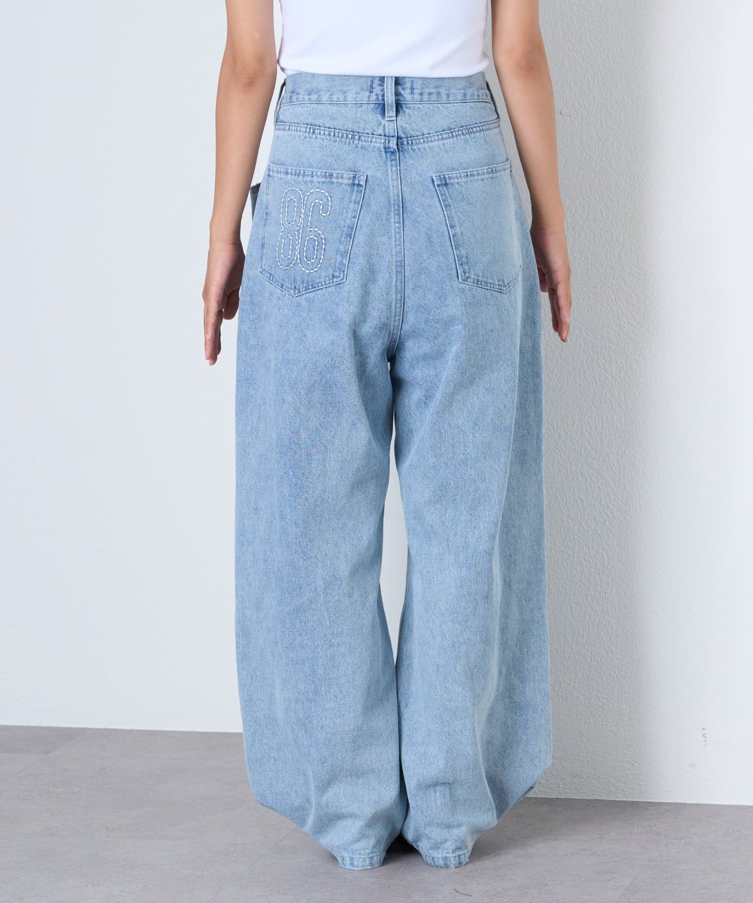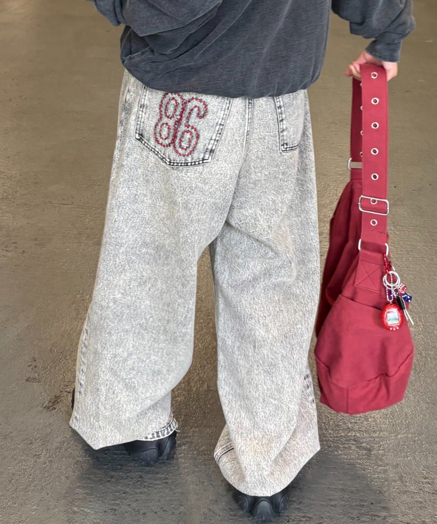 バックポケットには、大胆なナンバリング刺繍を施し、後ろ姿までこだわったデザインに。