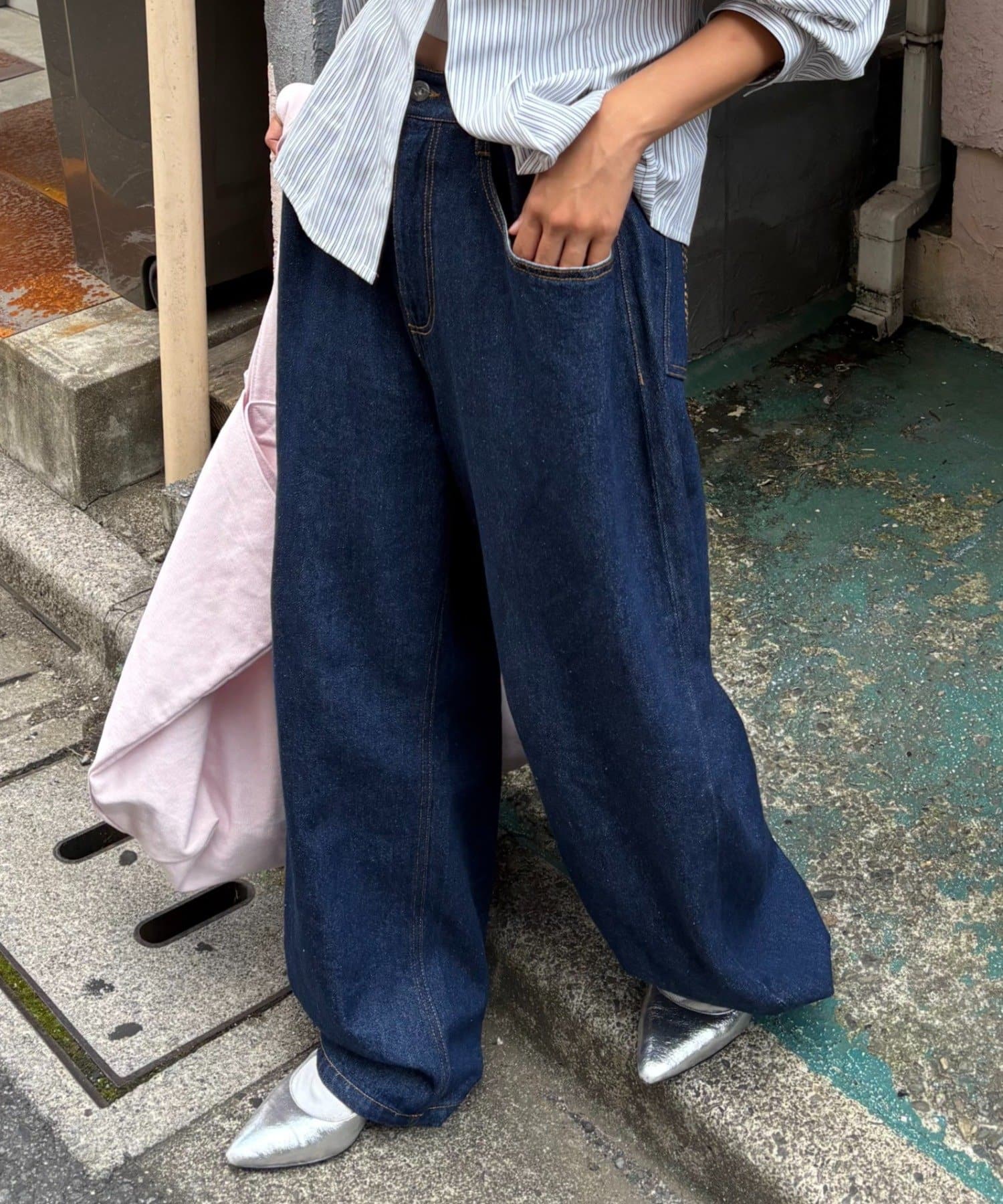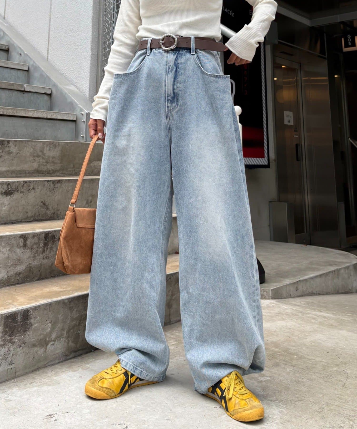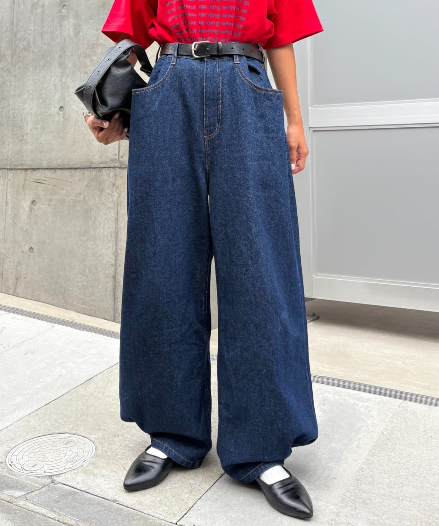 シンプルなトップスに合わせるだけでもコーデがきまる、主役級のデニムです!