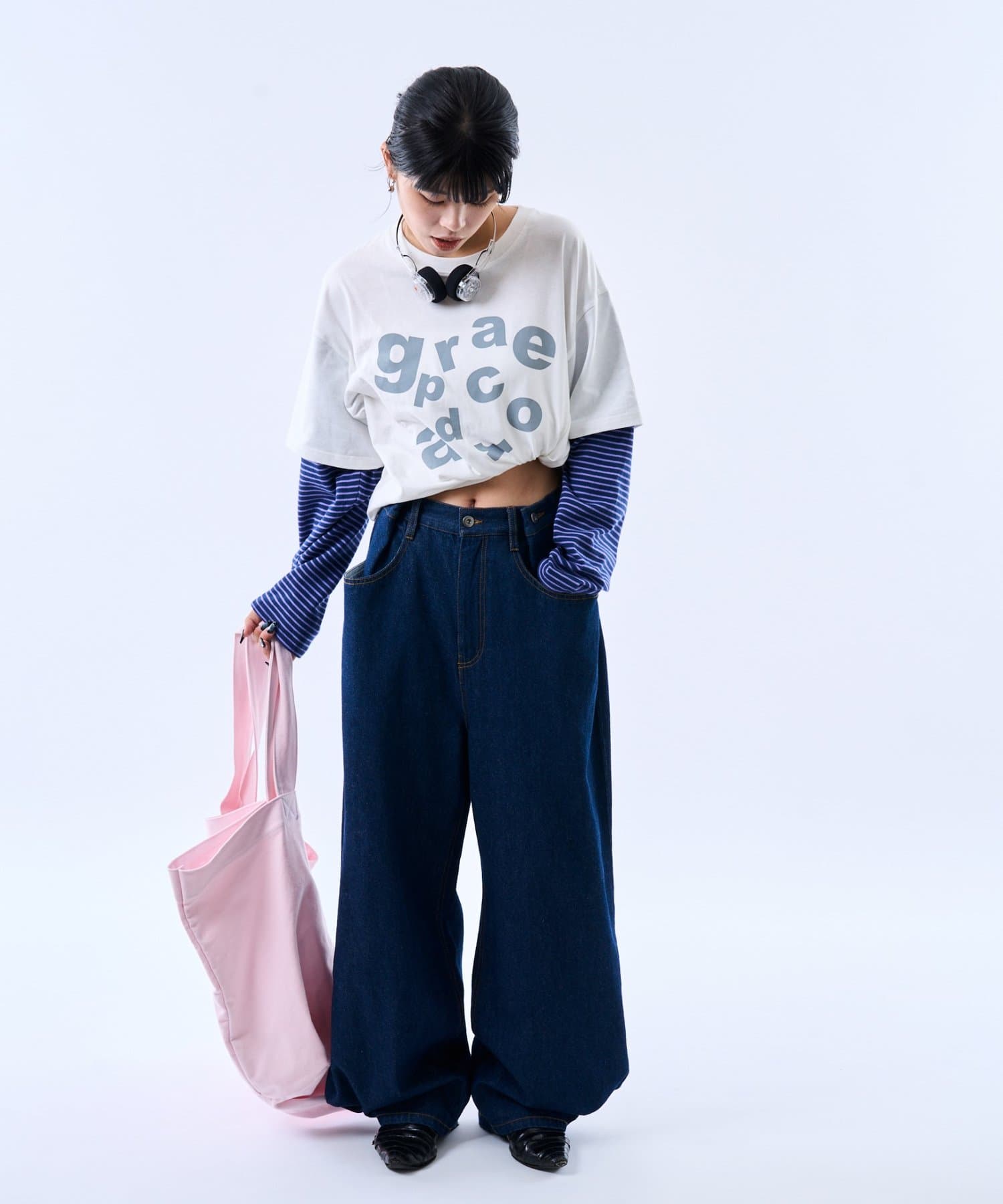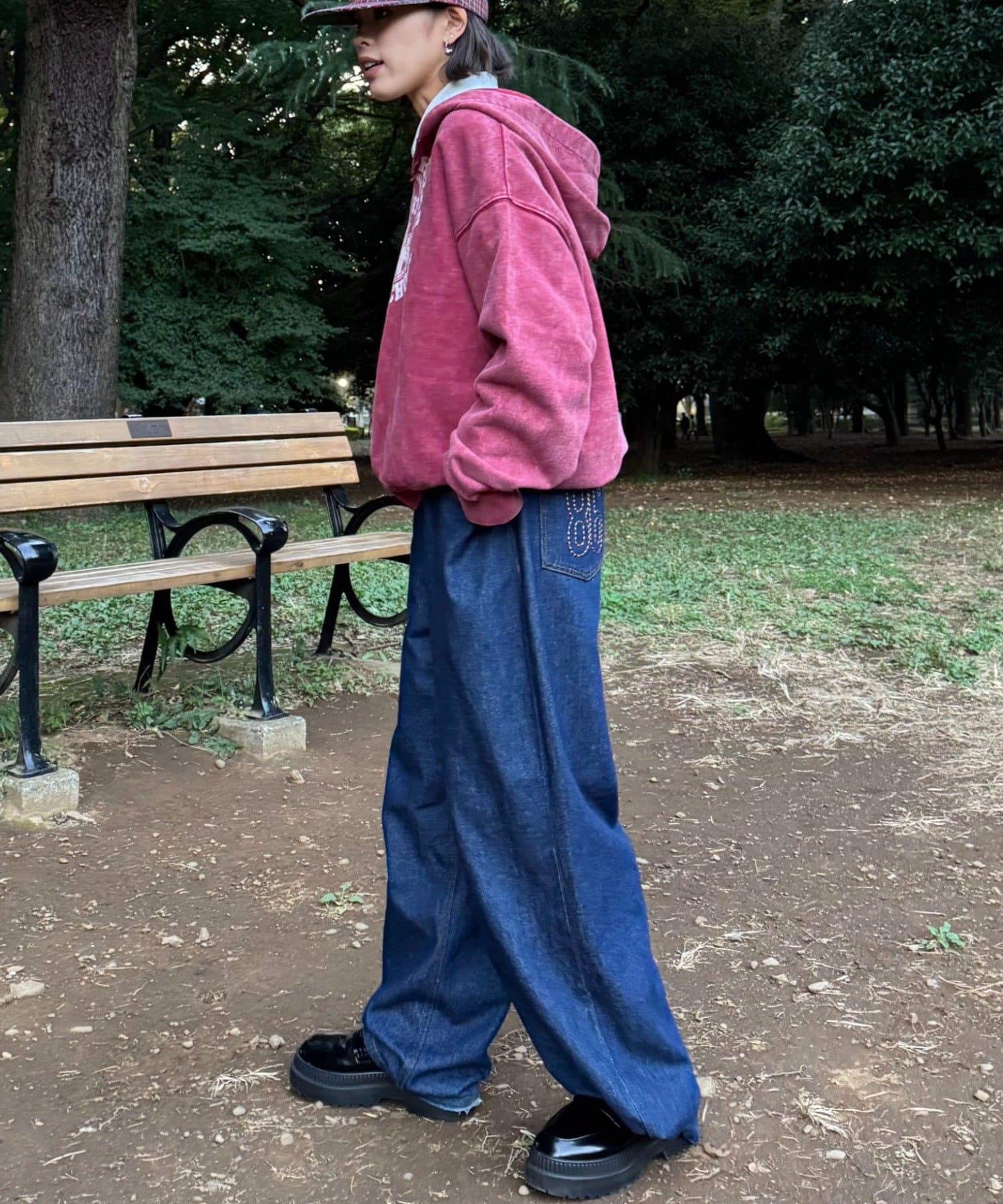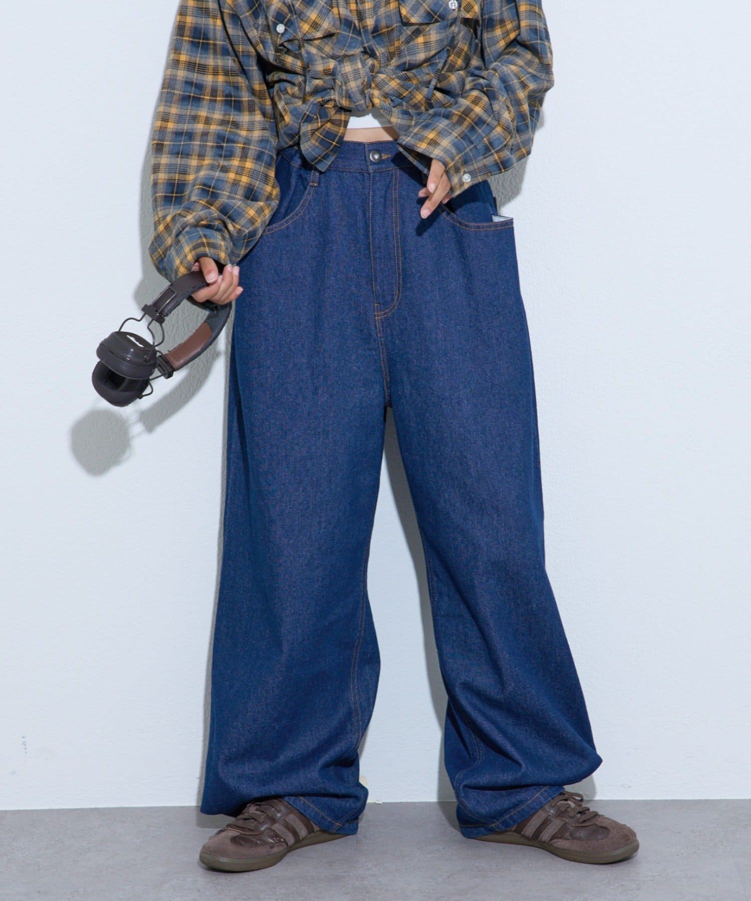 シンプルなトップスに合わせるだけでもコーデがきまる、主役級のデニムです!