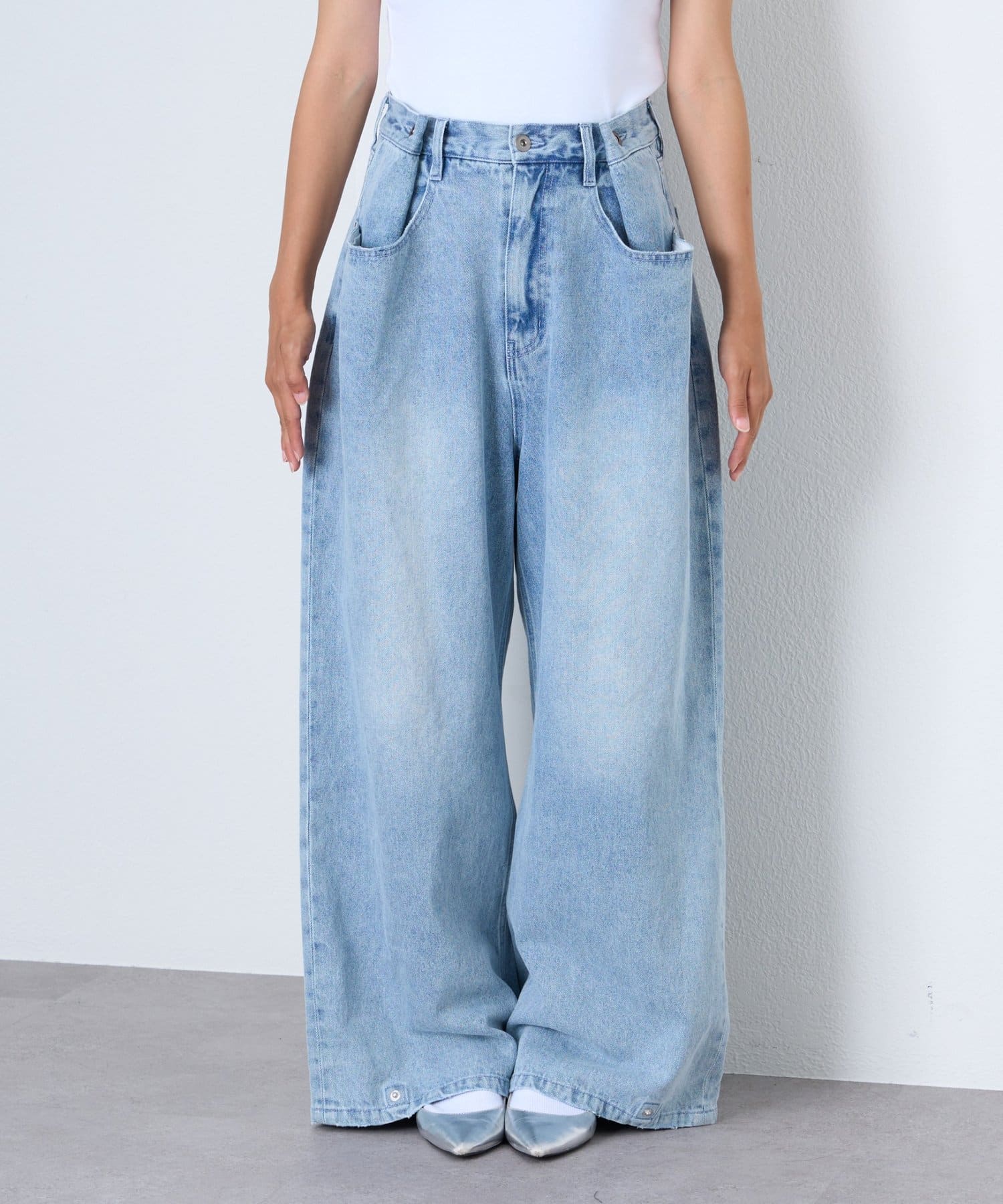 裾にボタンが付いた2WAY仕様で、ワイドにもカーブシルエットにもアレンジ可能な1本♩