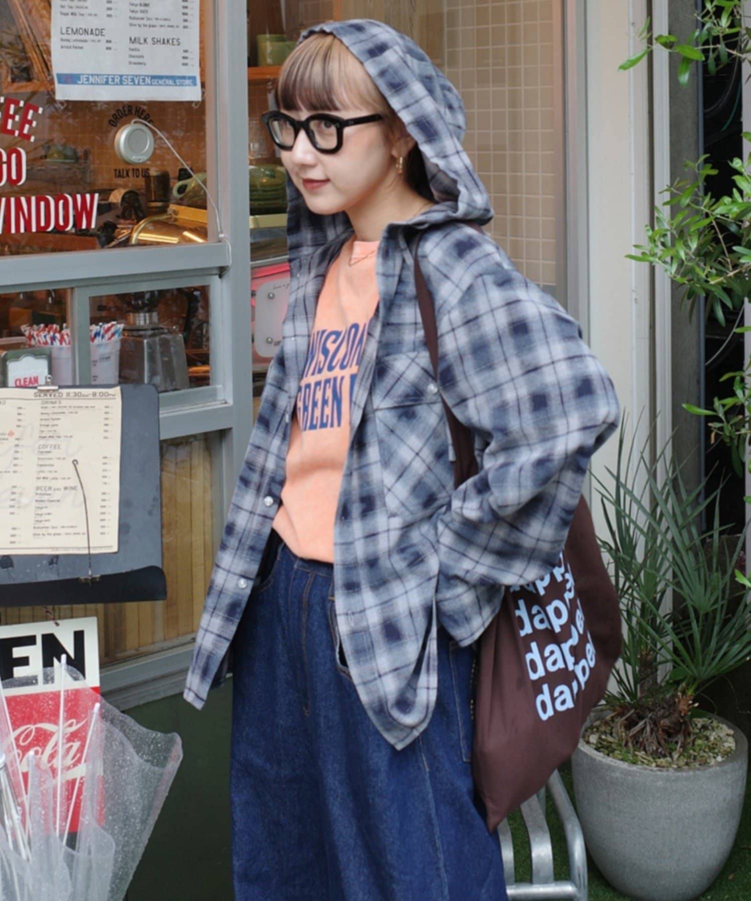 トレンドのフード付きチャックシャツをこだわりのチェック柄で。