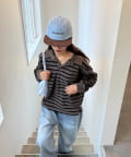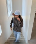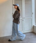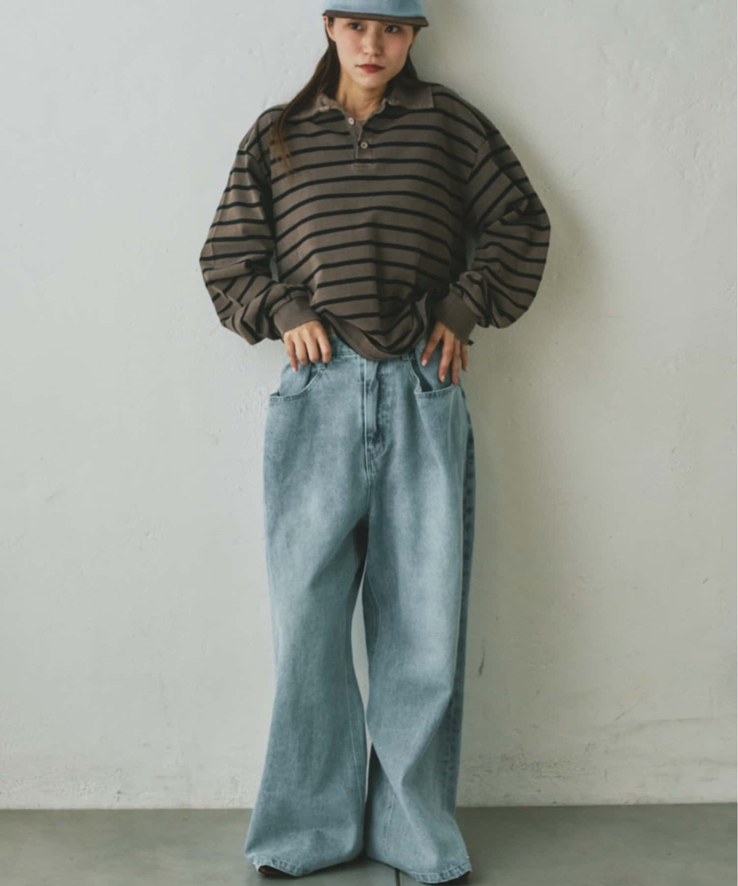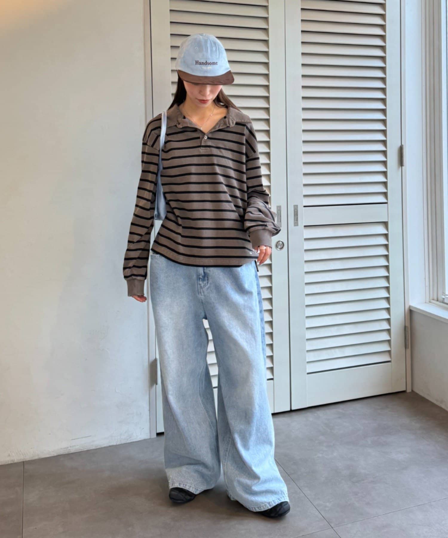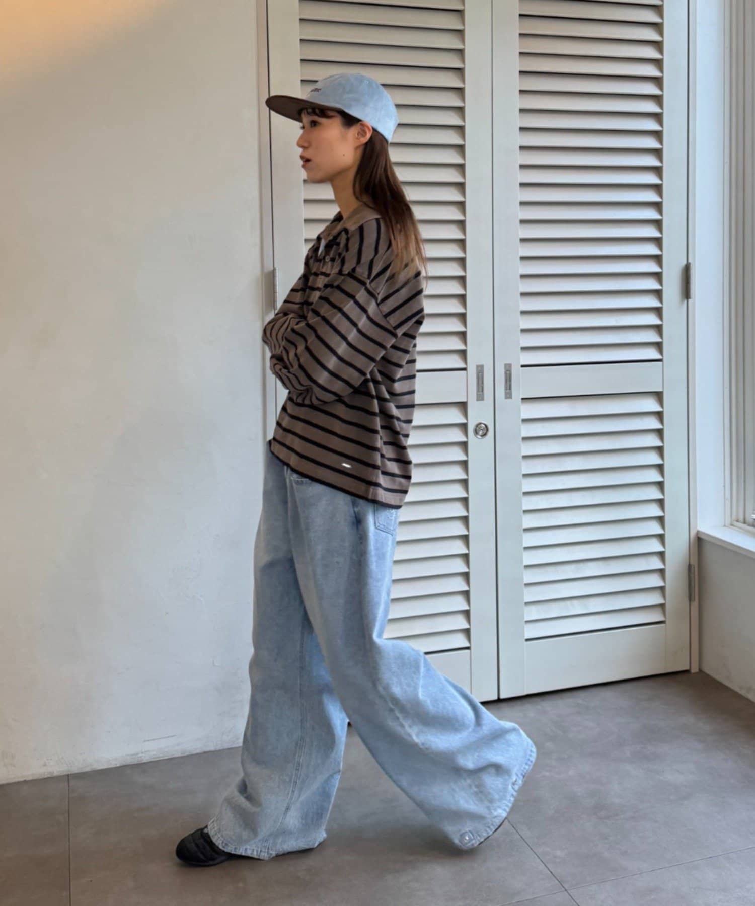 ずるずるなワイドデニムとのメンズライクスタイルか、同韓国企画シリーズの裾バルーントップス(TYZ4052306A0003)をレイヤードした