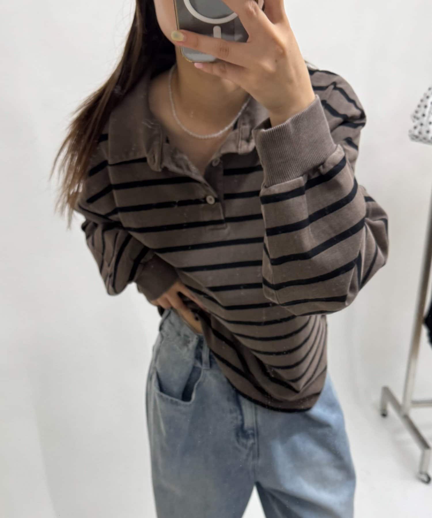 襟付きのデザインなので、カジュアルになりすぎず、きちんと感もプラスできます。