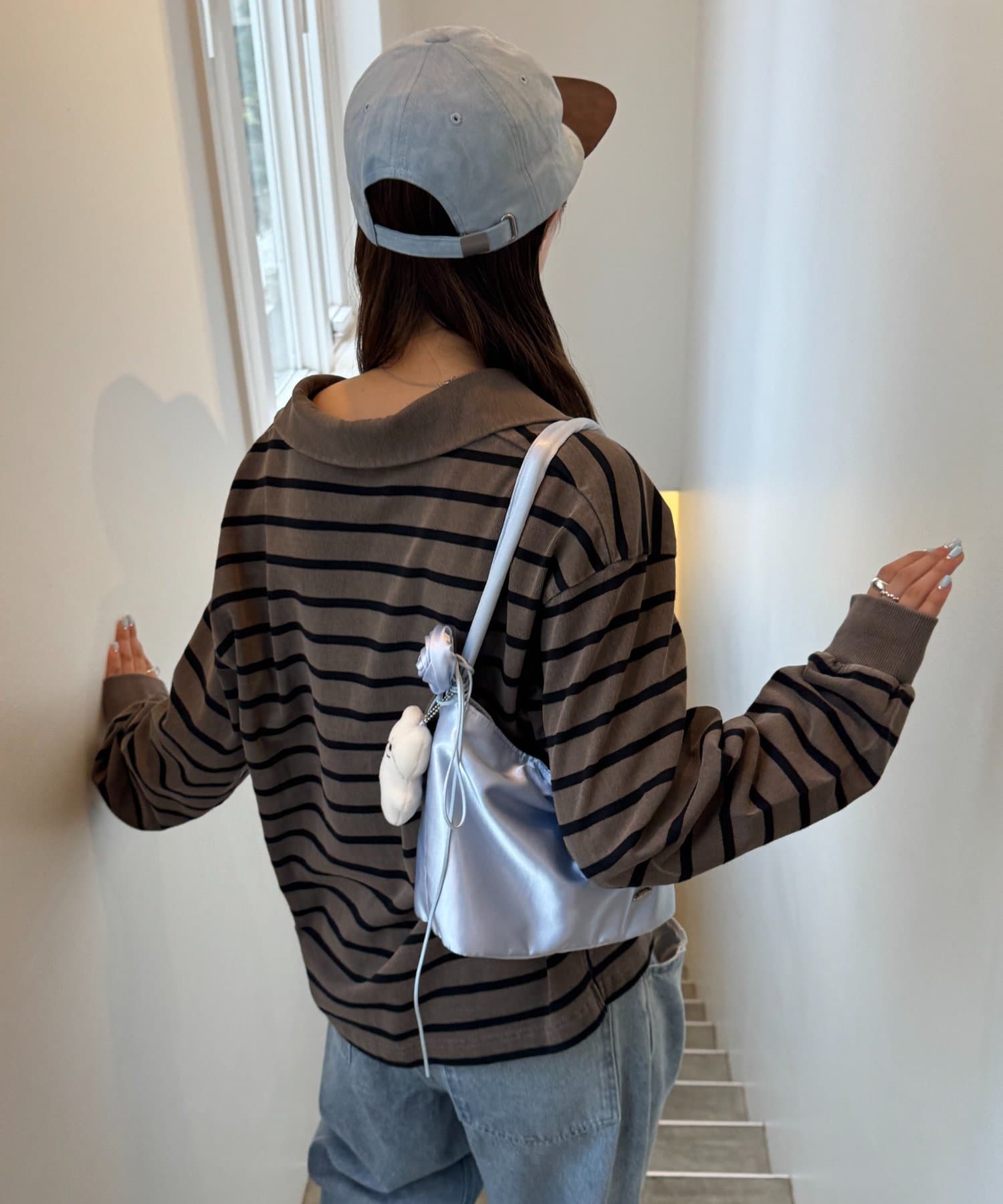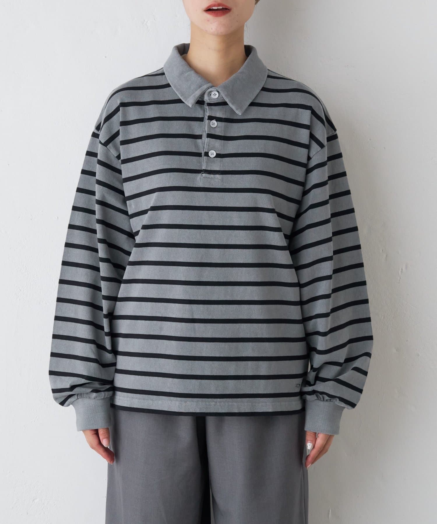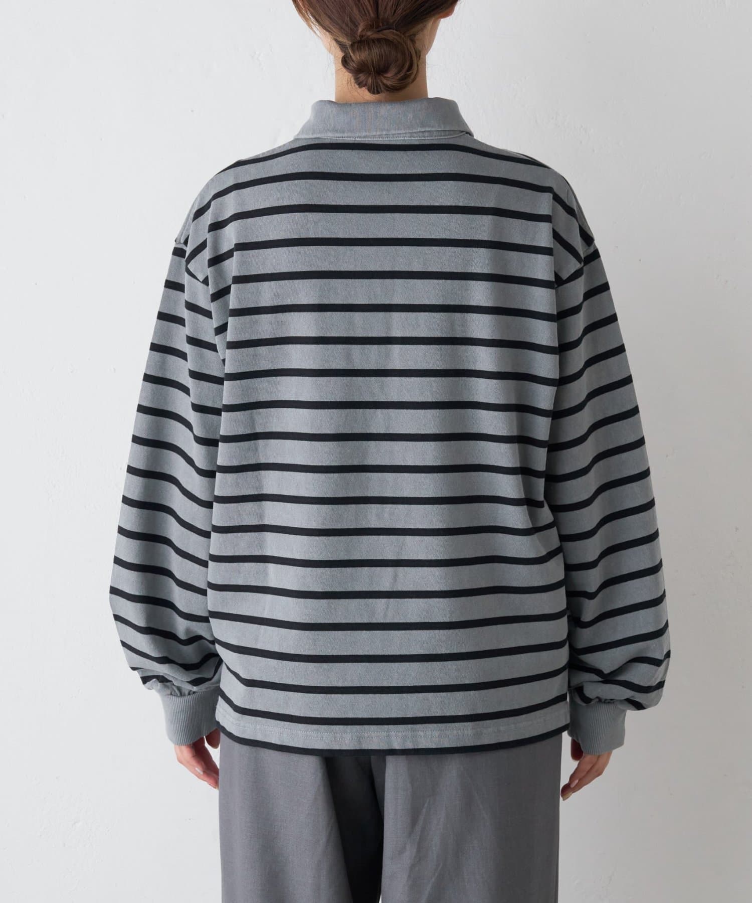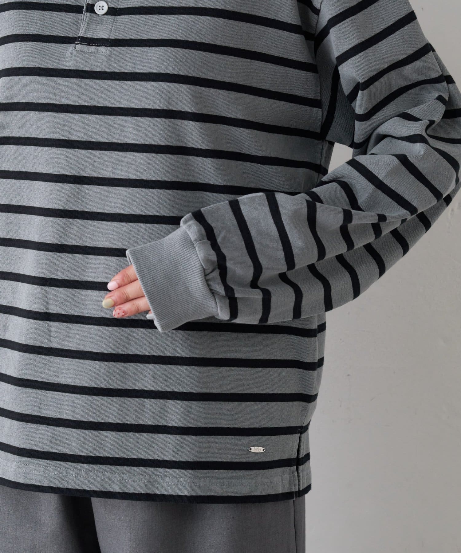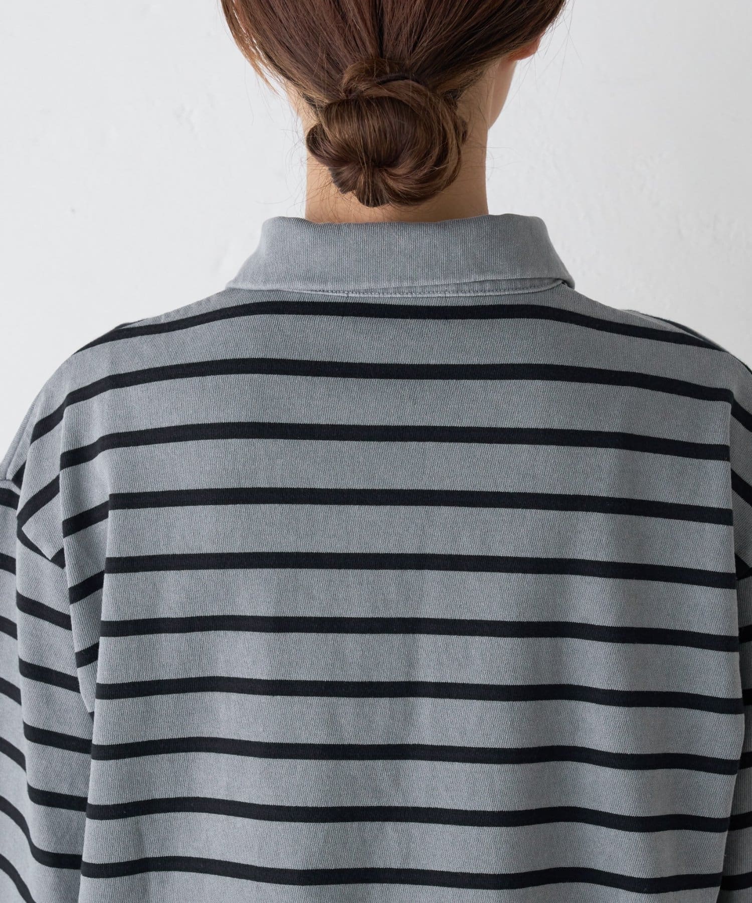 微配色のボーダー柄なので、カジュアルながらも落ち着いた印象を与え、様々なコーディネートに合わせやすいのが魅力。
