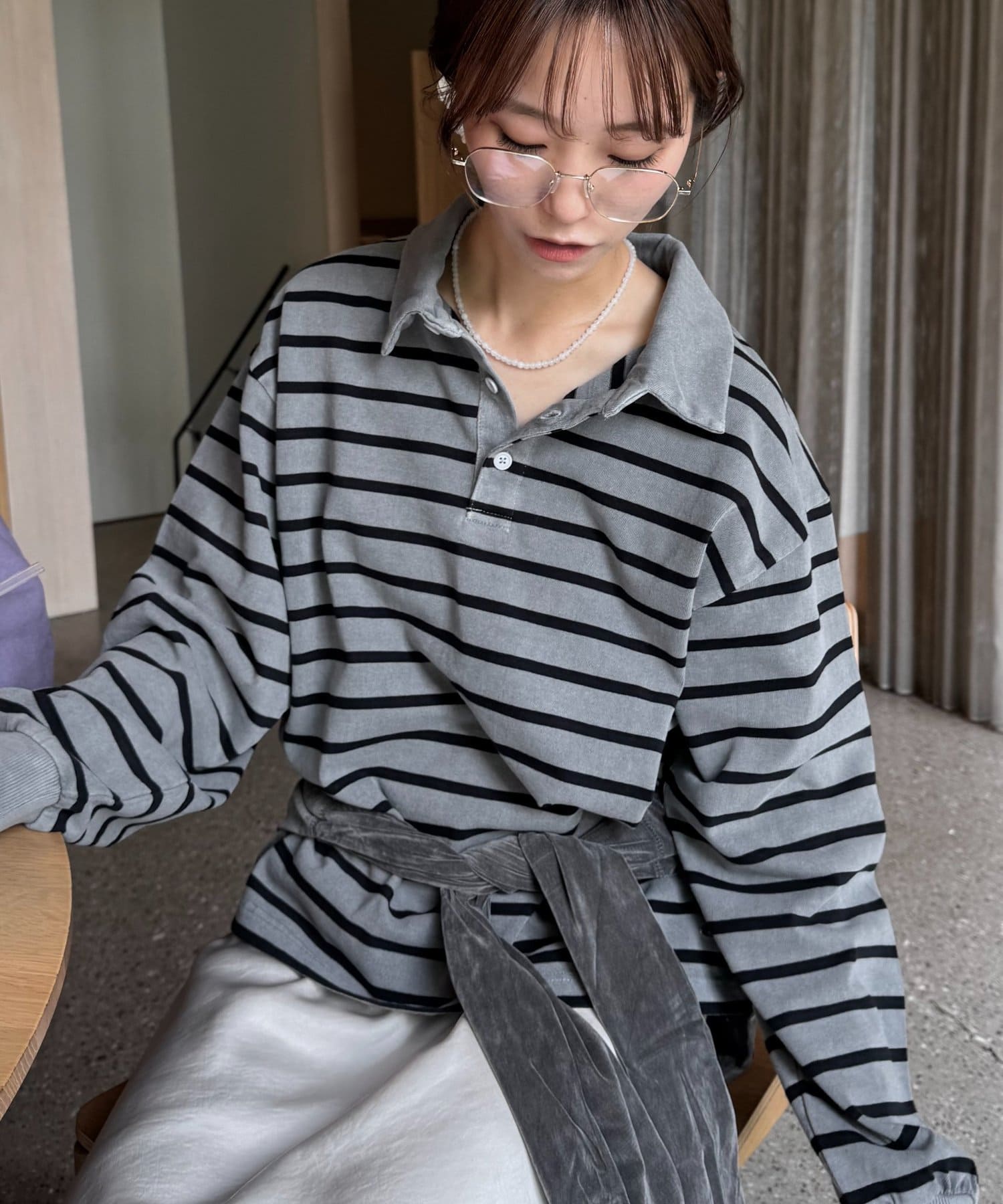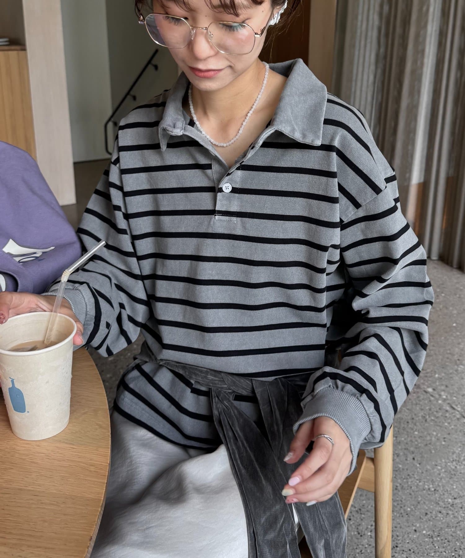 私のようにメンズライクと甘めスタイリングどちらも楽しみたい!という欲張りな方のために作ったボーダートップス。