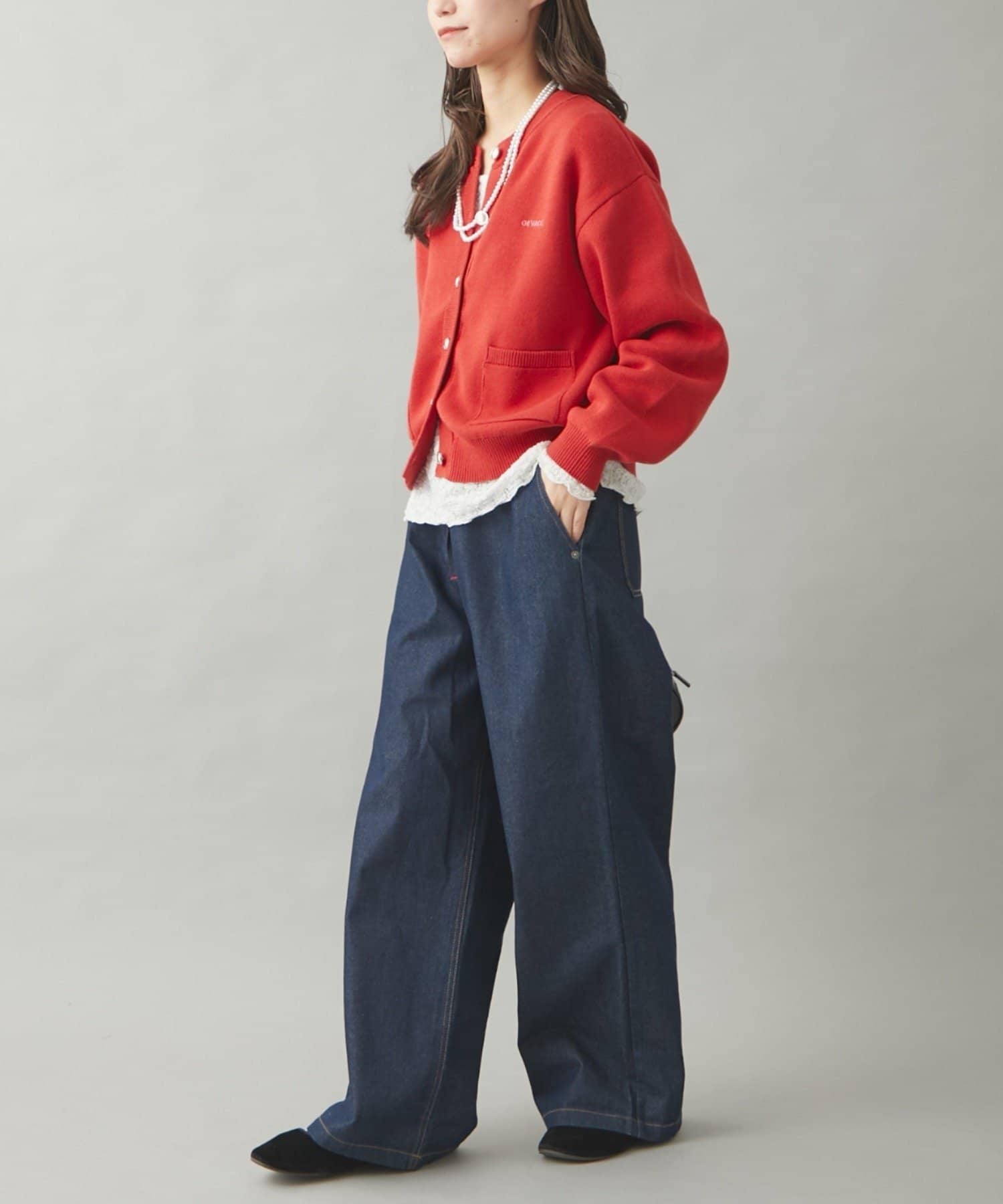ワイドシルエットながらもきれい見えする10ozデニムイージーパンツ