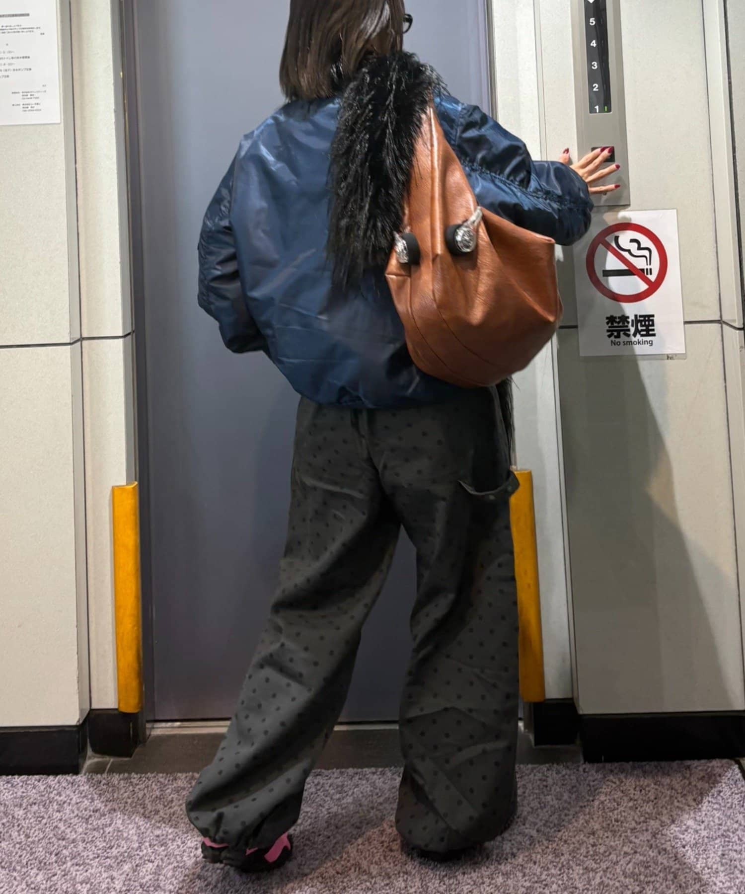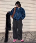 ボリュームのあるシルエットを活かし、トップスにはあえてショート丈のブルゾンやタイトめのアイテムを合わせると、全体のバランスが引き締まります。