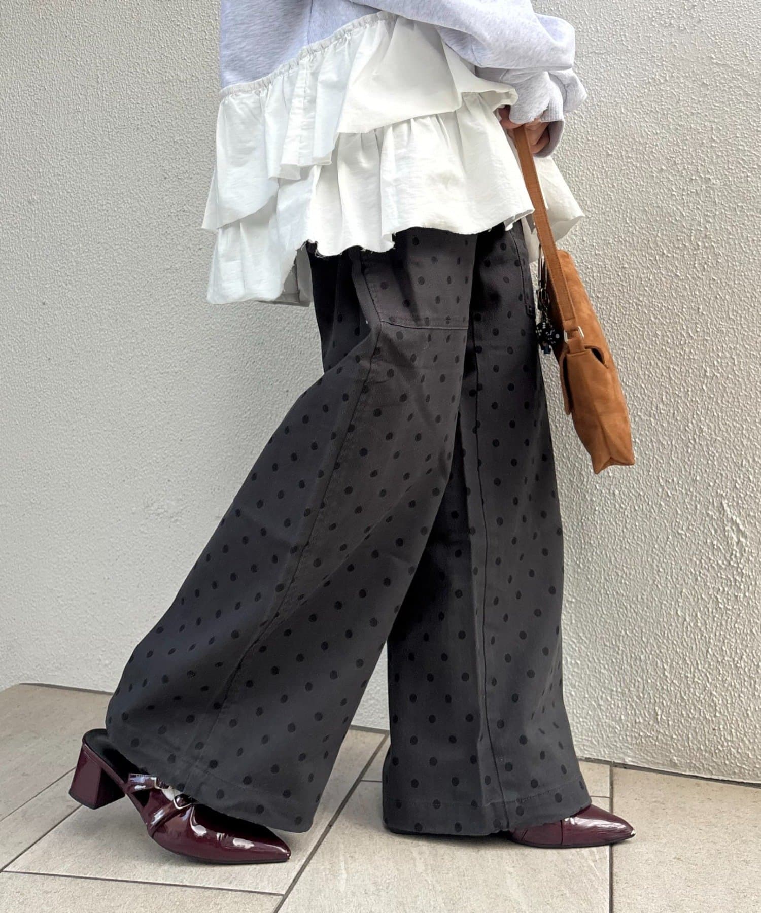 シンプルなトップスと合わせてパンツを主役にするのはもちろん、柄物トップスと合わせて個性的なスタイリングを楽しむのもおすすめです。