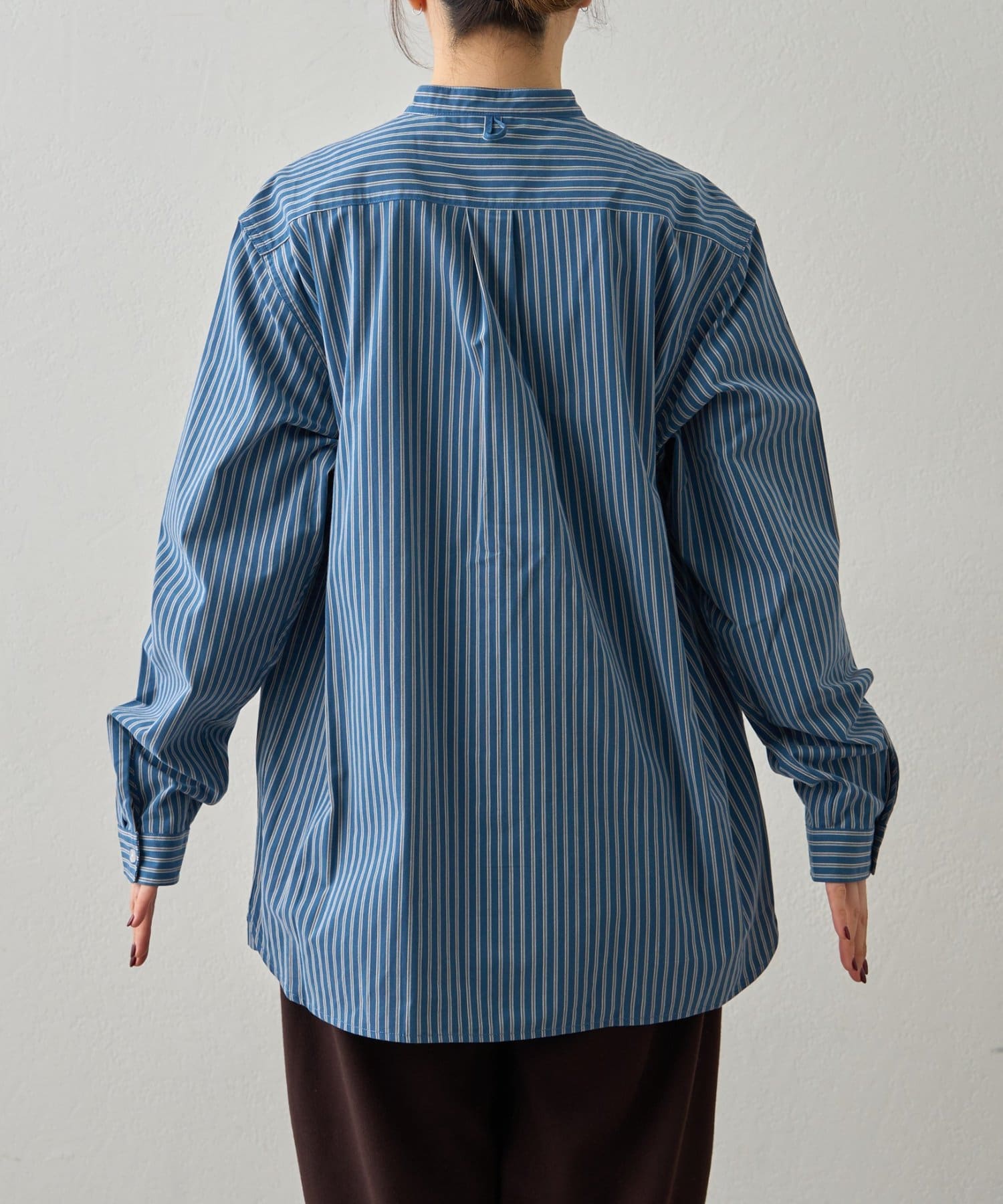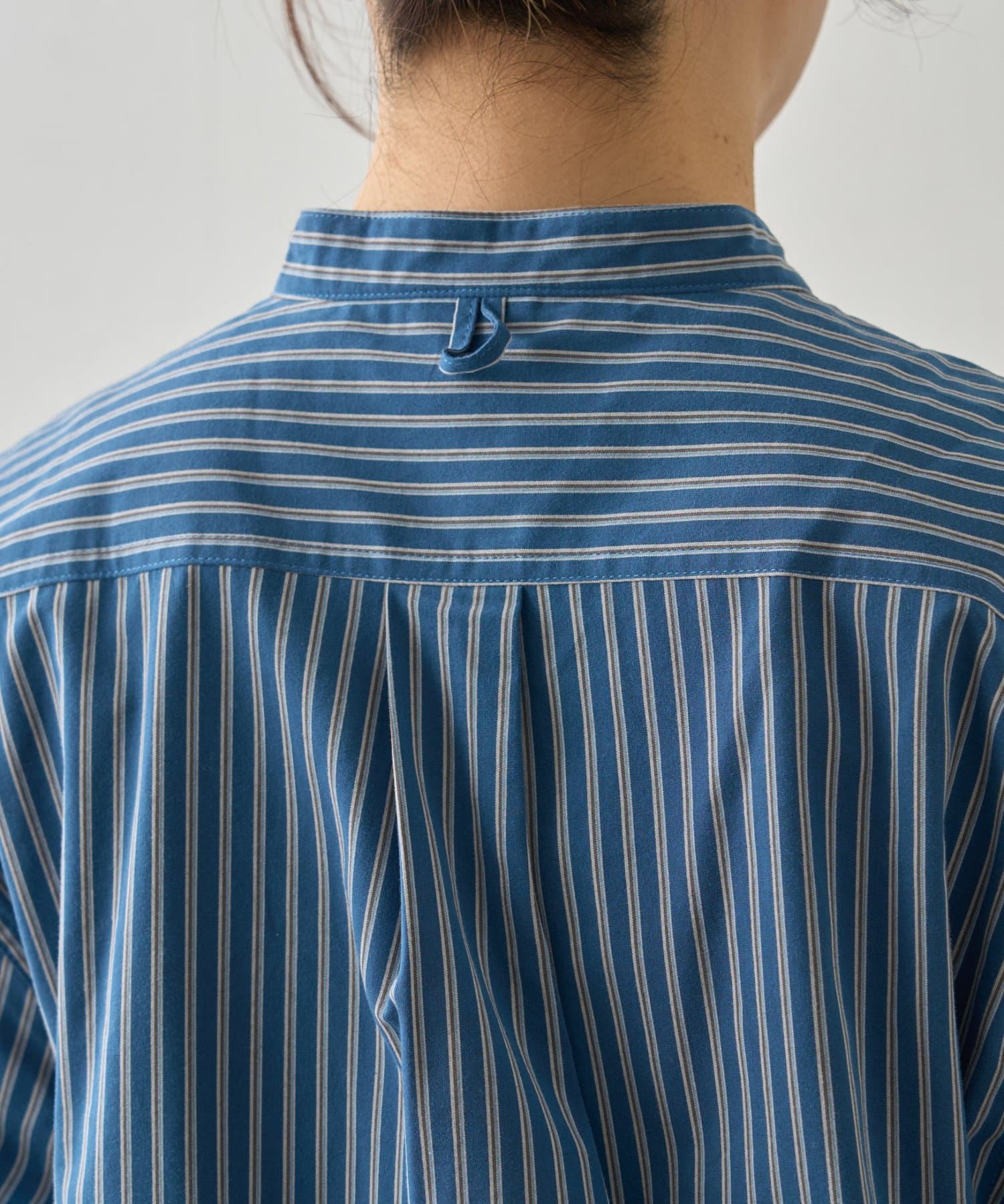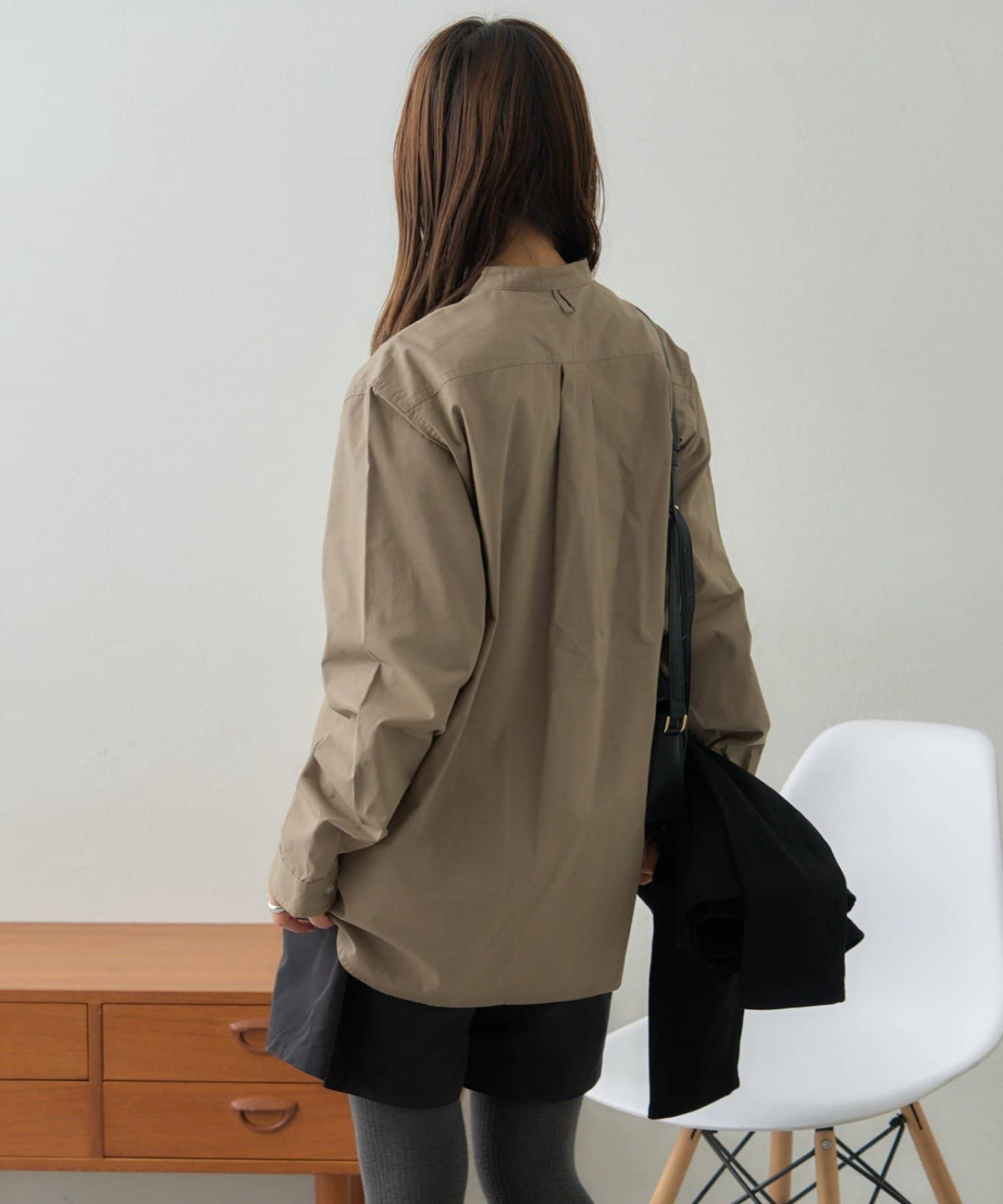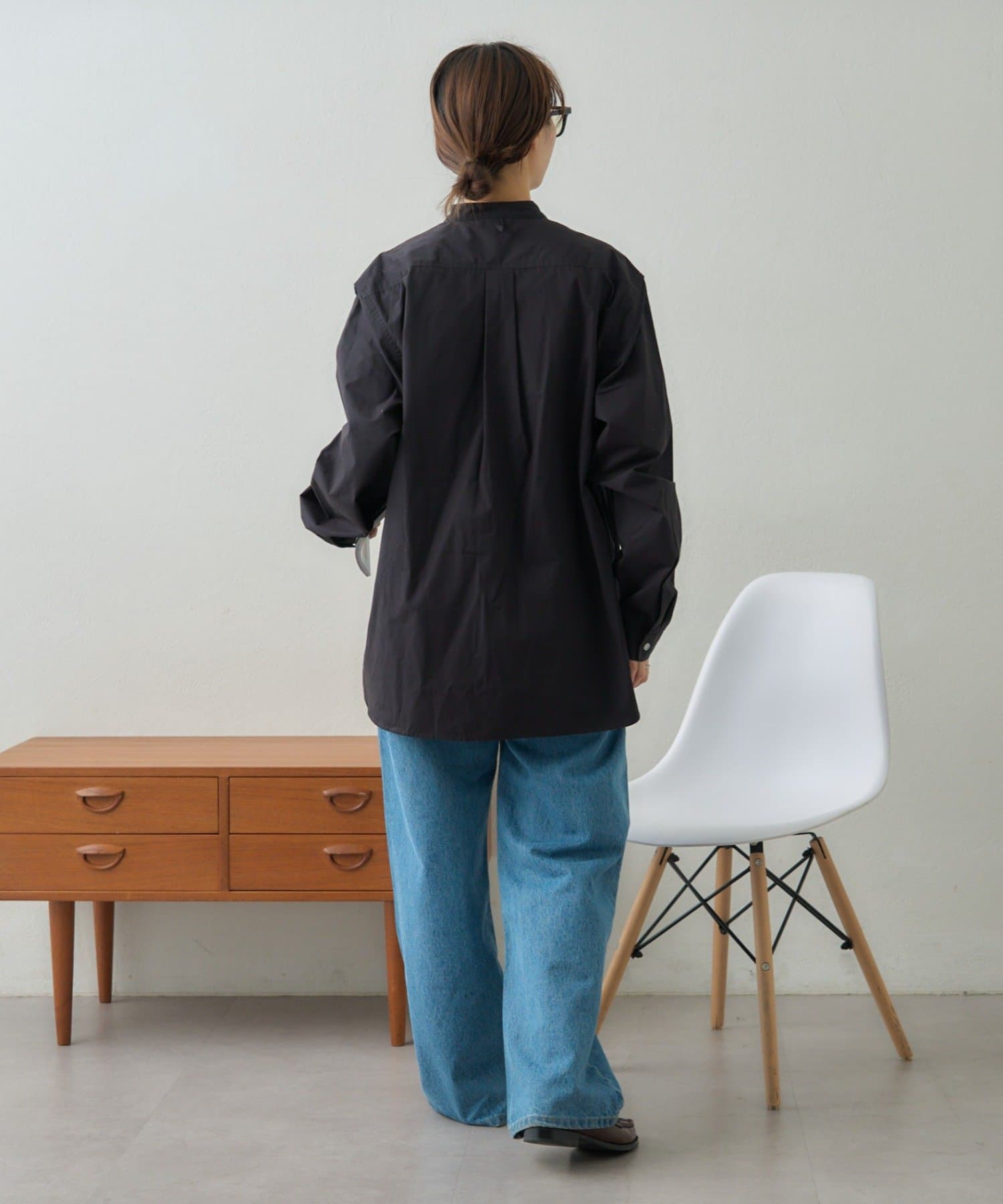 首元はすっきり見えするバンドカラーで、スタイリングにより馴染む仕様。