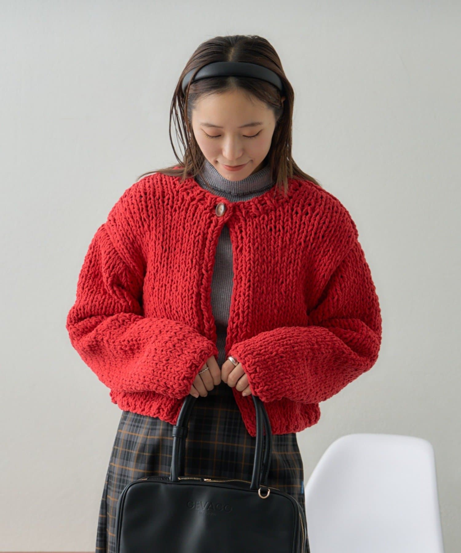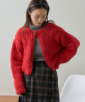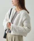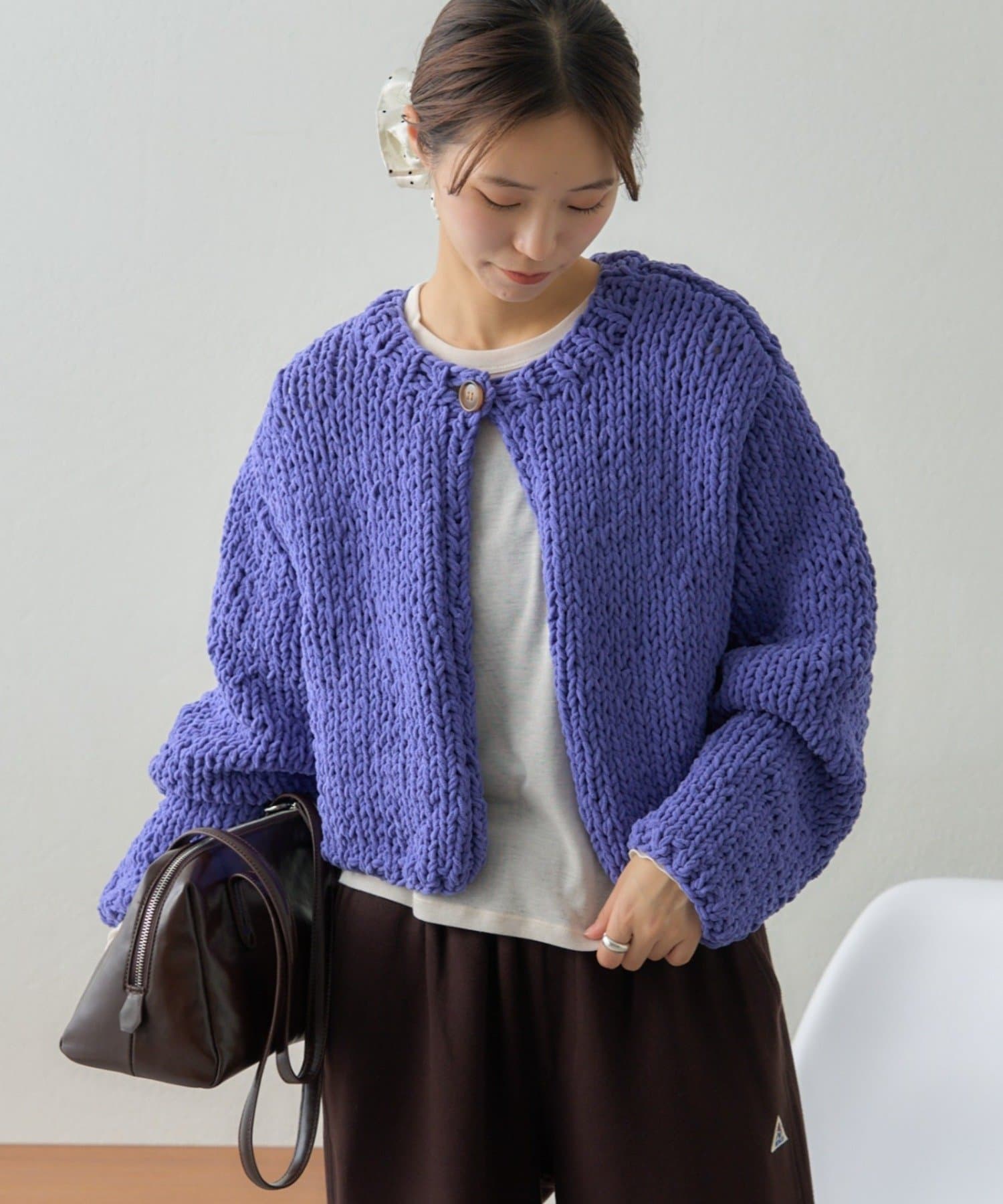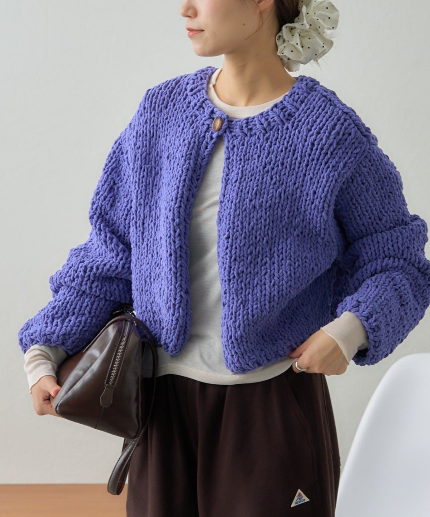 ざっくりとした太めの糸で編み立てた、存在感たっぷりのニットボレロ。