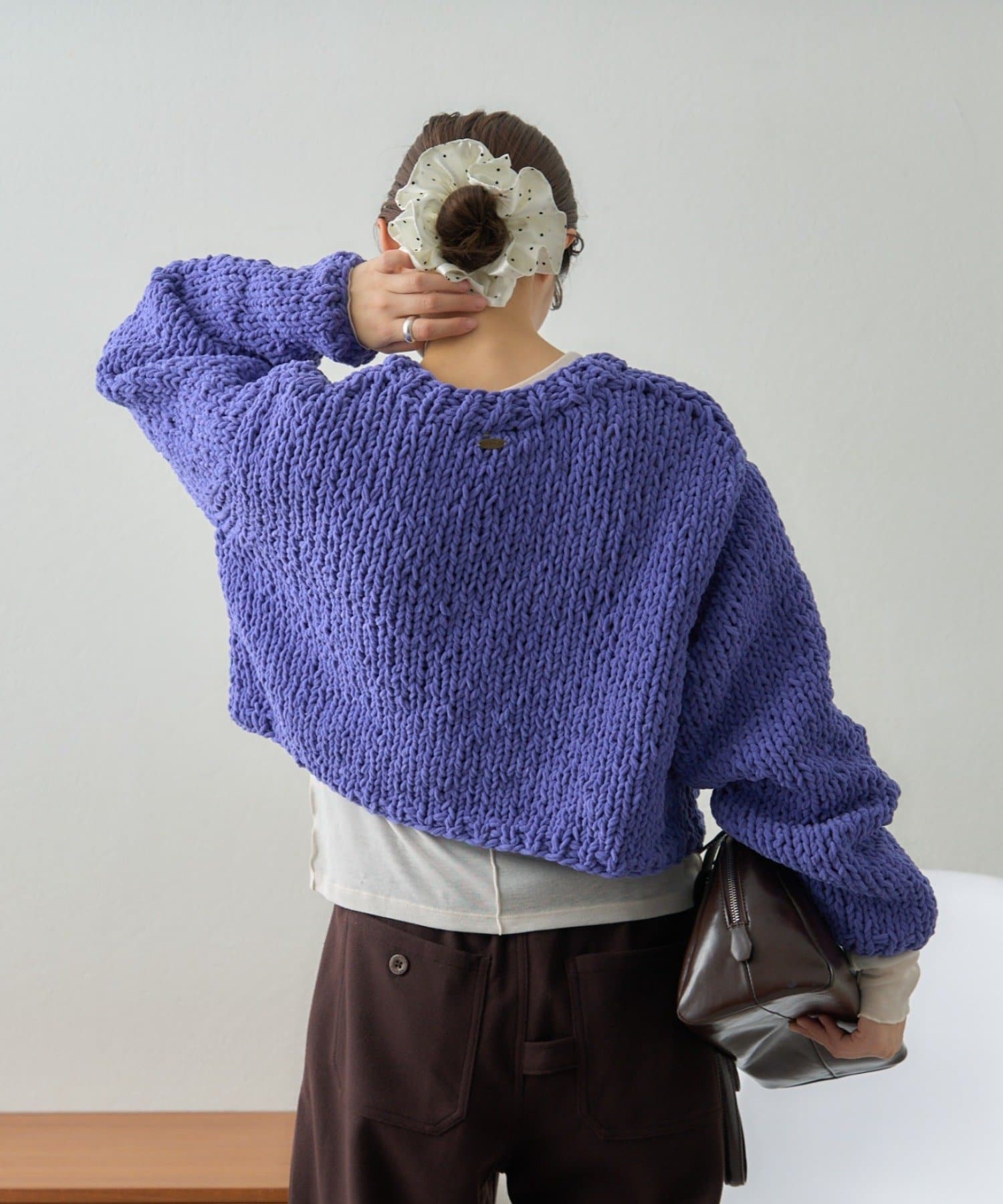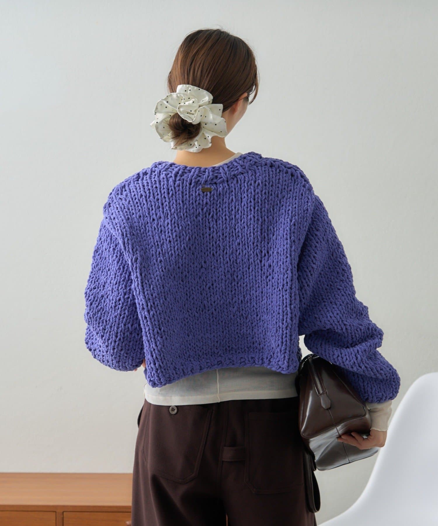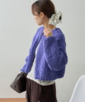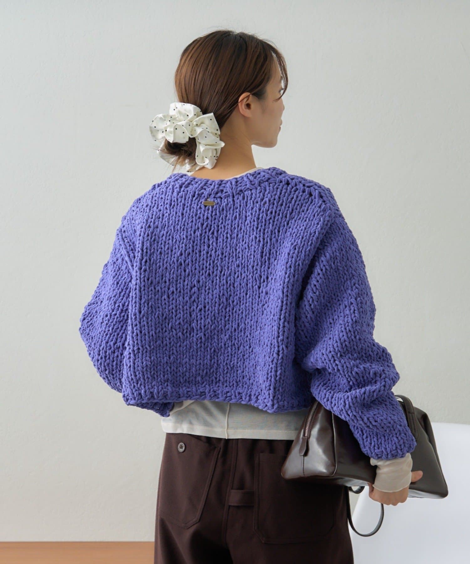 ざっくりとした太めの糸で編み立てた、存在感たっぷりのニットボレロ。