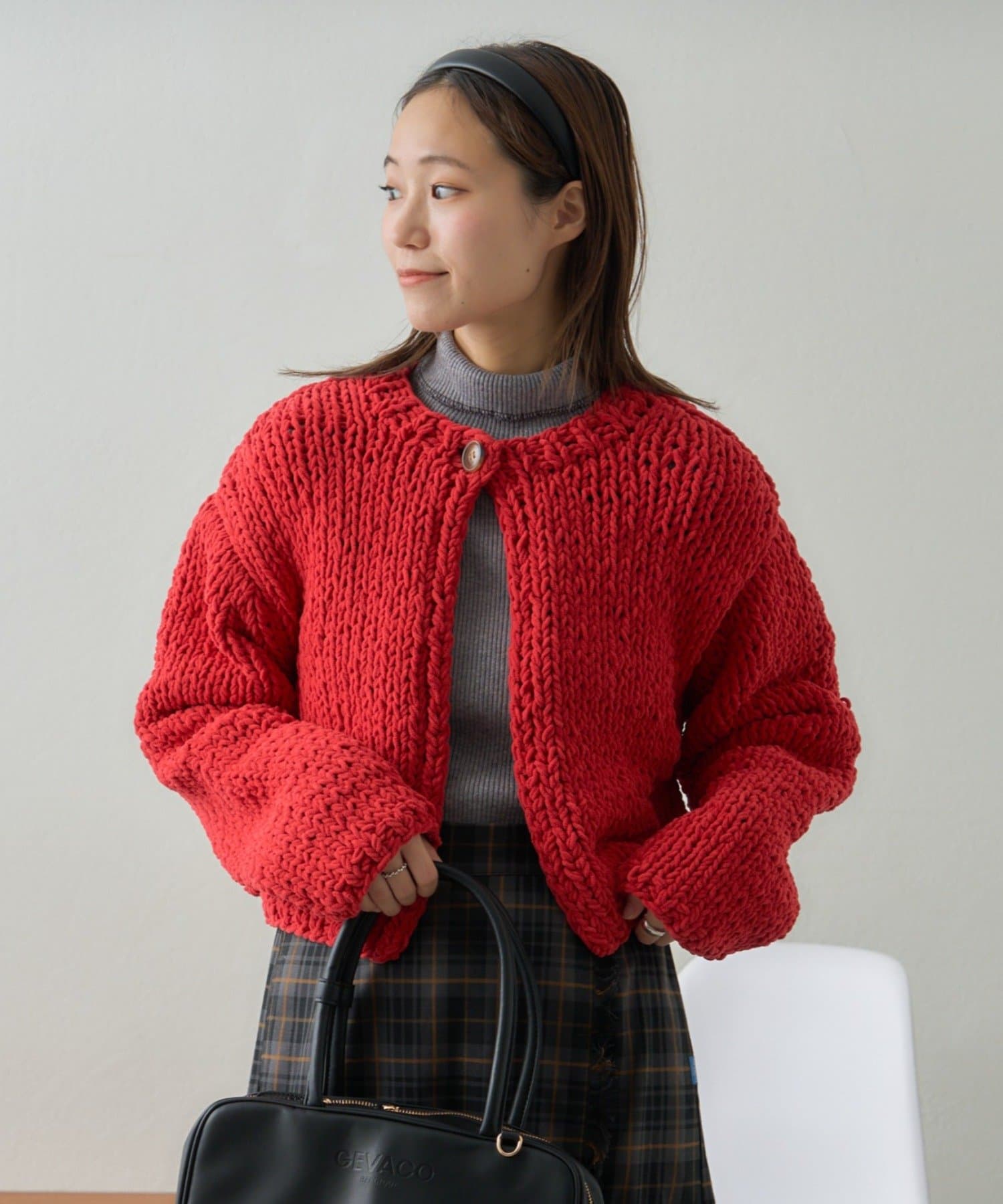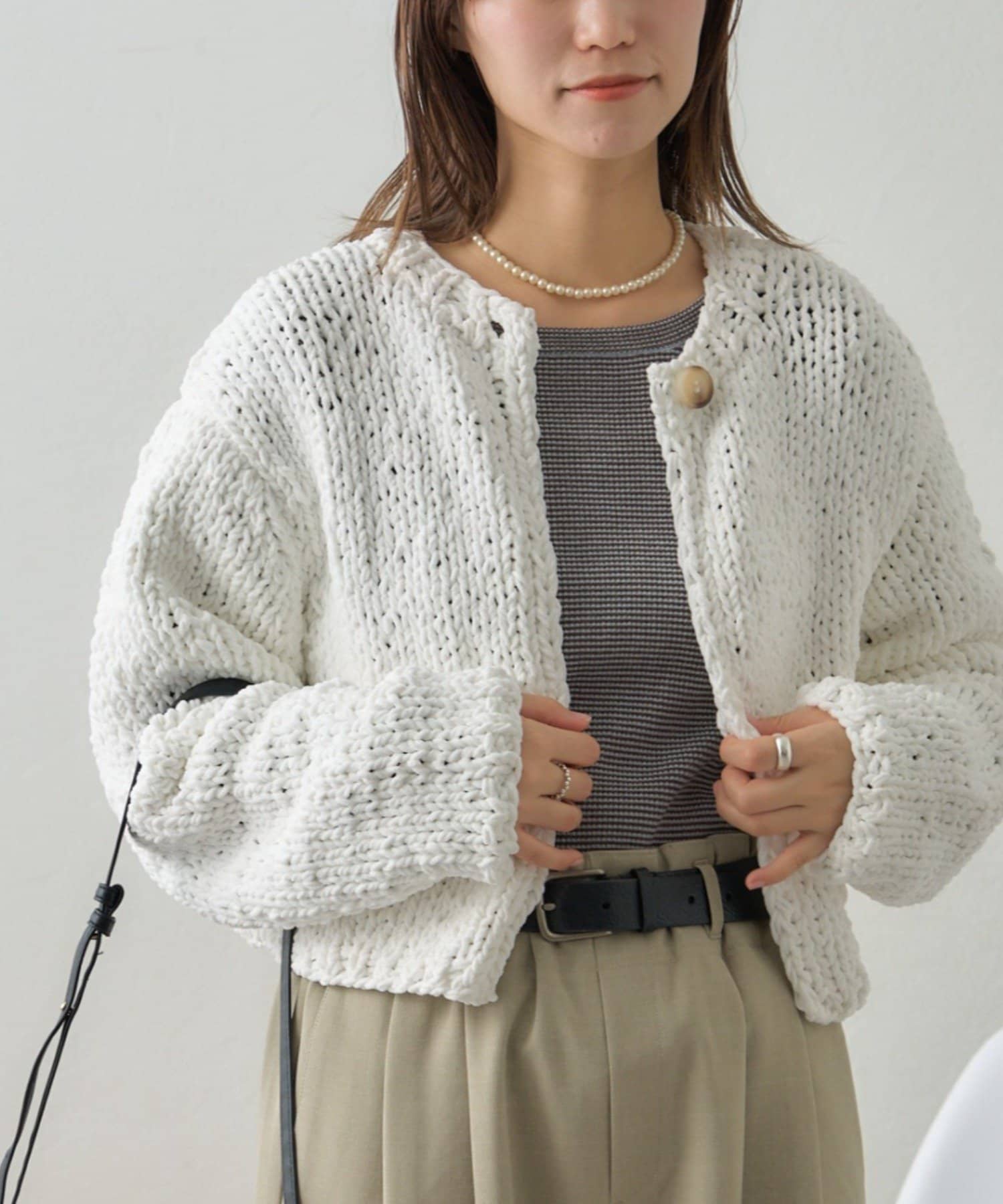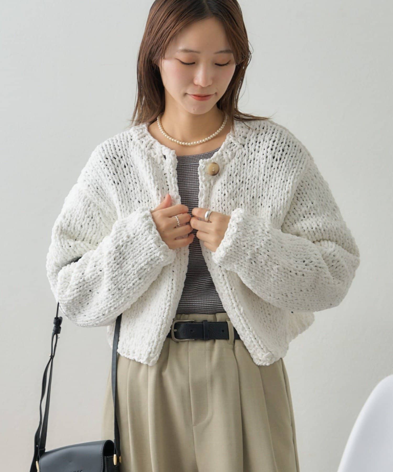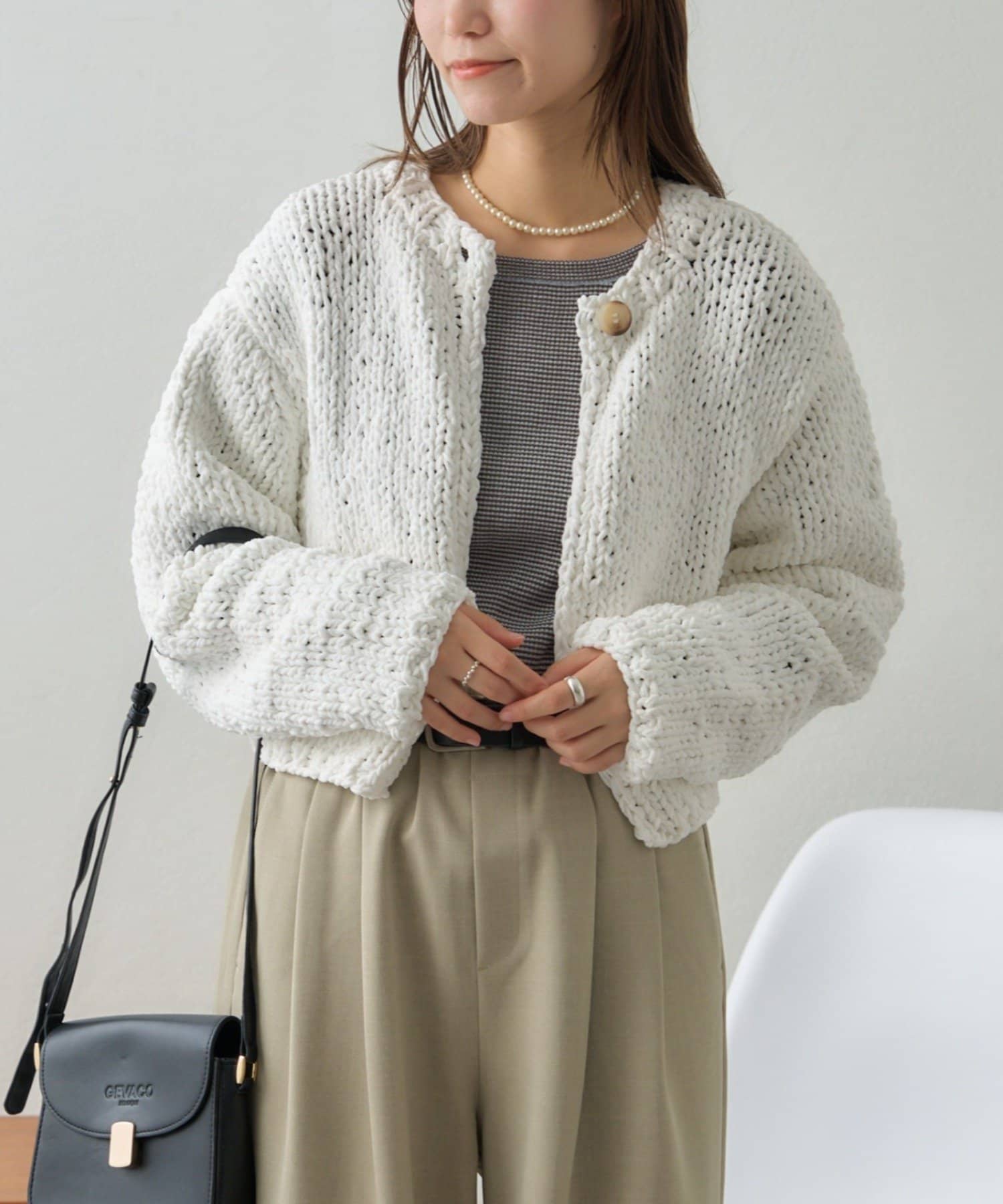 羽織るだけで旬バランスが完成するコンパクトニット◎