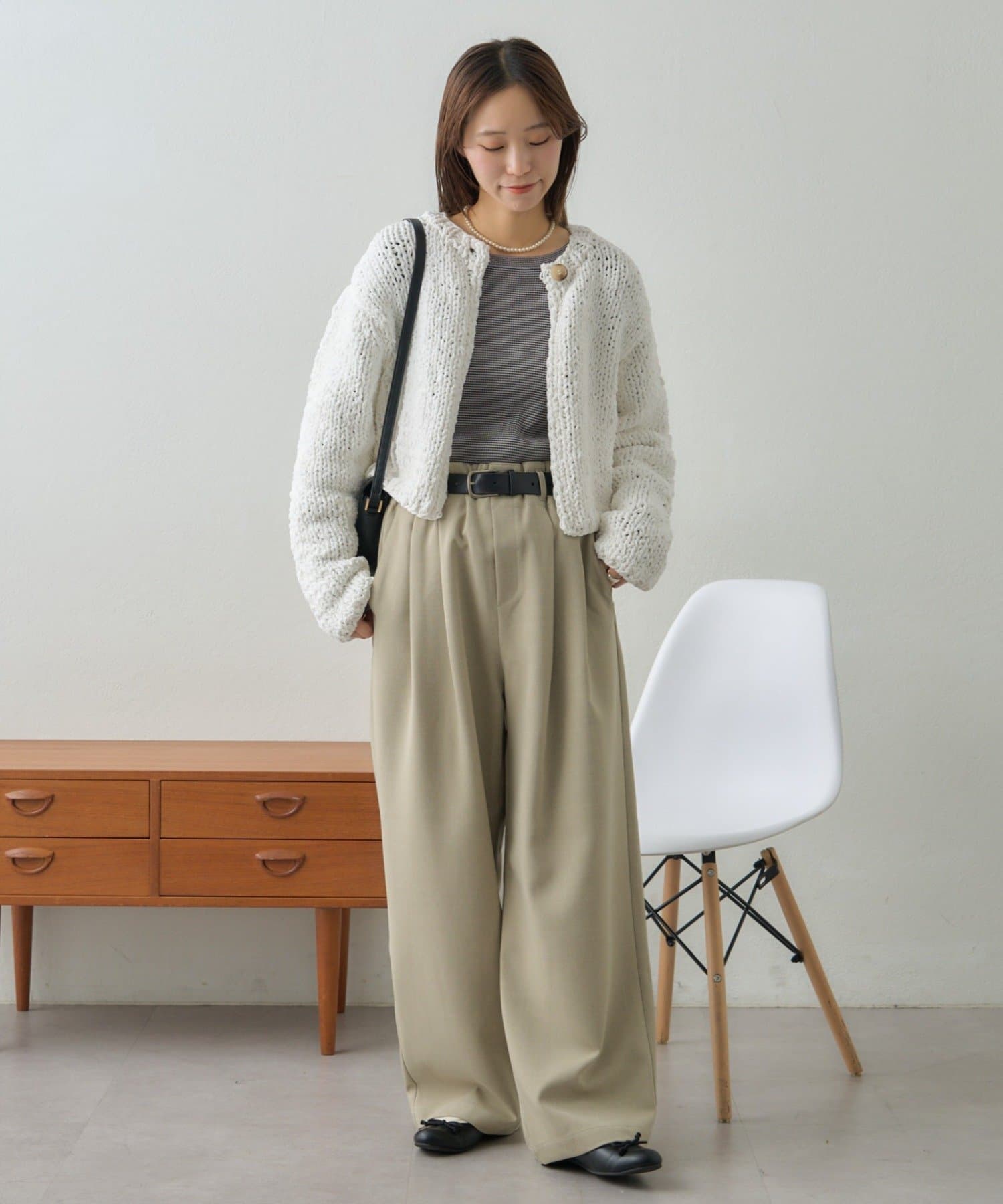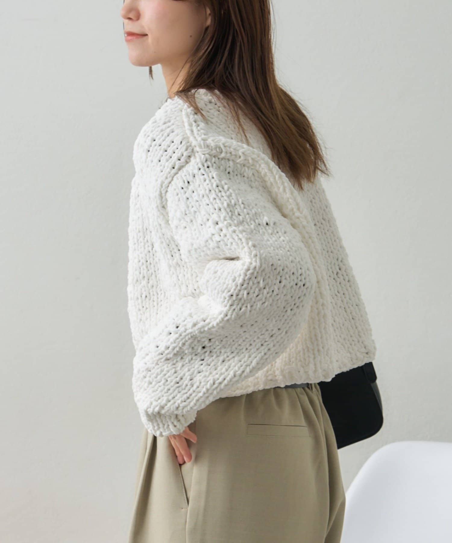 羽織るだけで旬バランスが完成するコンパクトニット◎