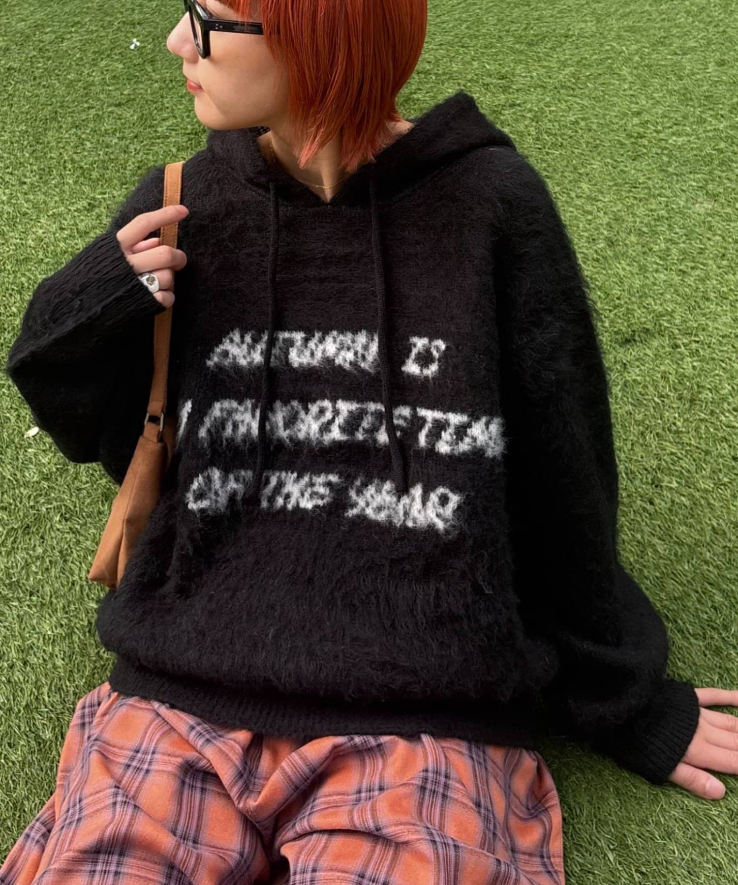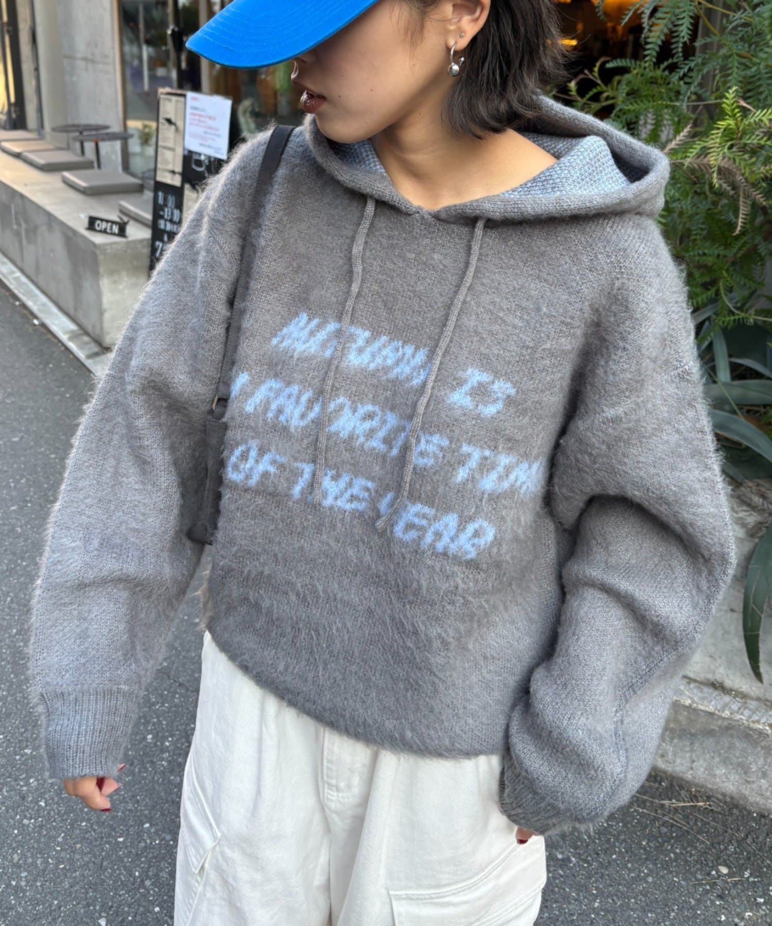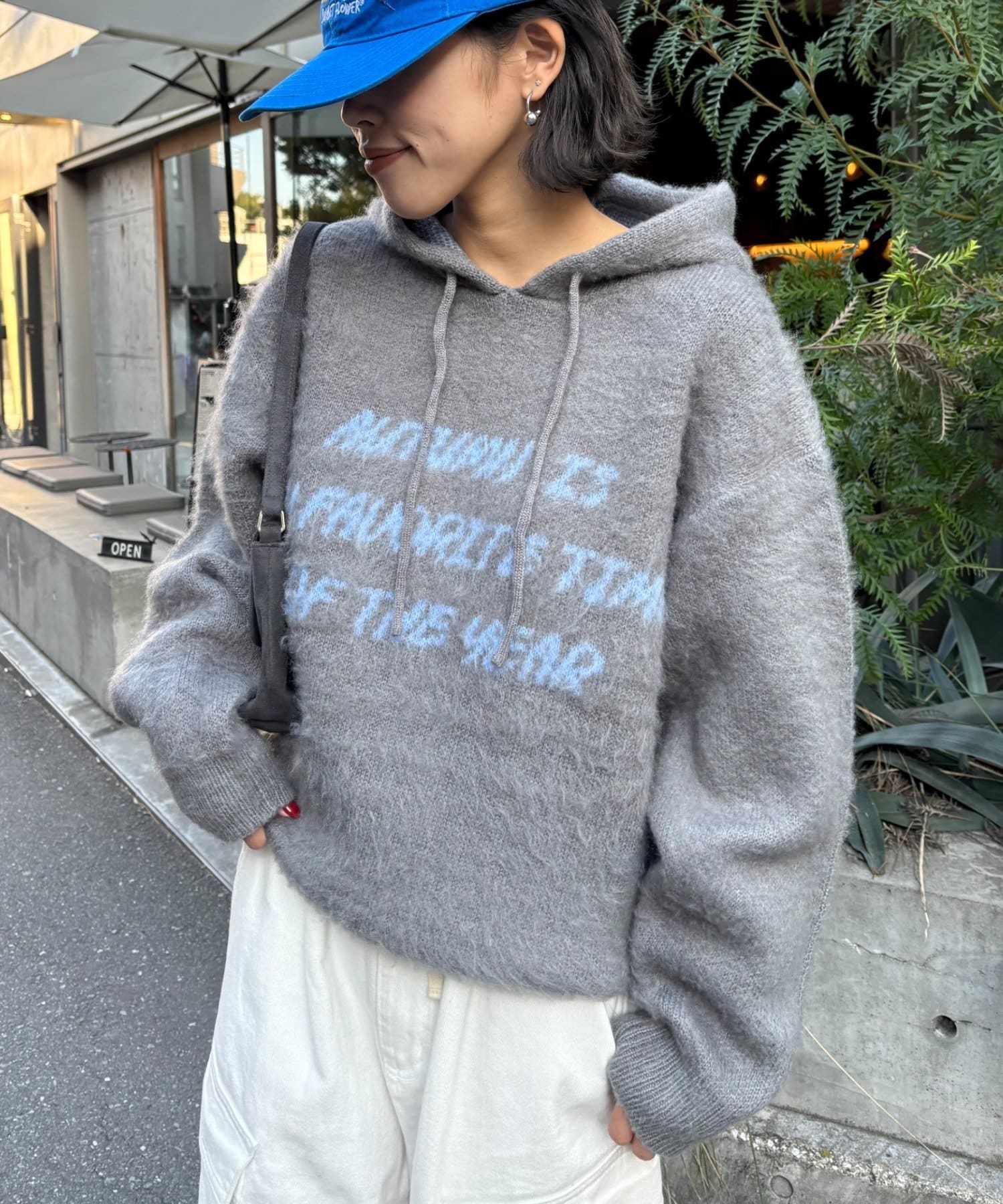 ふんわりとしたシャギー素材を使用し、思わず触れたくなるような立体感のある風合いに仕上げたニット。