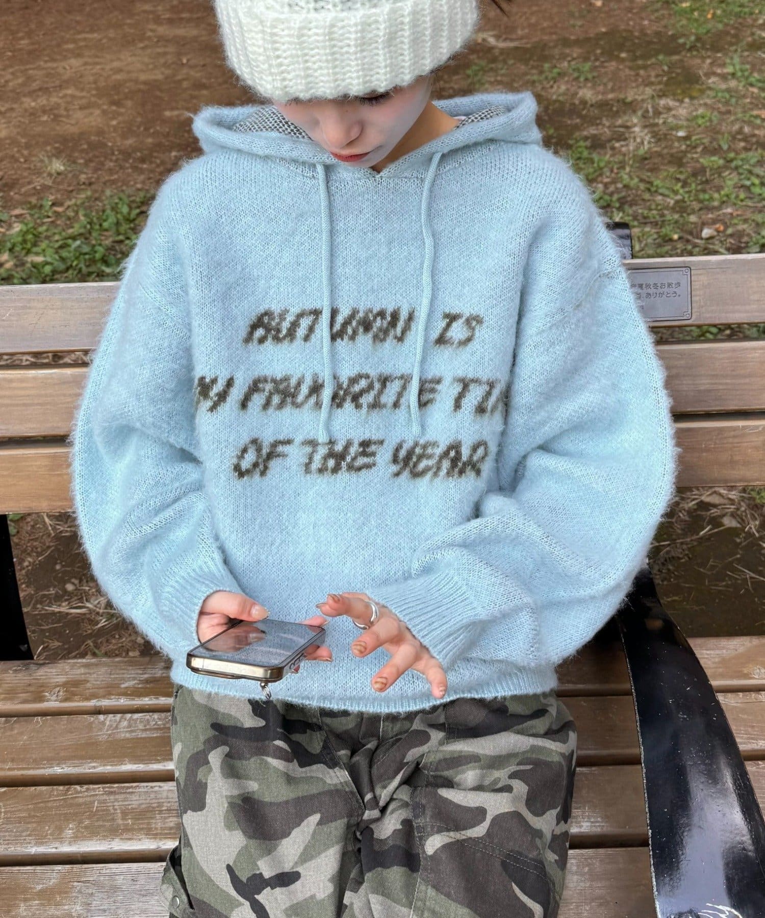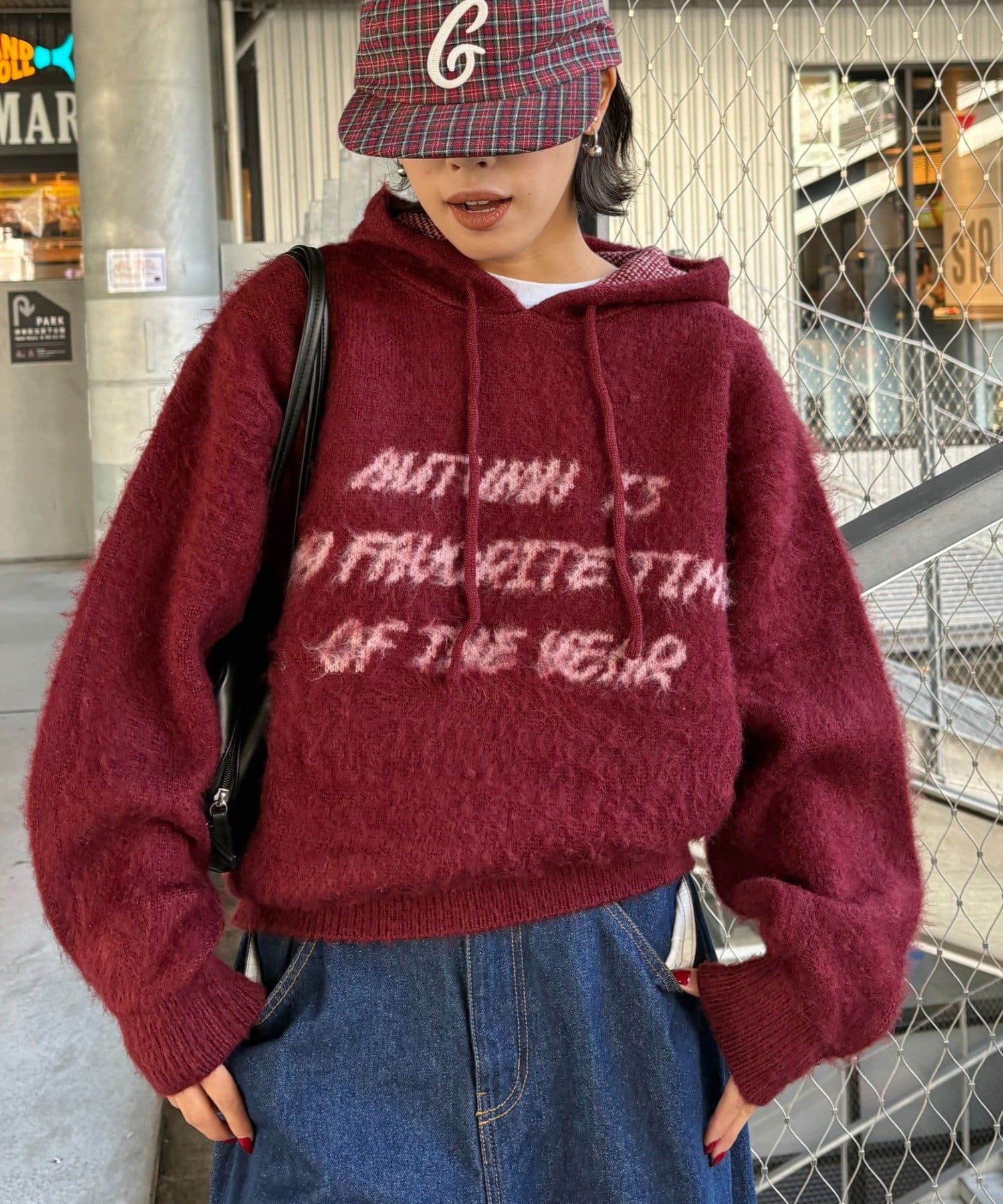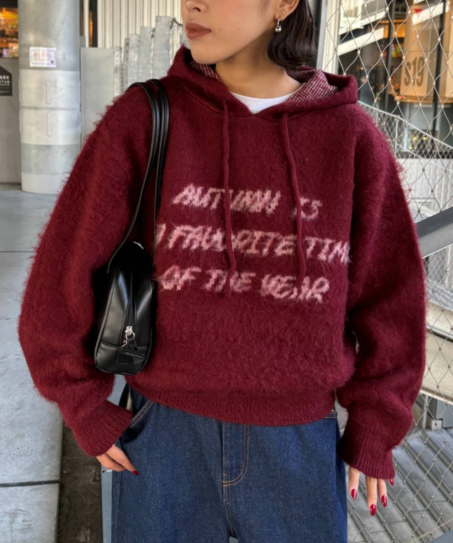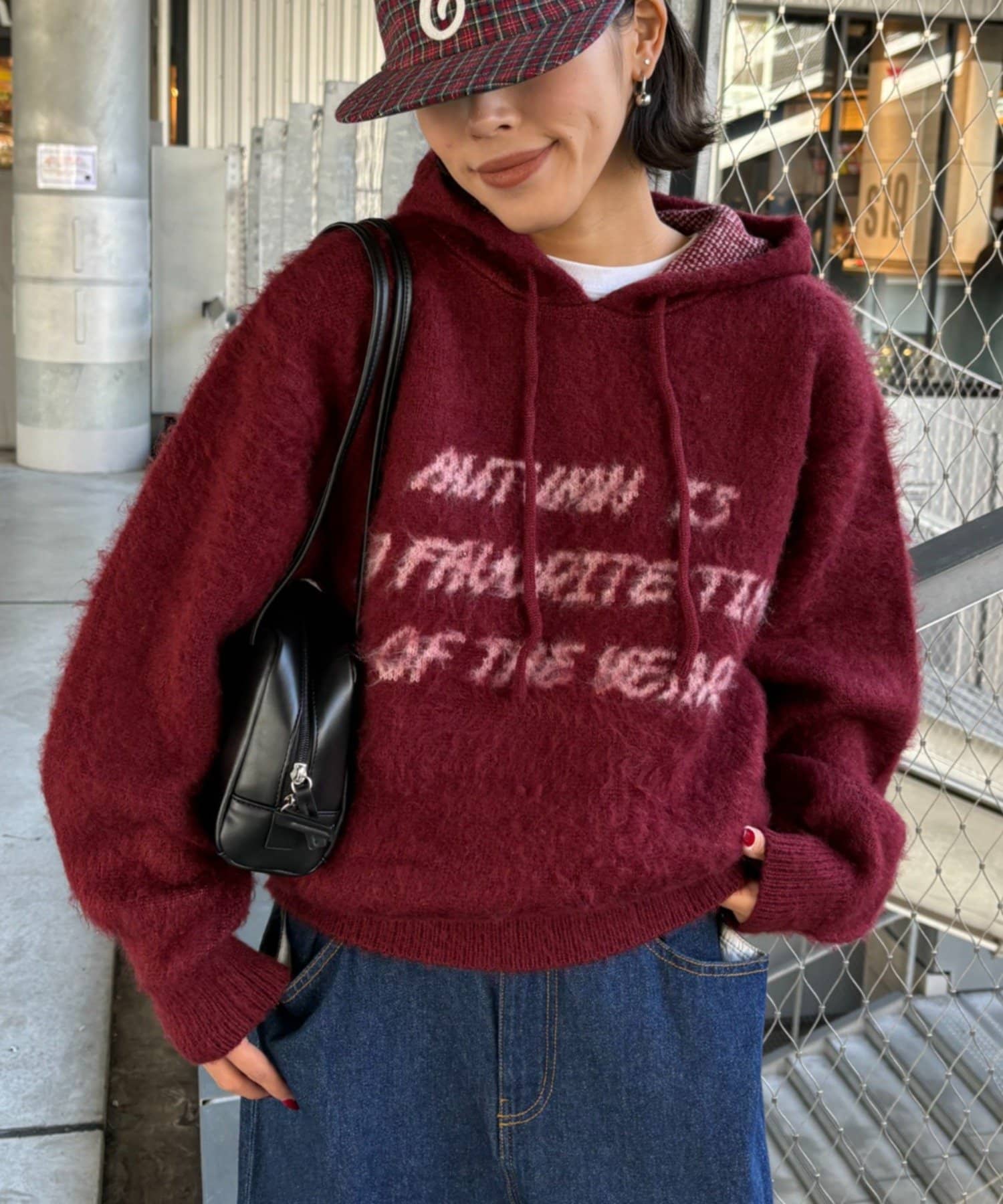 ふんわりとしたシャギー素材を使用し、思わず触れたくなるような立体感のある風合いに仕上げたニット。