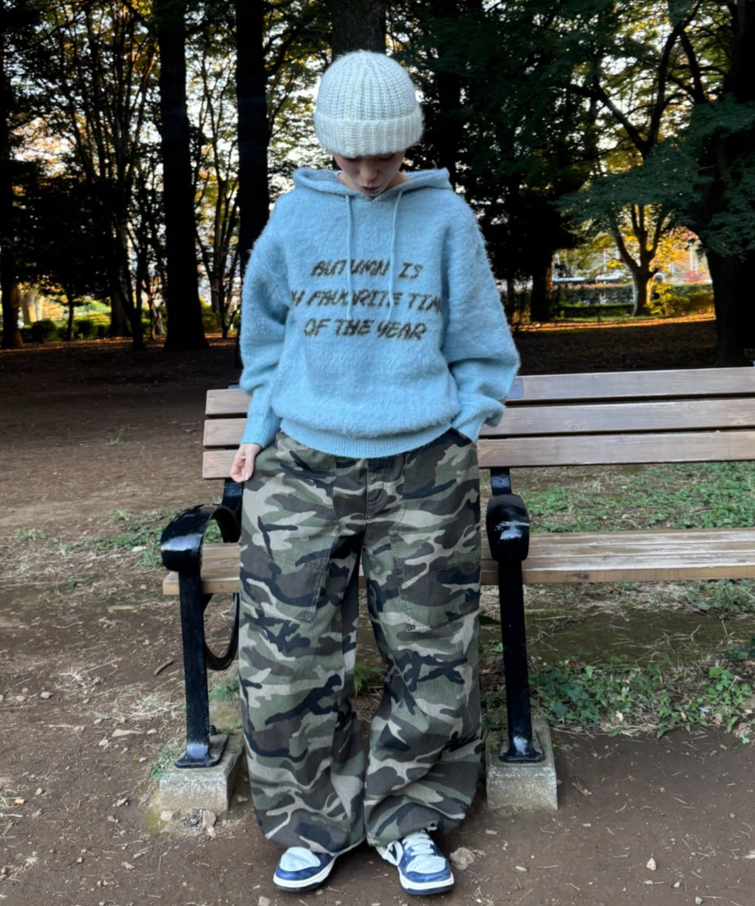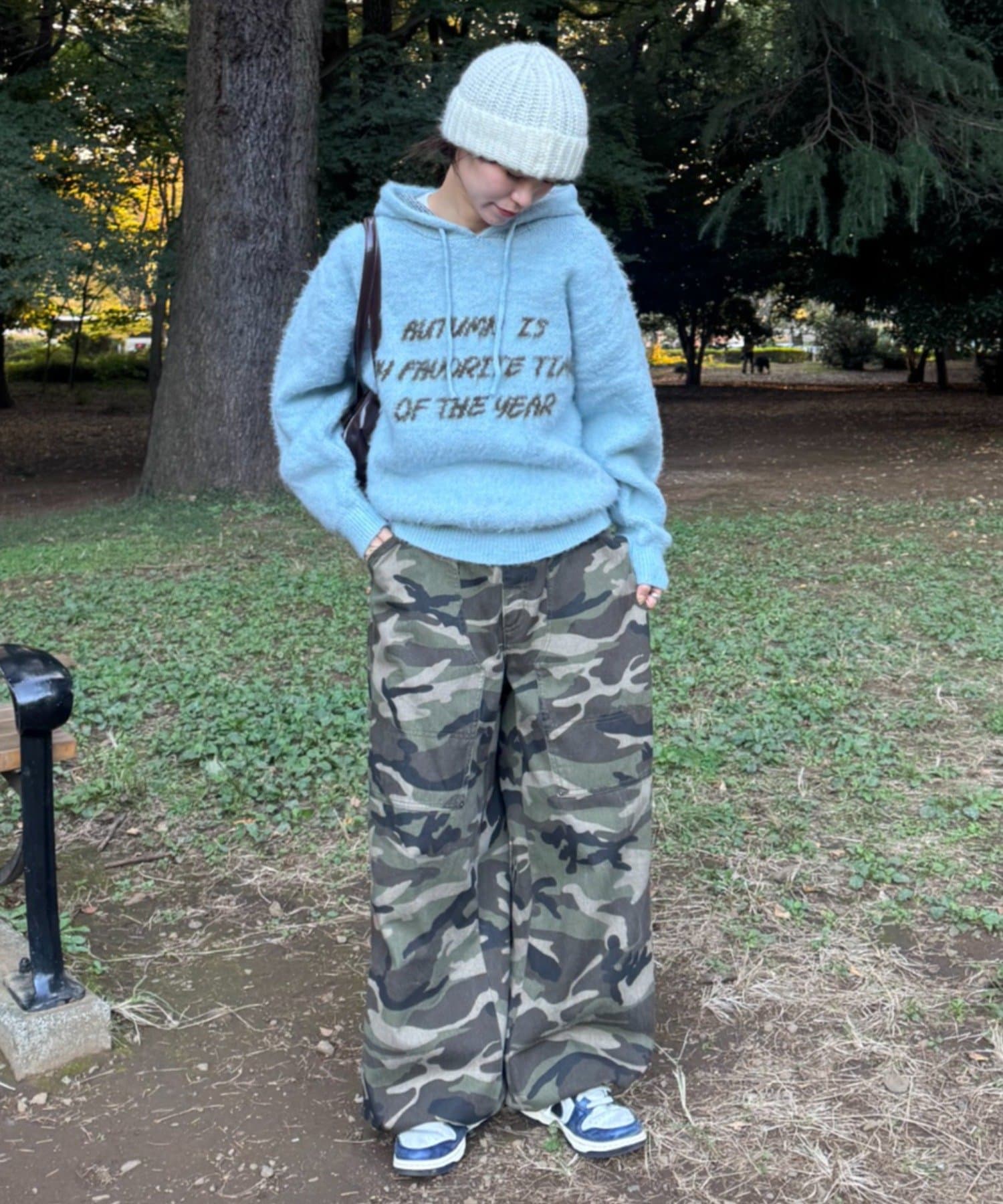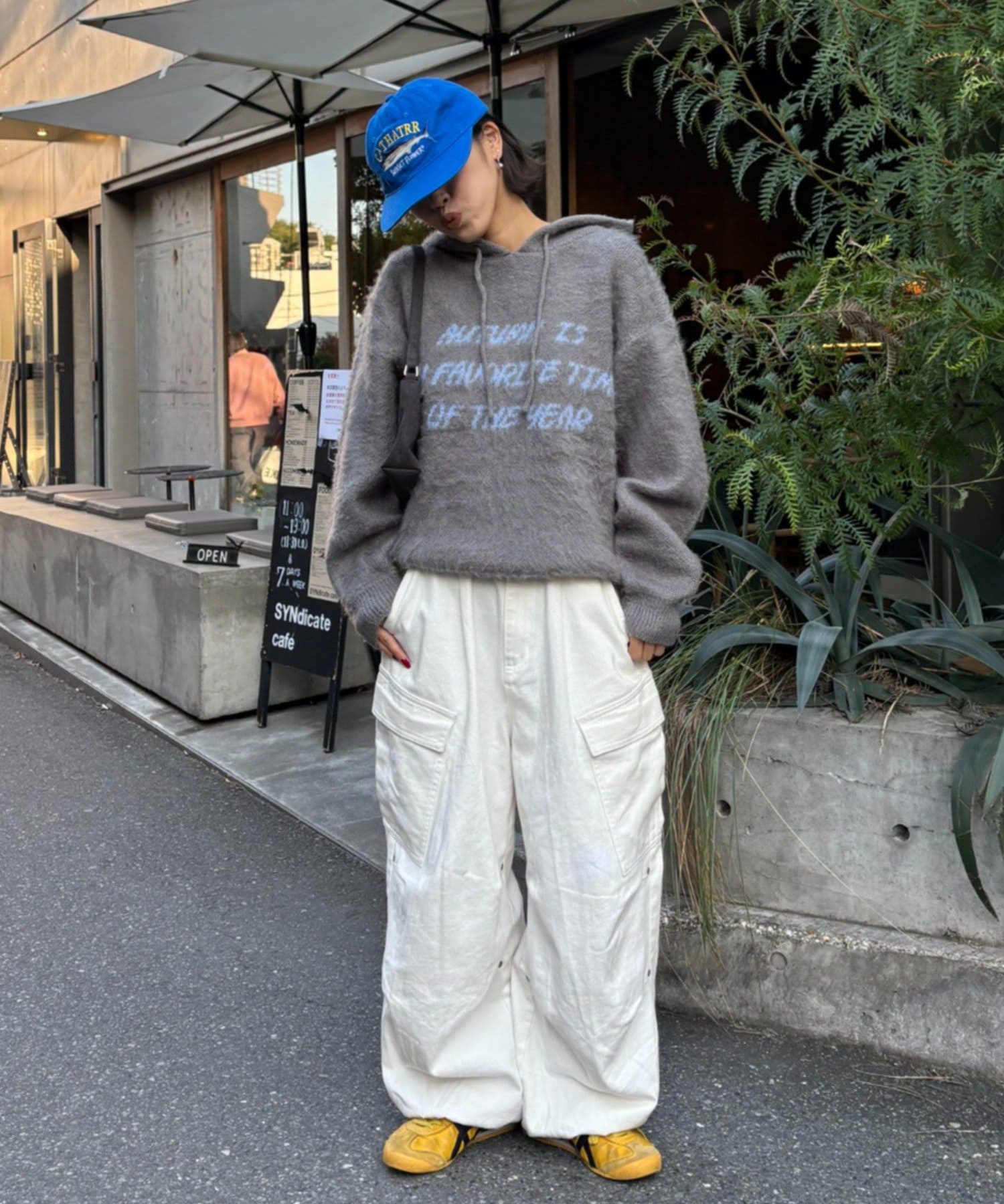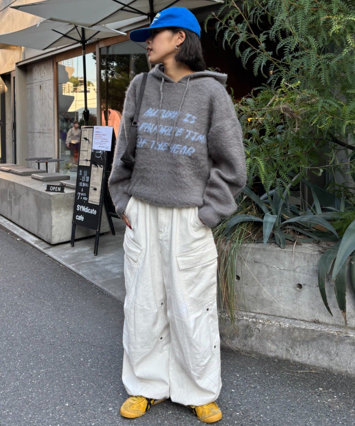 フードが付いていることで、カジュアルながらもトレンド感のある着こなしが叶います。