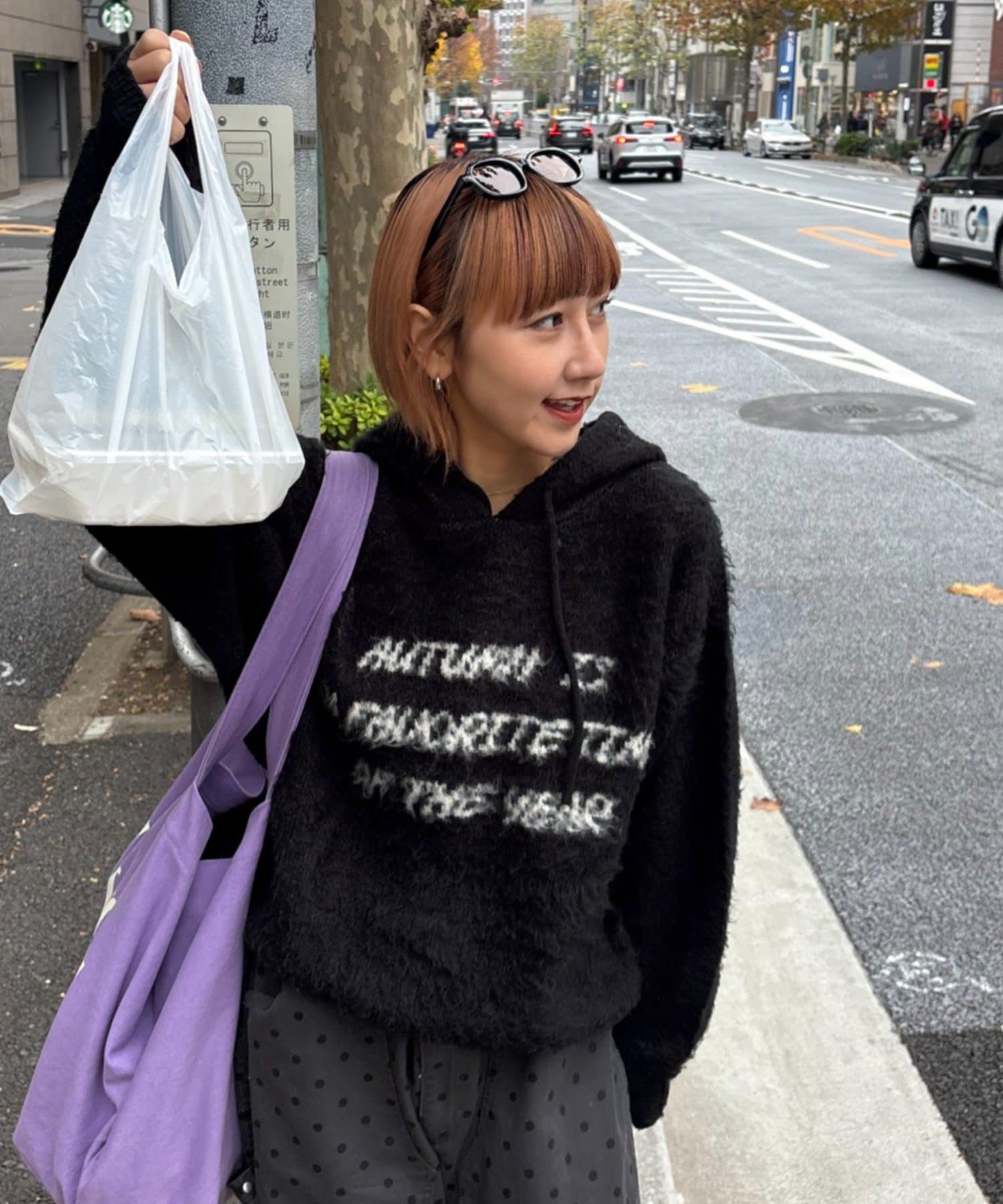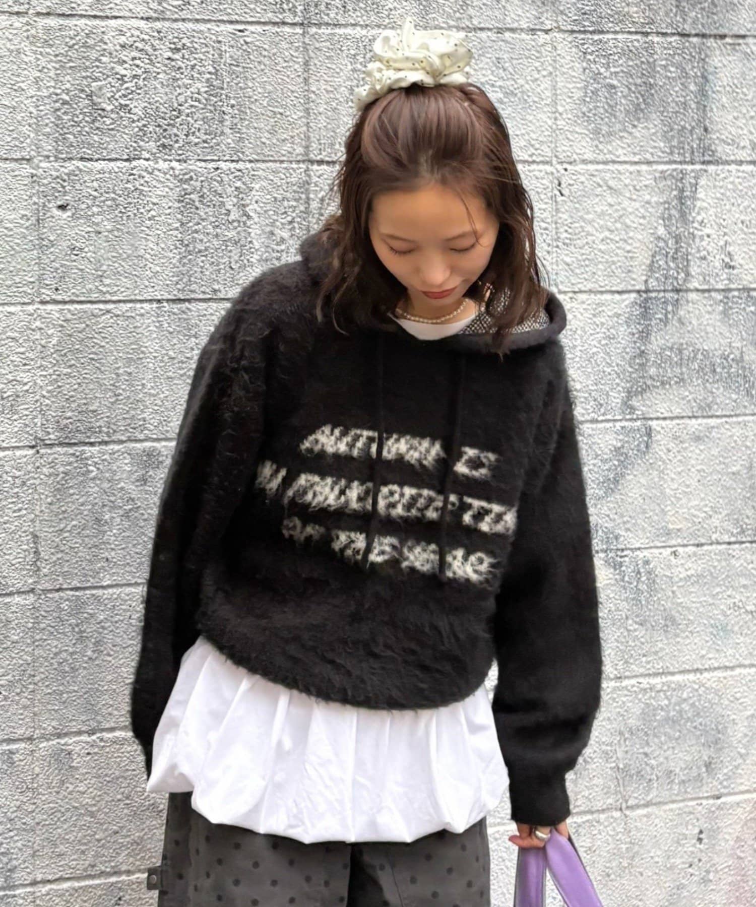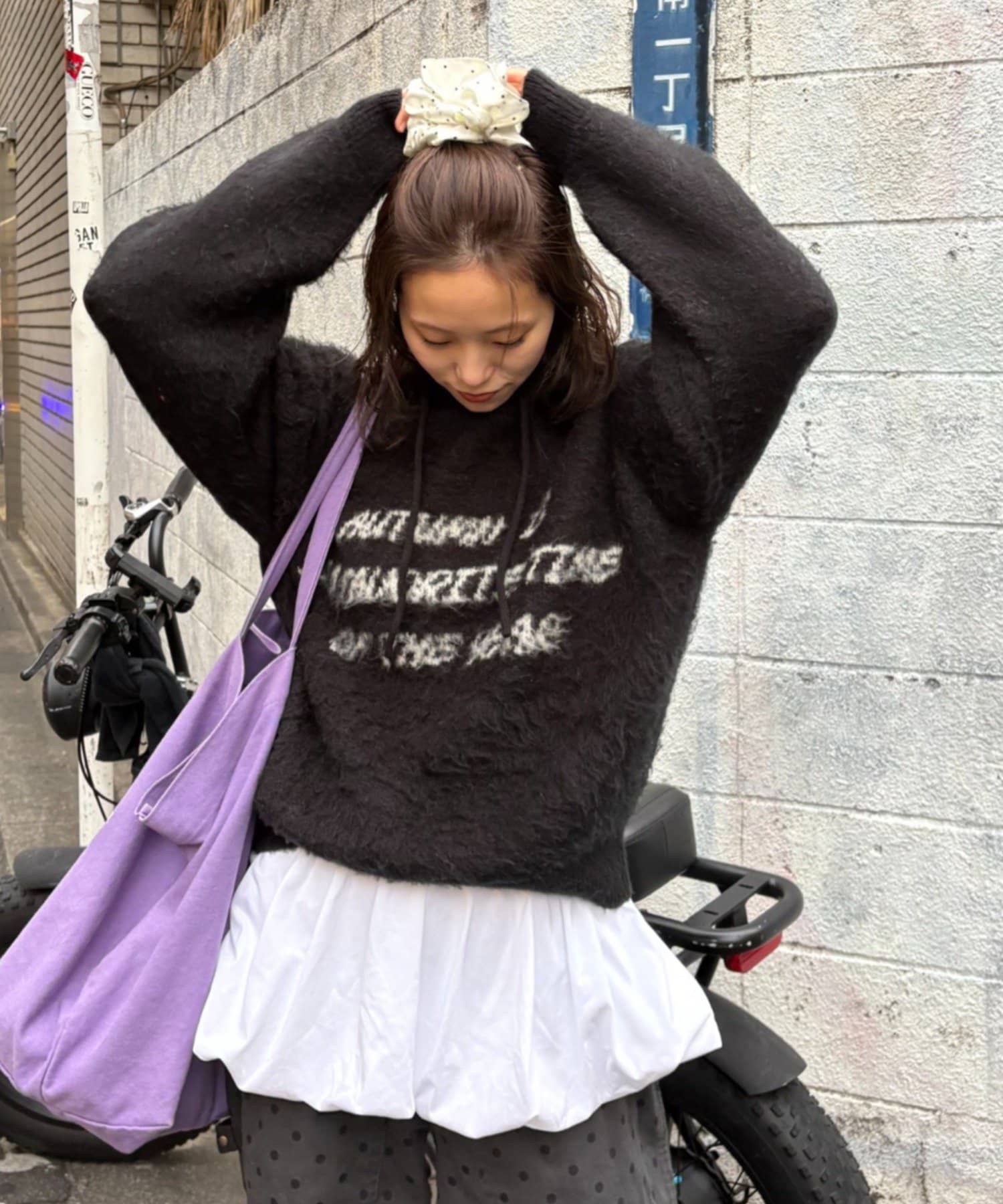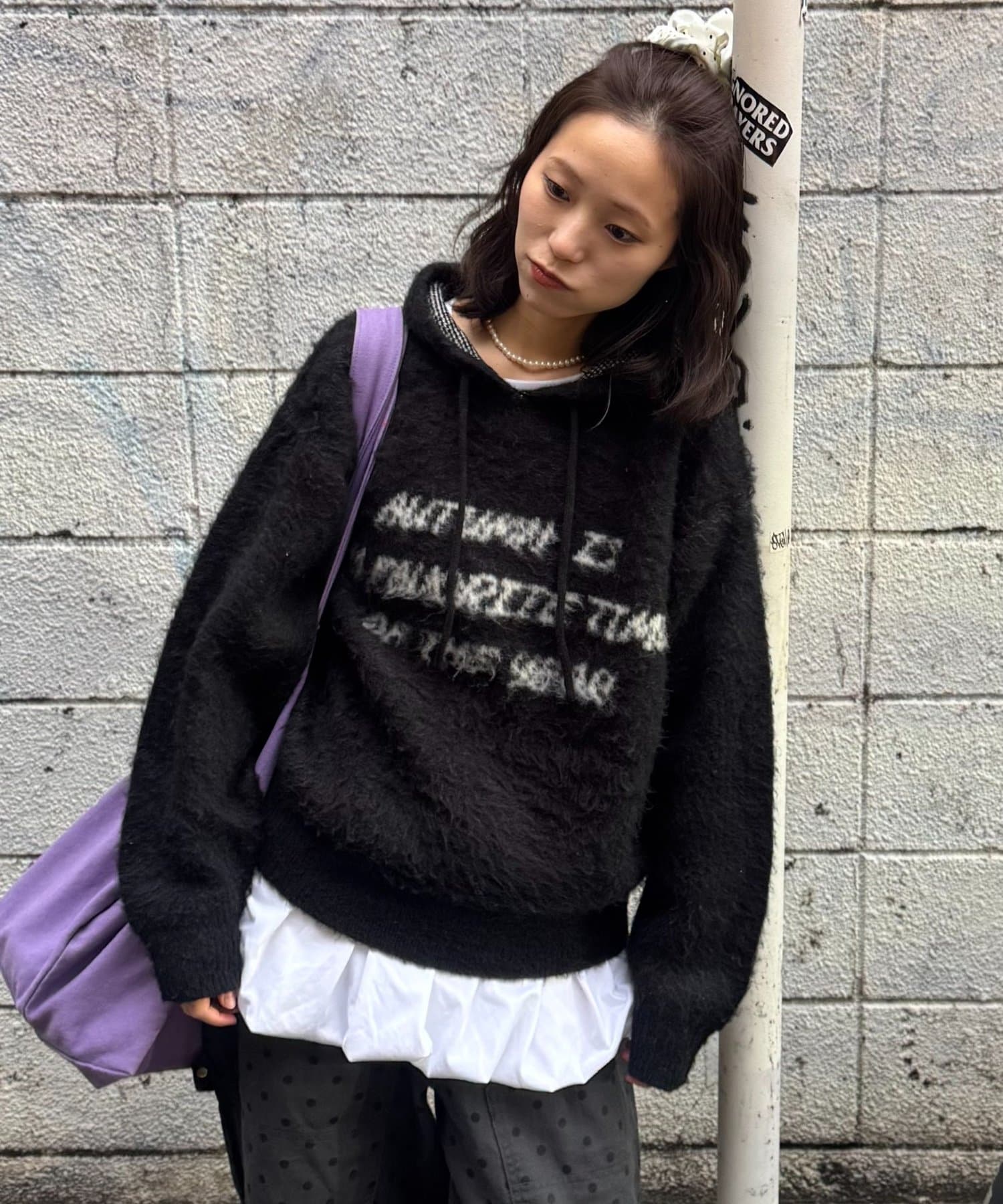 ふんわりとしたシャギー素材を使用し、思わず触れたくなるような立体感のある風合いに仕上げたニット。