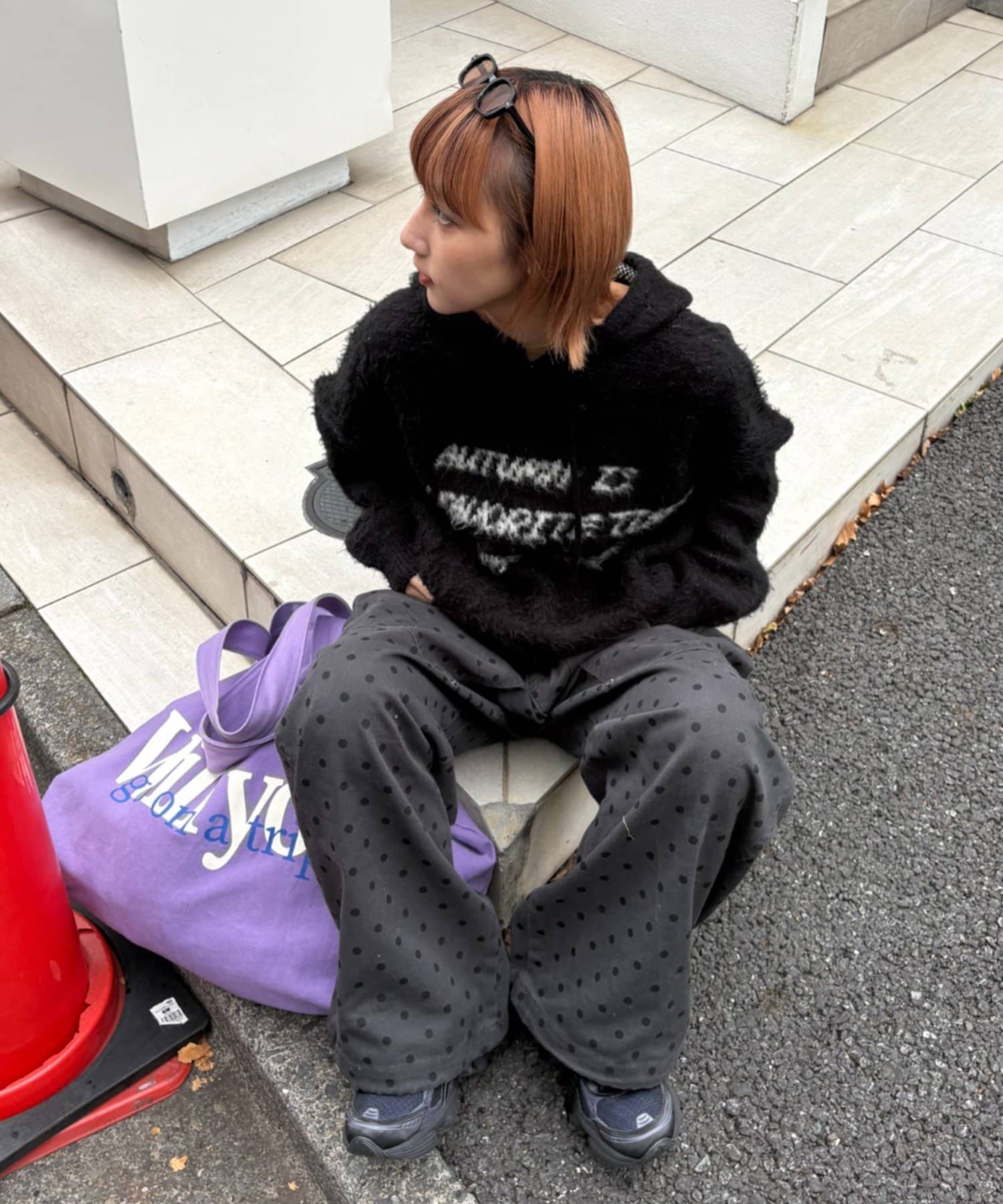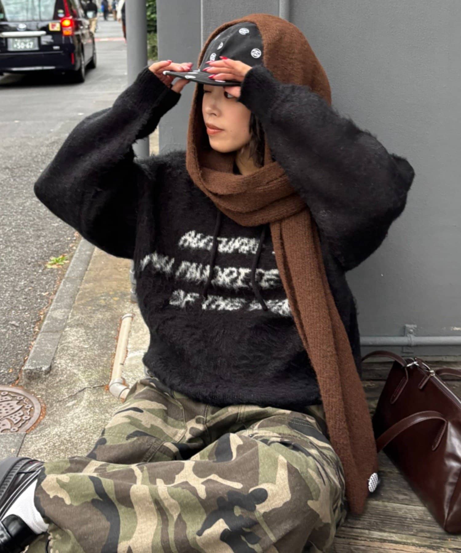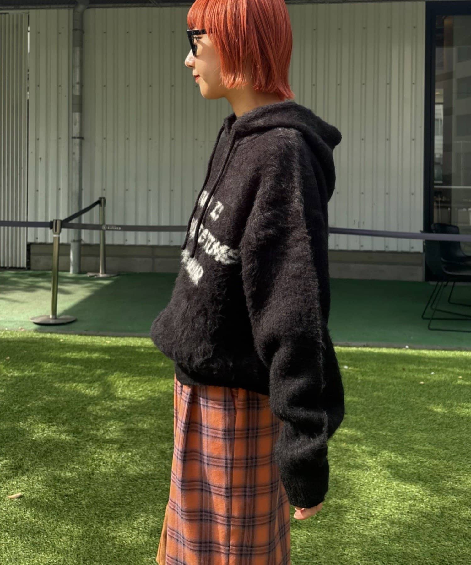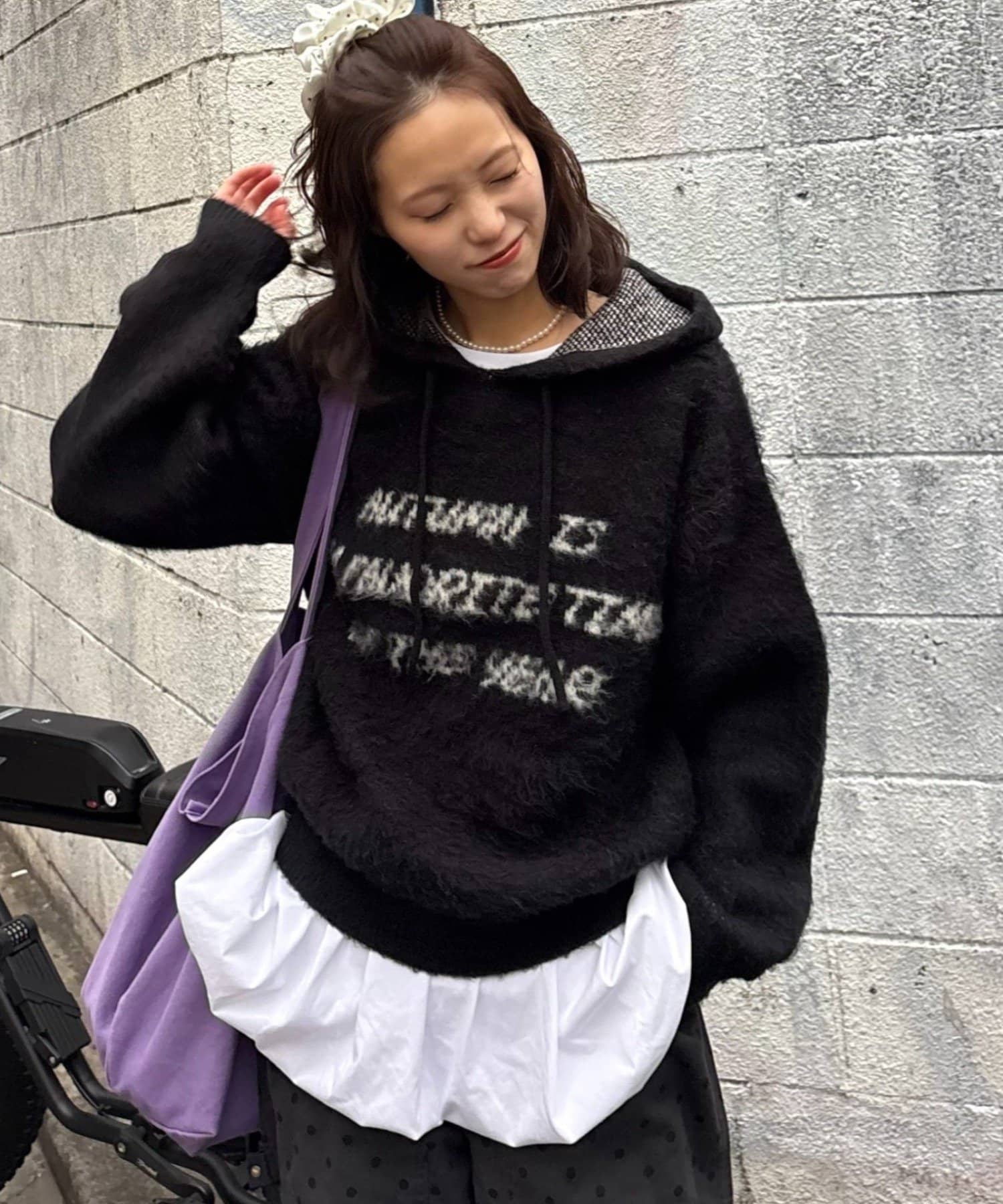 ふんわりとしたシャギー素材を使用し、思わず触れたくなるような立体感のある風合いに仕上げたニット。