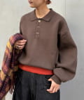 裾リブ配色ニットポロ
