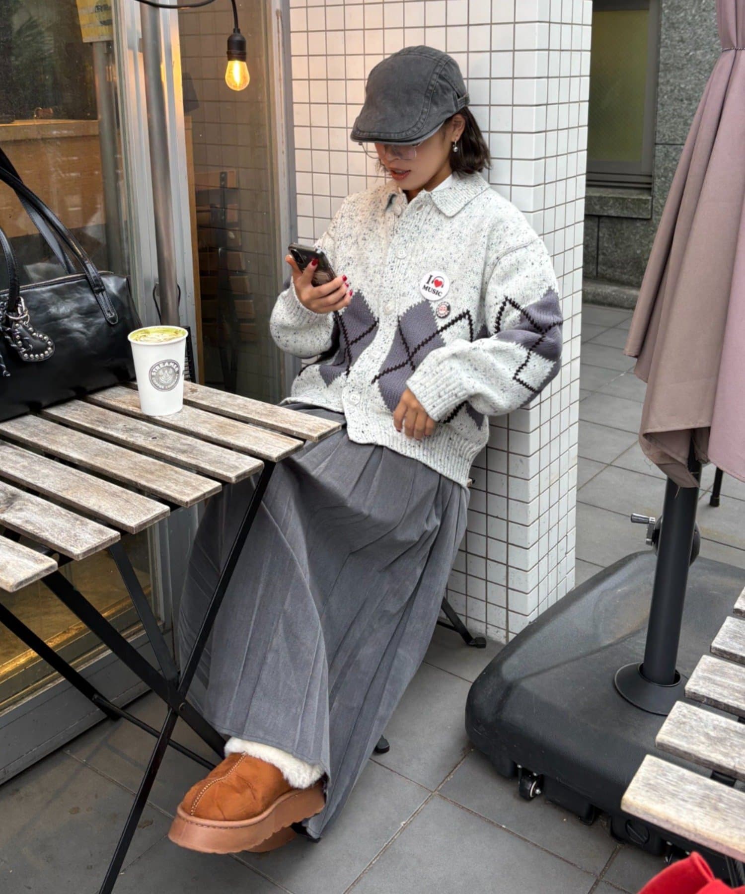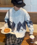どこか懐かしい雰囲気のアーガイル柄ニット。