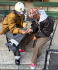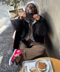 インナーにパーカーを合わせれば、ストリートカジュアルな着こなしも楽しめます。