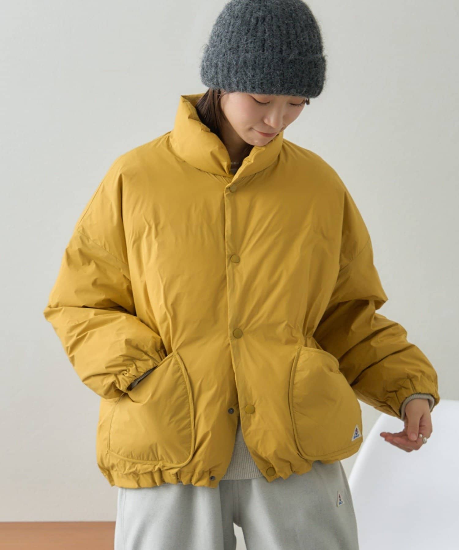 裾にはドローコードを配し、シルエットの調整と同時に風も入りづらくなる実用性も備えています。