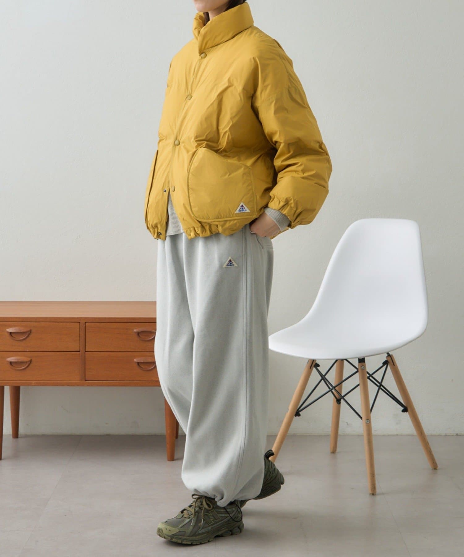 程よくゆったりとしたシルエットで、厚手のスウェットやニットにもラクに羽織れるサイズ感。