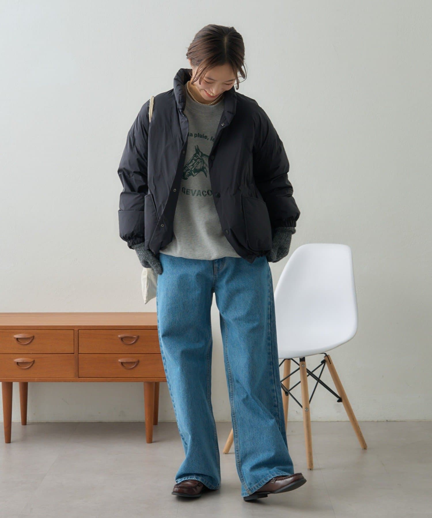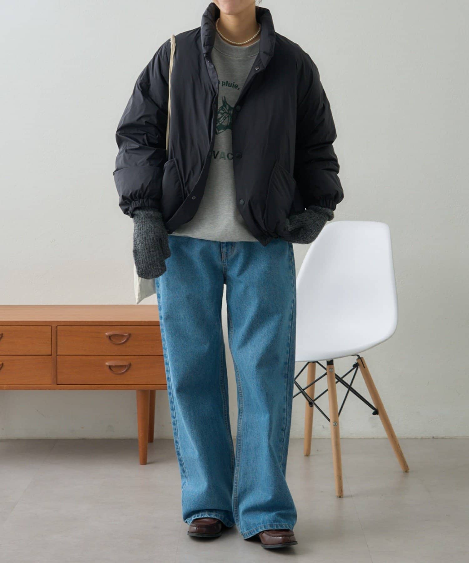 すっきりめのボトムと合わせると、バランス良くまとまります。