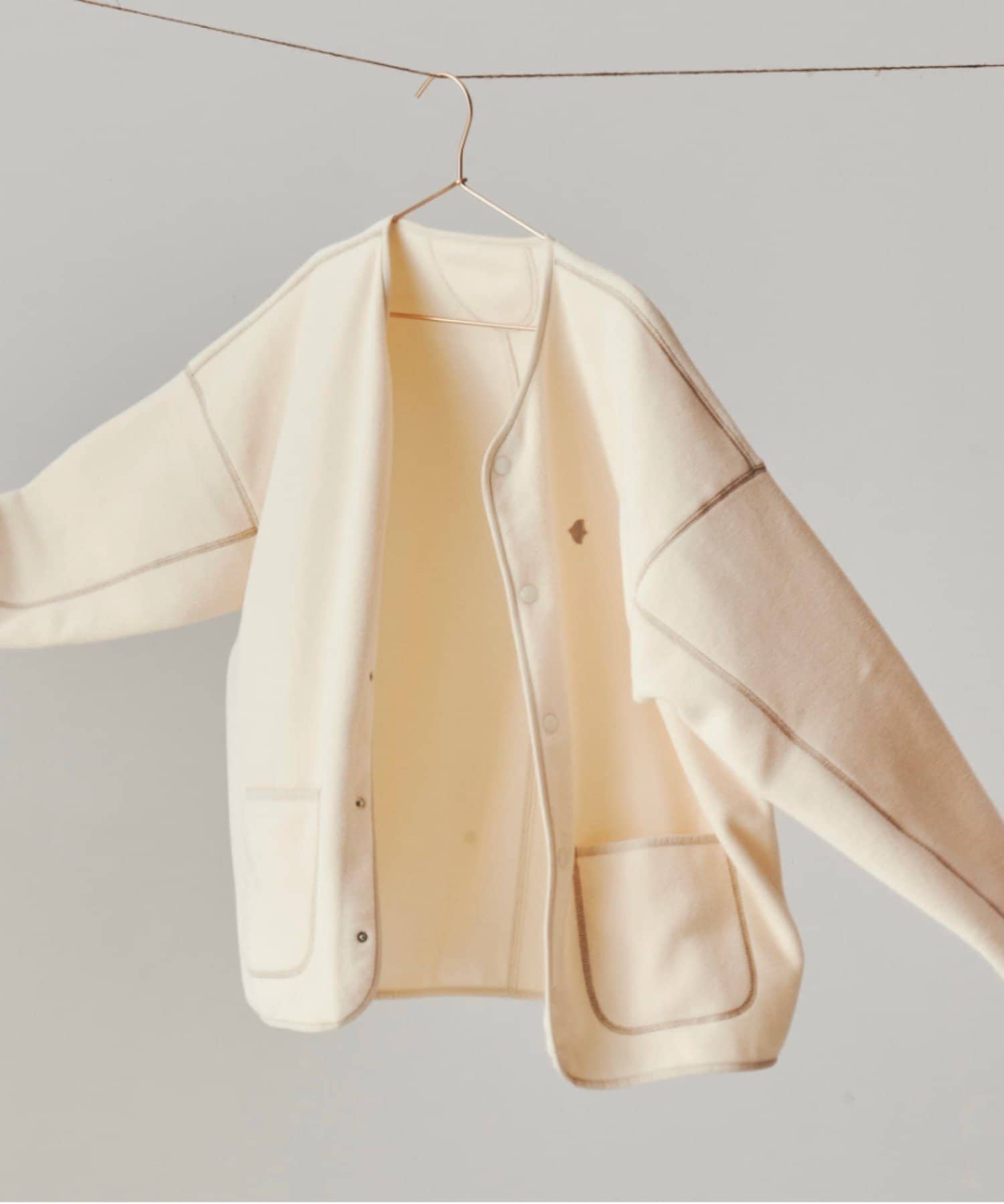 従来のフリースの重さをなんとか改善したいという想いでこだわった「エアリーフリース」素材。