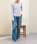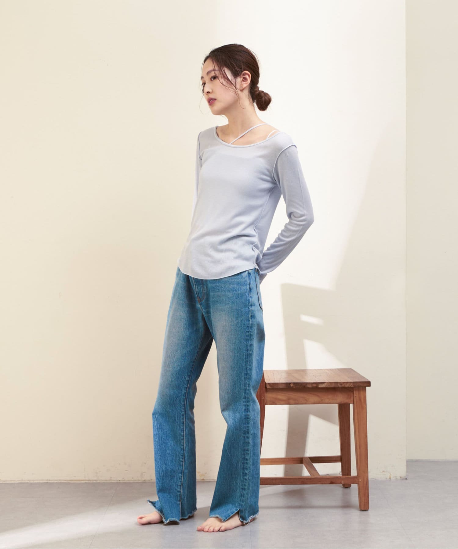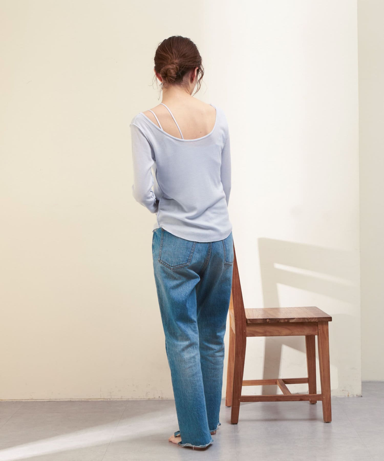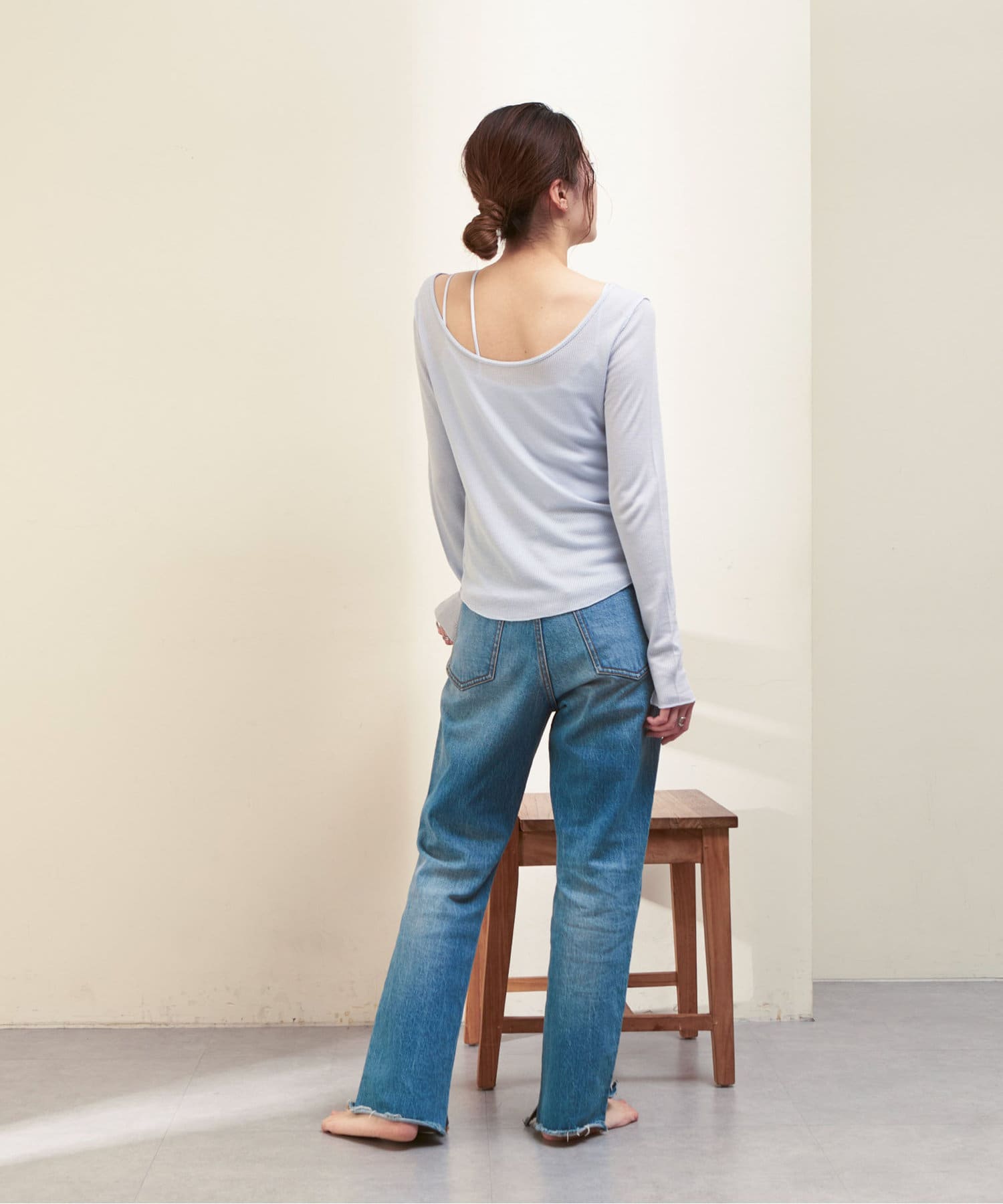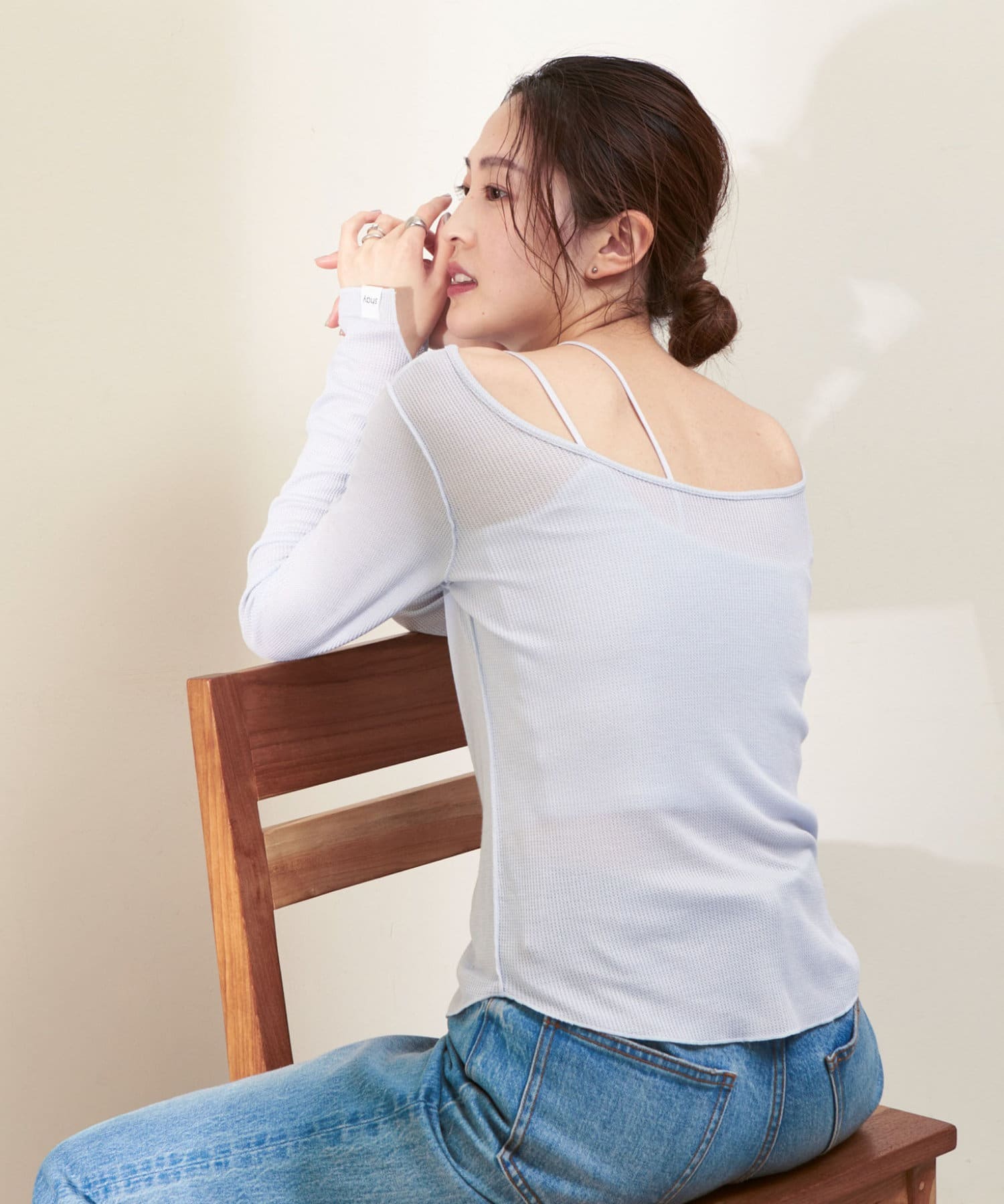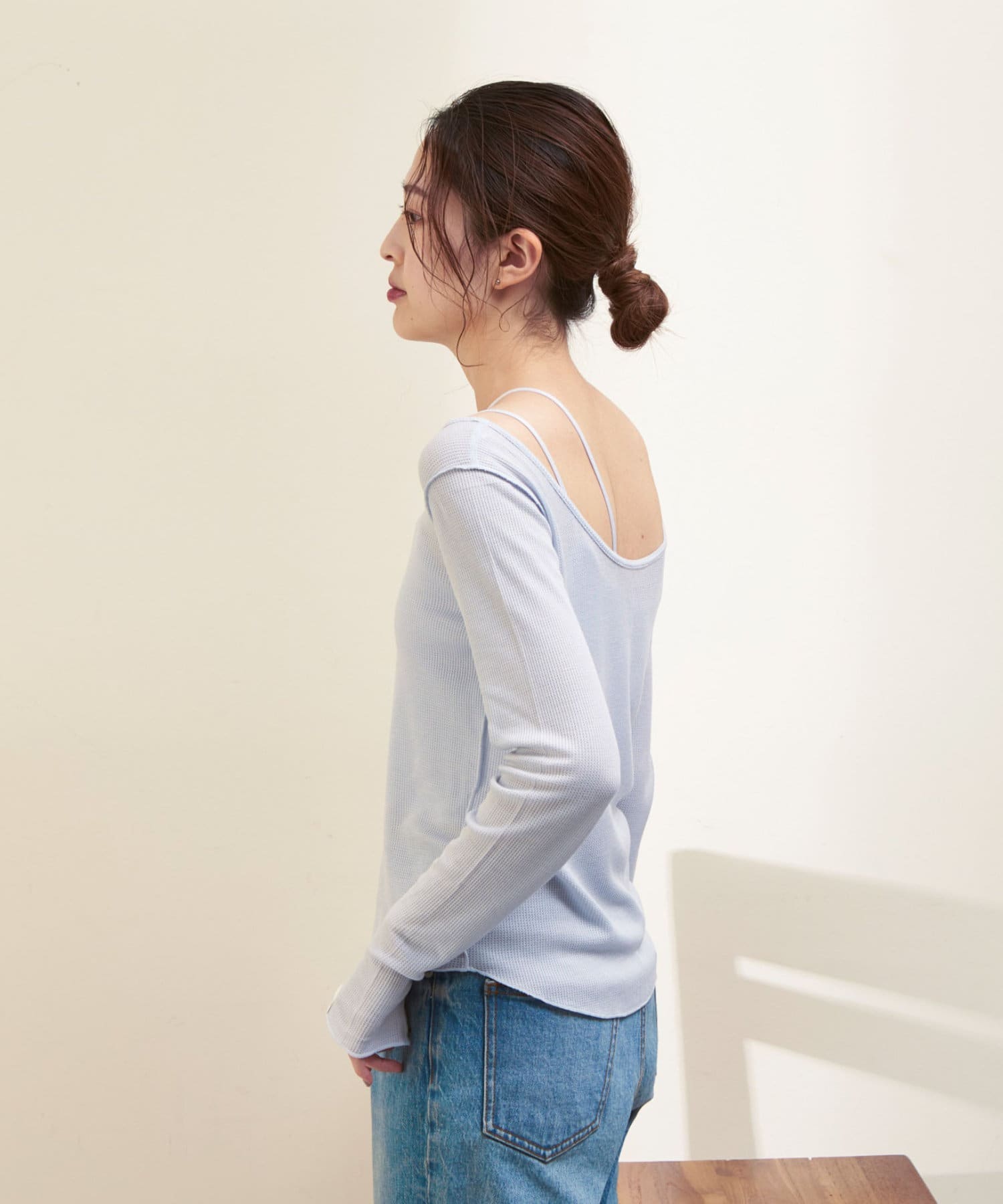 シアーワッフルロンTeeは、後ろが大きく開いたデザイン。