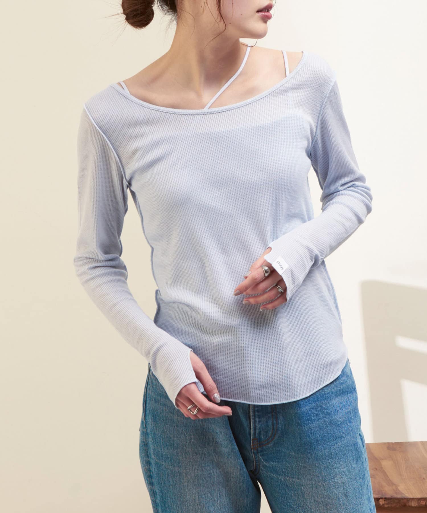 【shay/シェイ】シアーワッフルロンT×カップ付キャミ(セット)