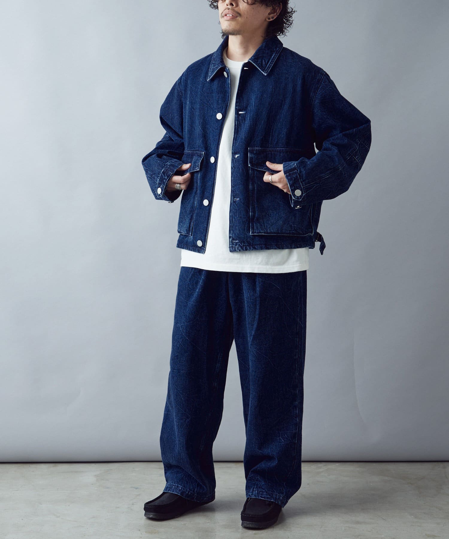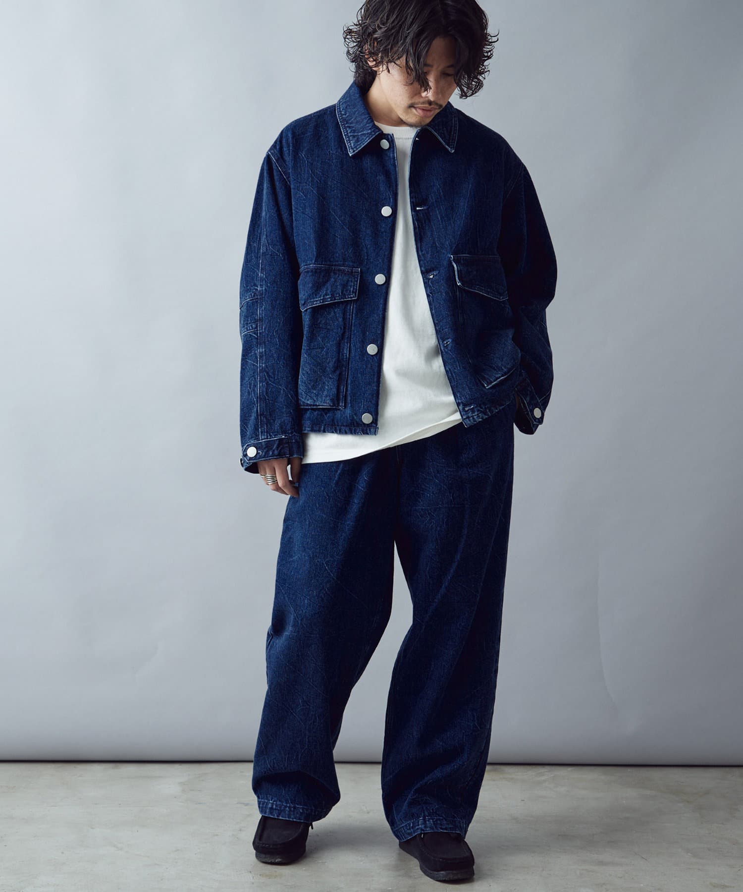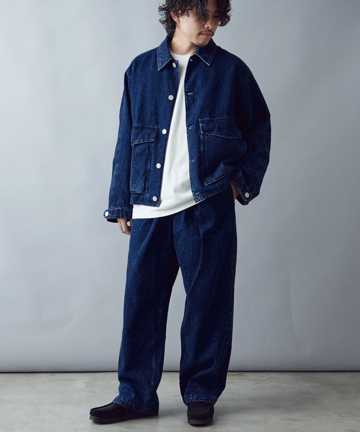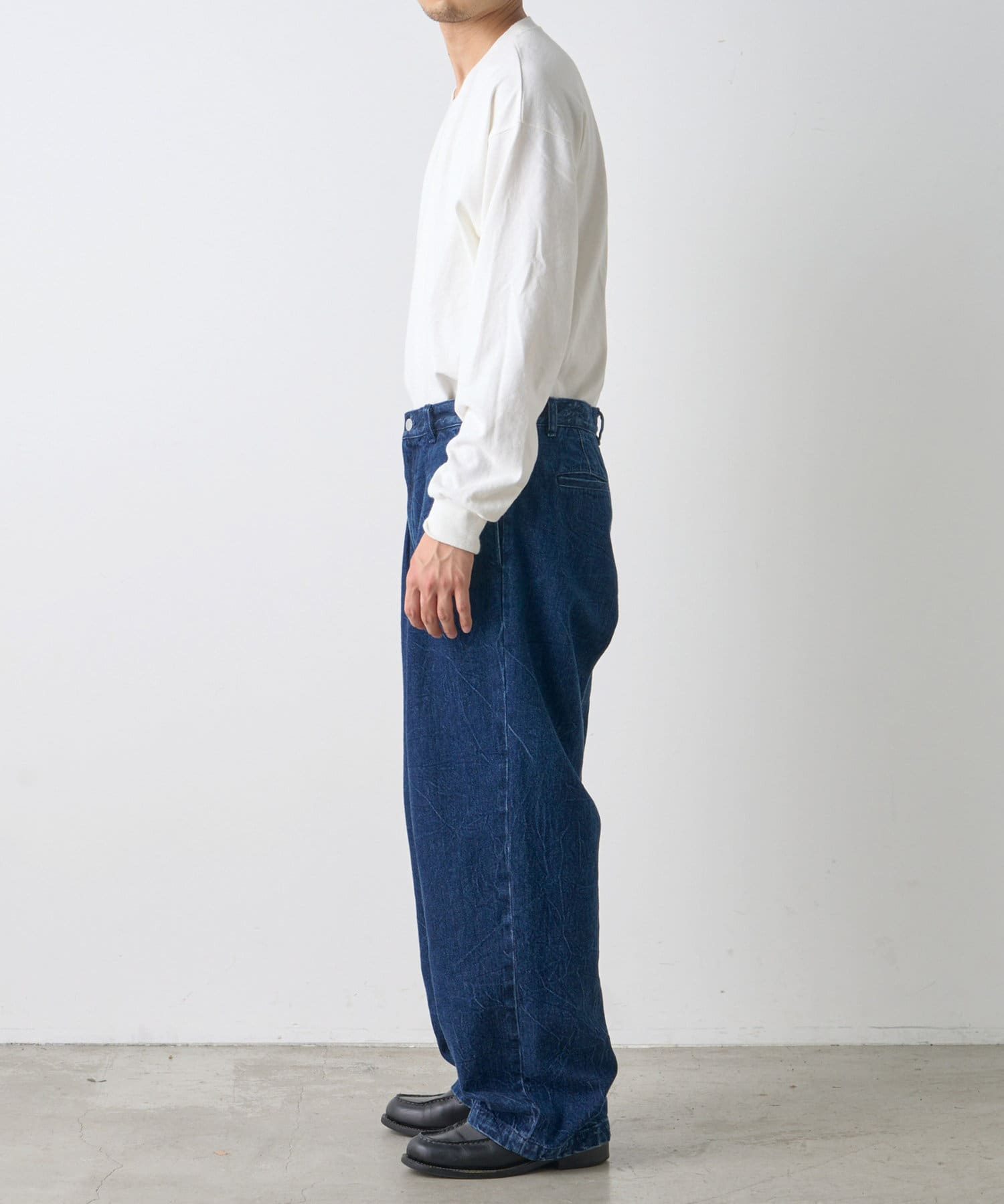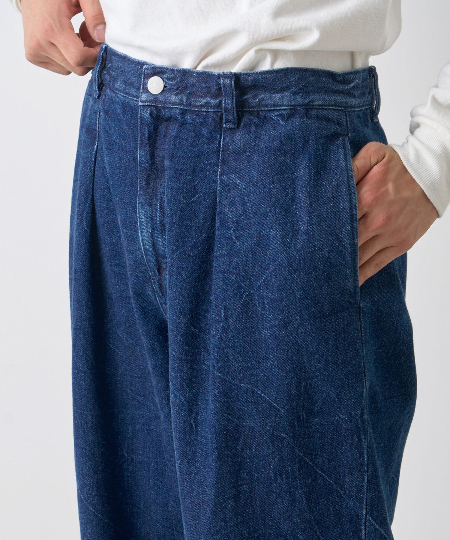 絶妙なヒビ加工のワイドデニム