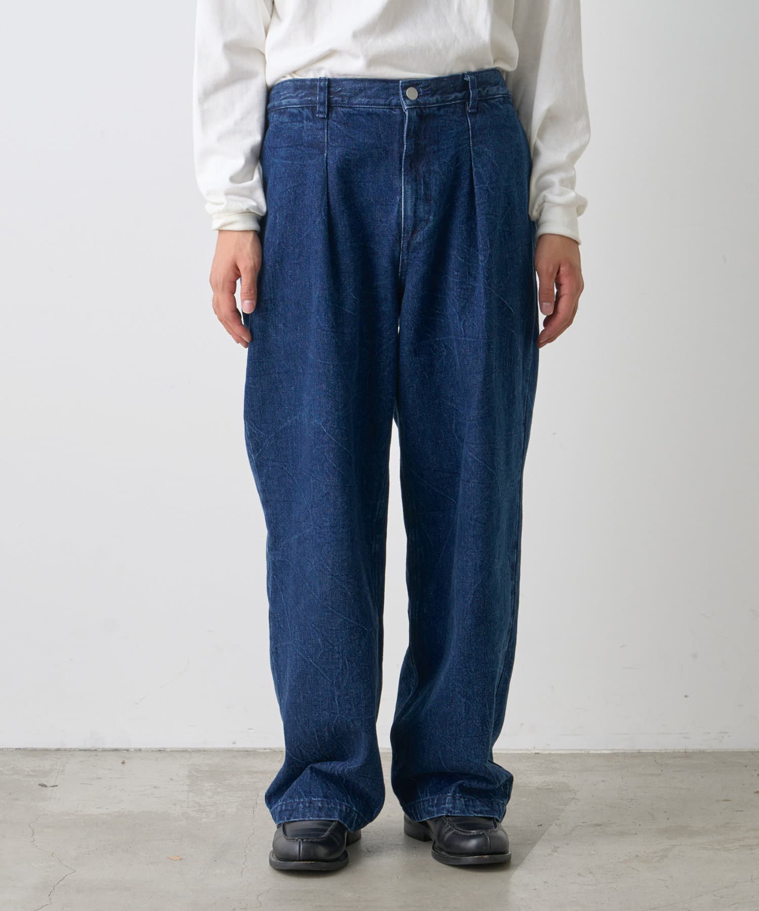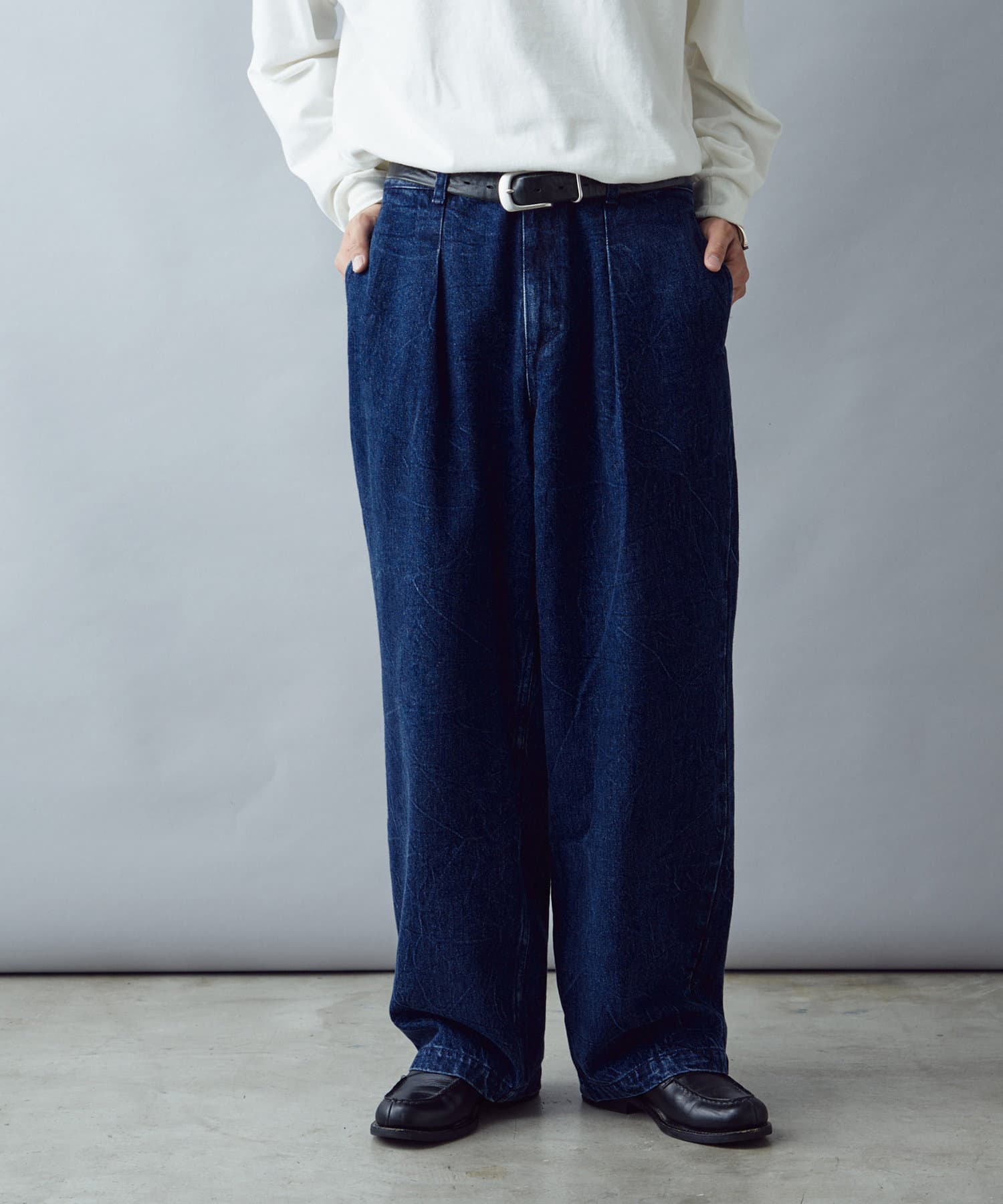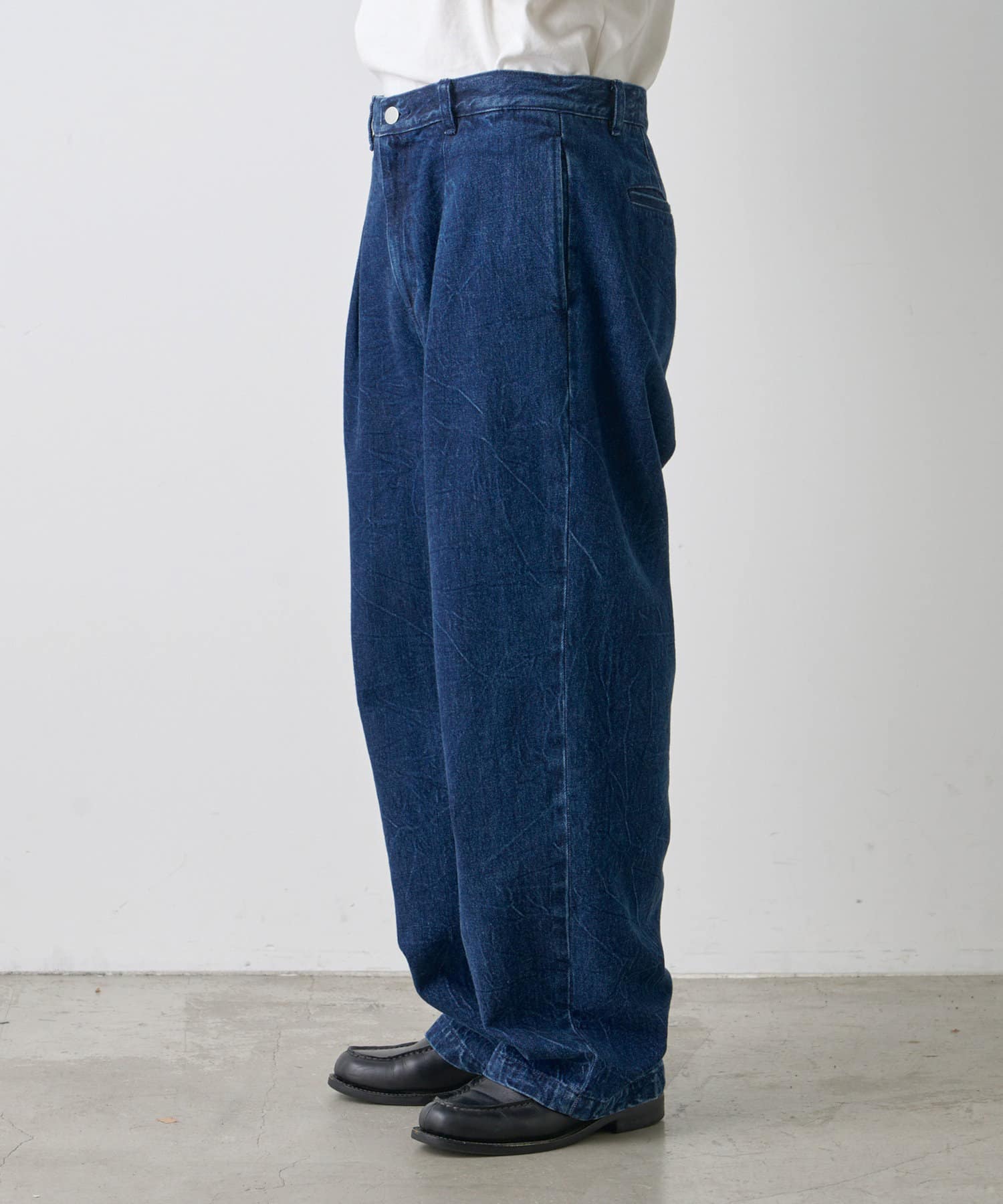 ・上品な加工感とワンタックのディテールがコーデに綺麗目な要素をプラス。