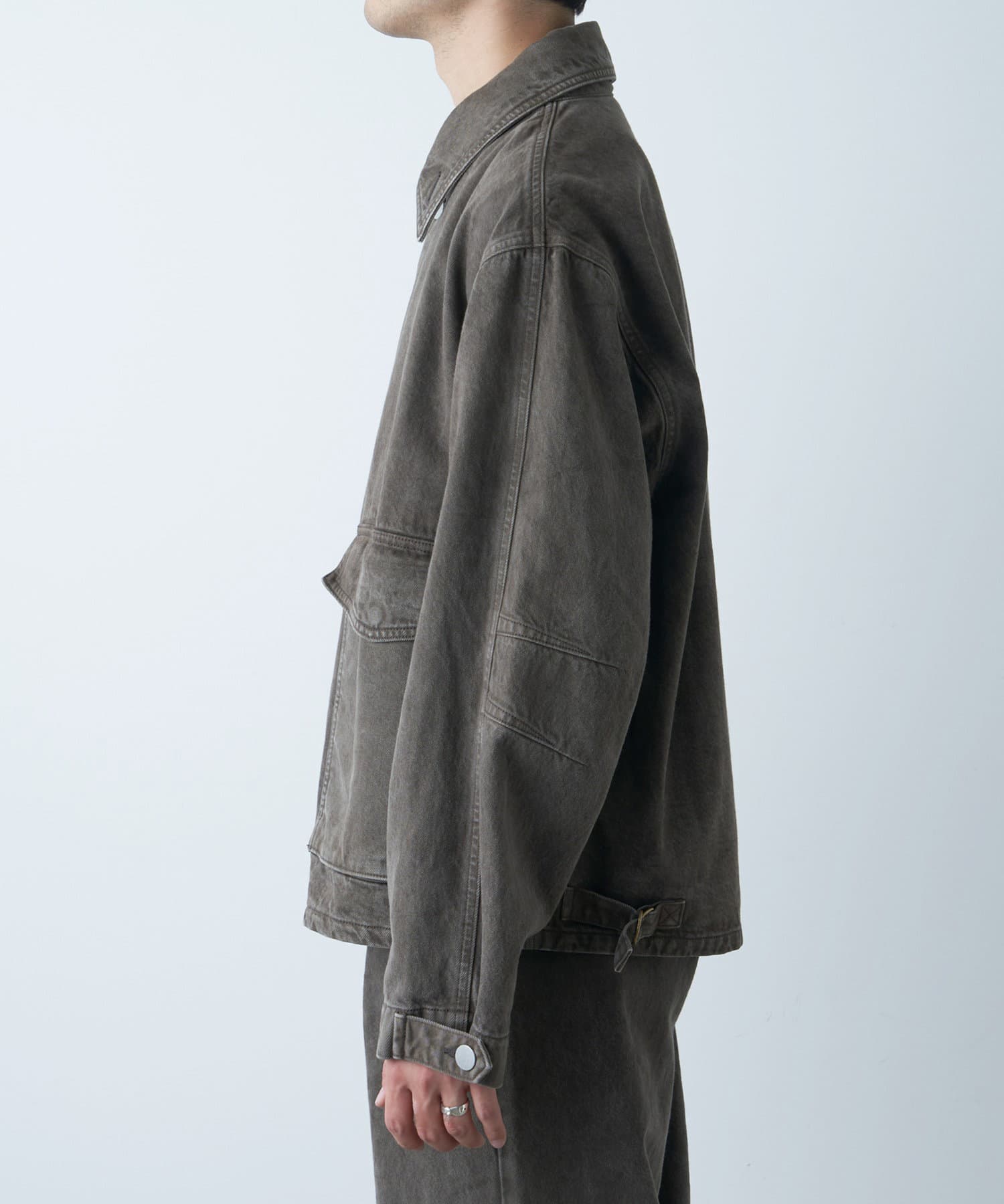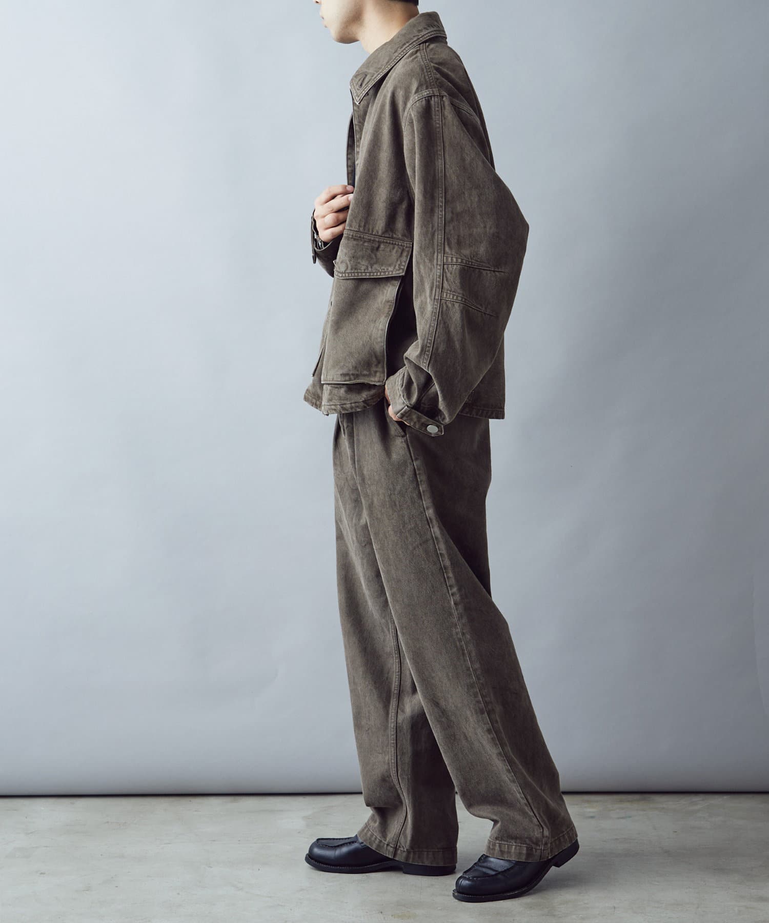 ・ミリタリーのディテールでもあるアクションプリーツを配置。