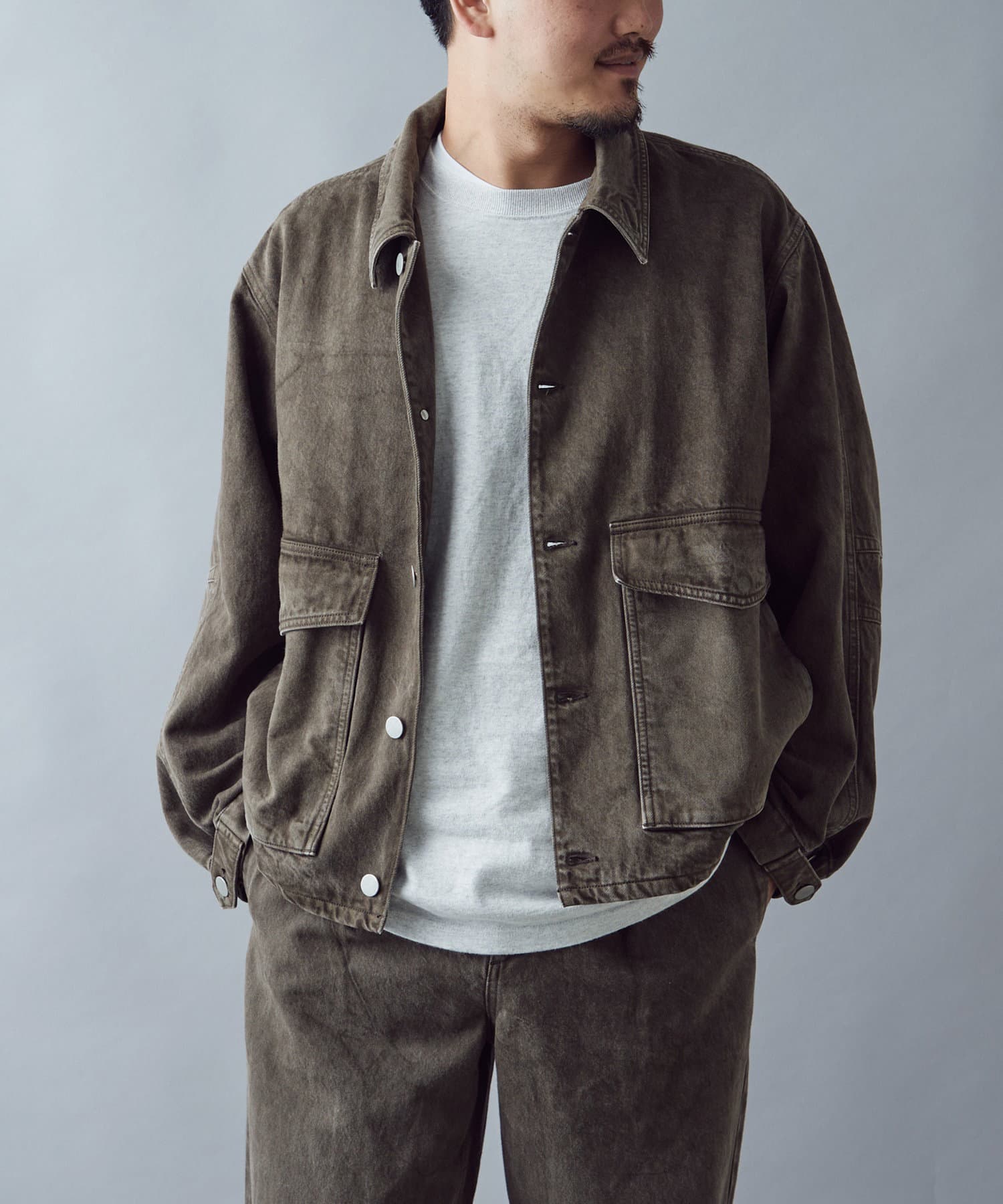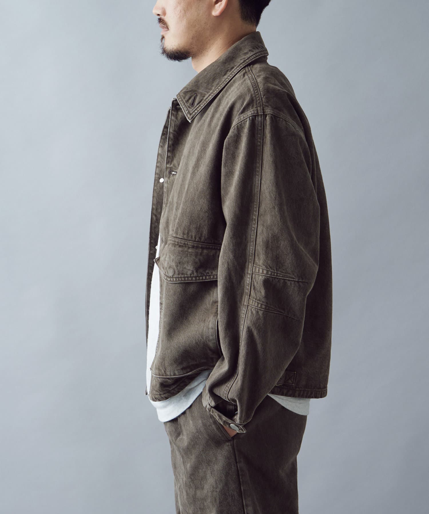・大ぶりのポケットがスタイリングのアクセントになる収納力のあるブルゾンです。