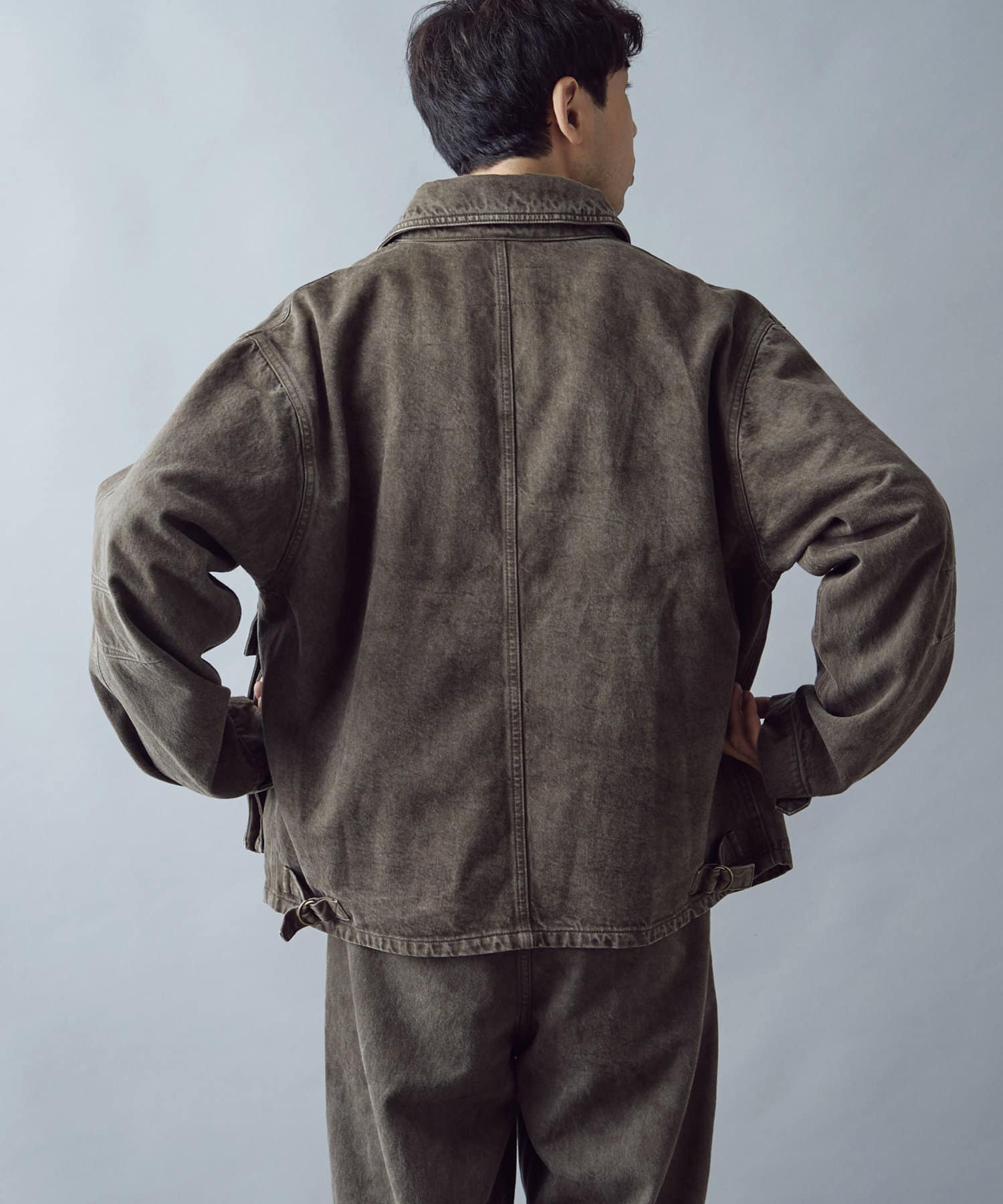 ヴィンテージのような加工感が特徴のハンティングジャケット。