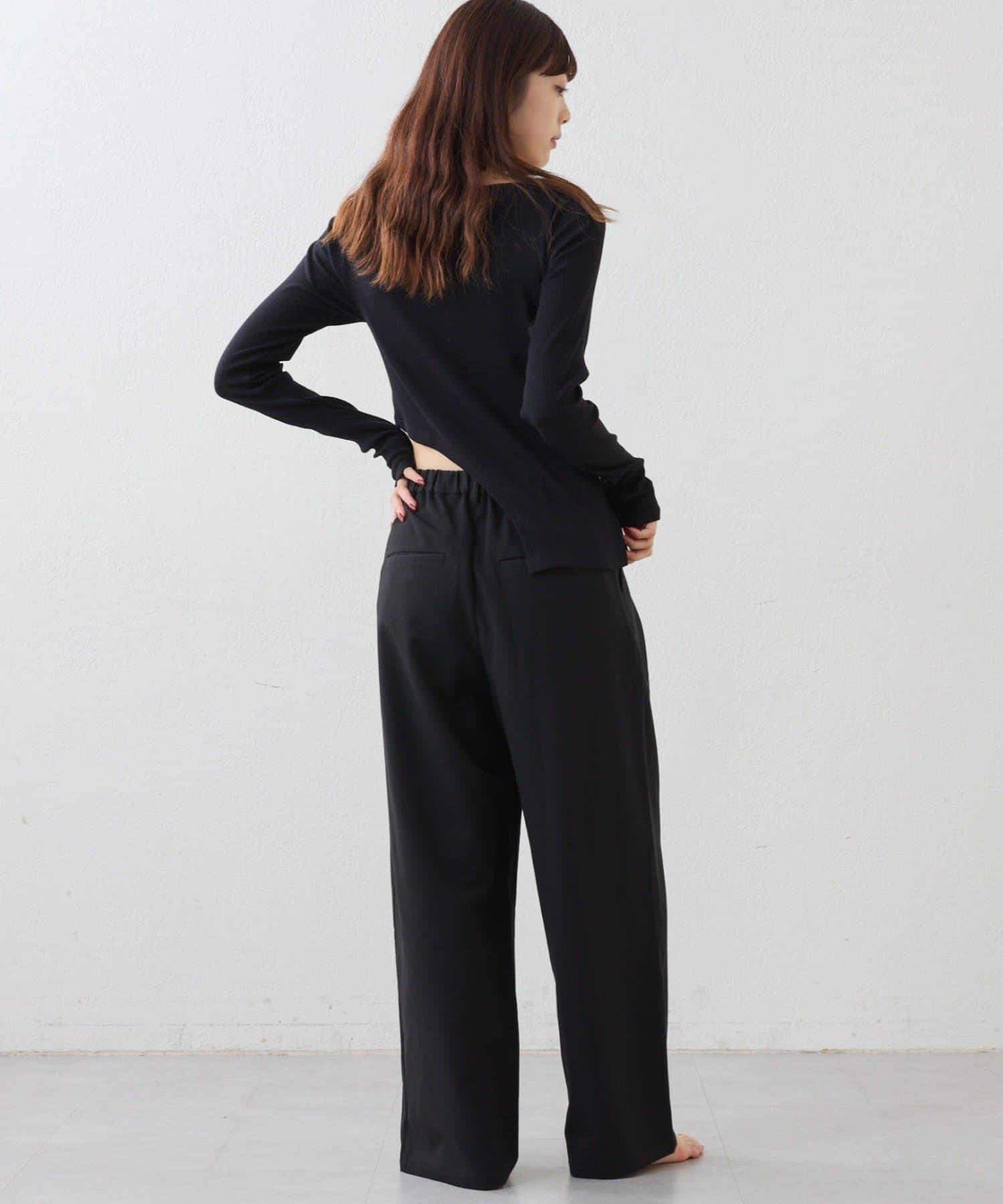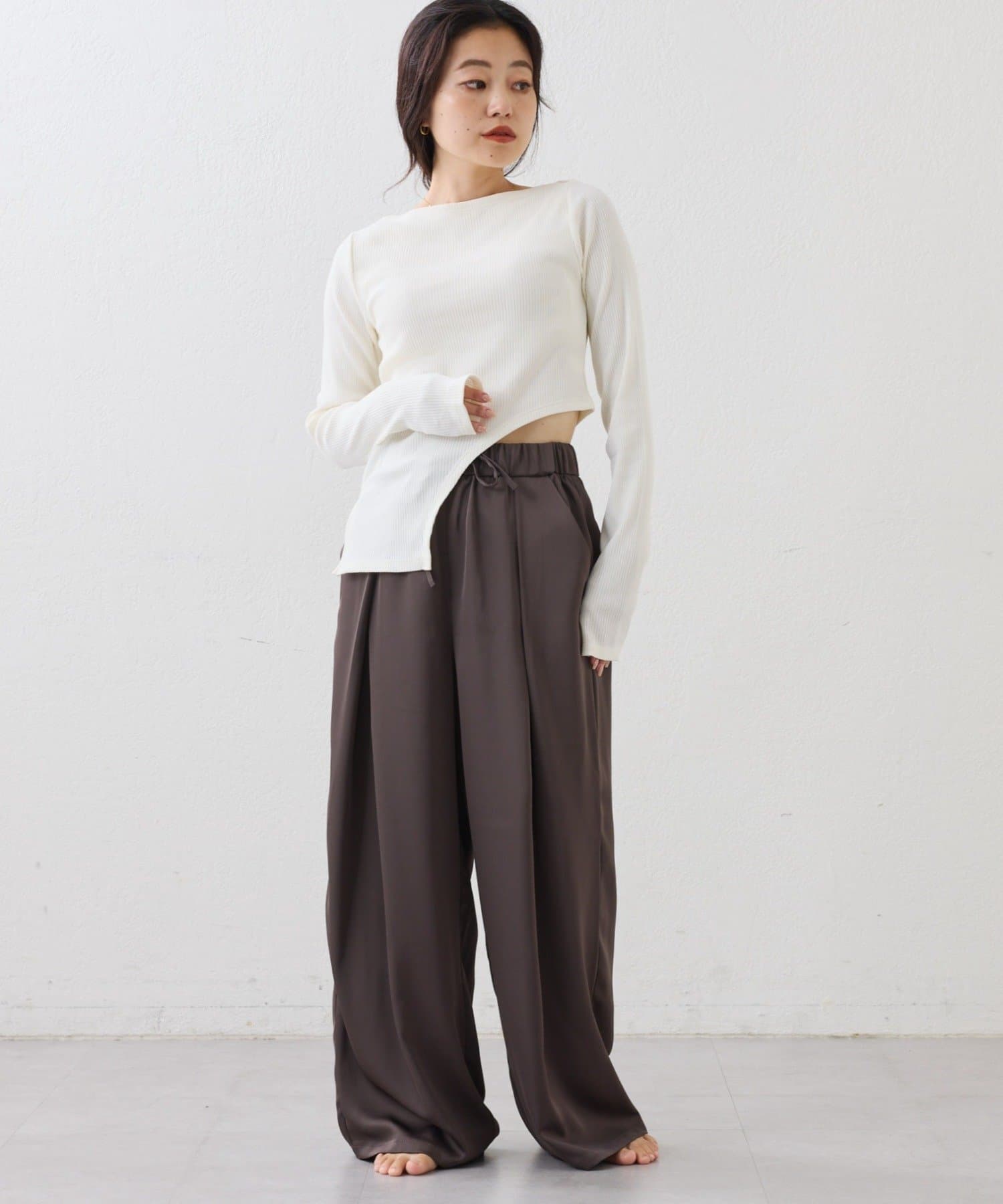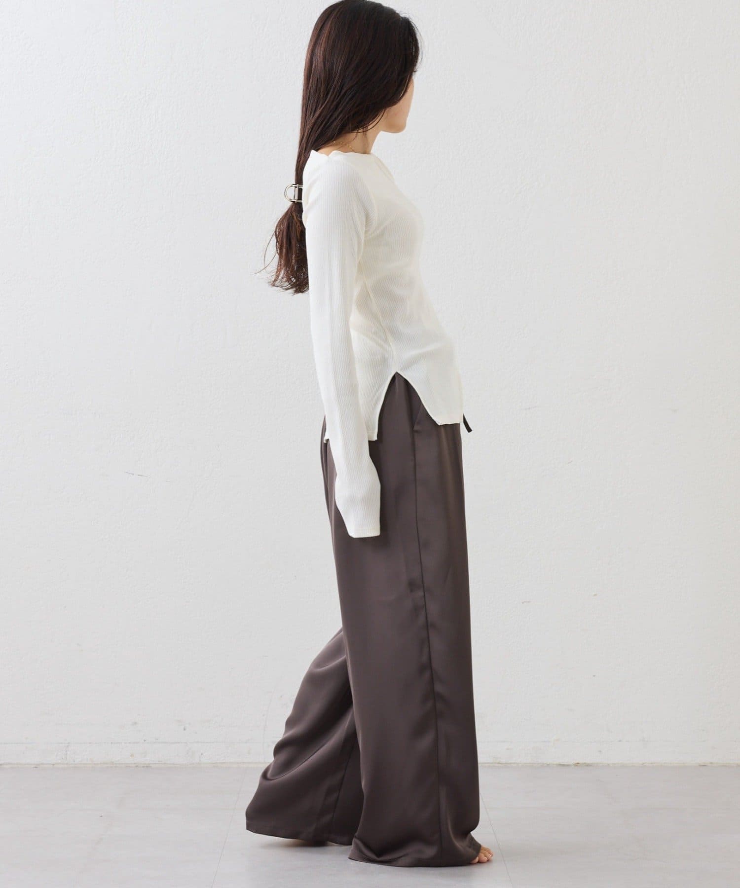 スラックスにミュールの大人っぽいコーデにも映えるオススメアイテムです。