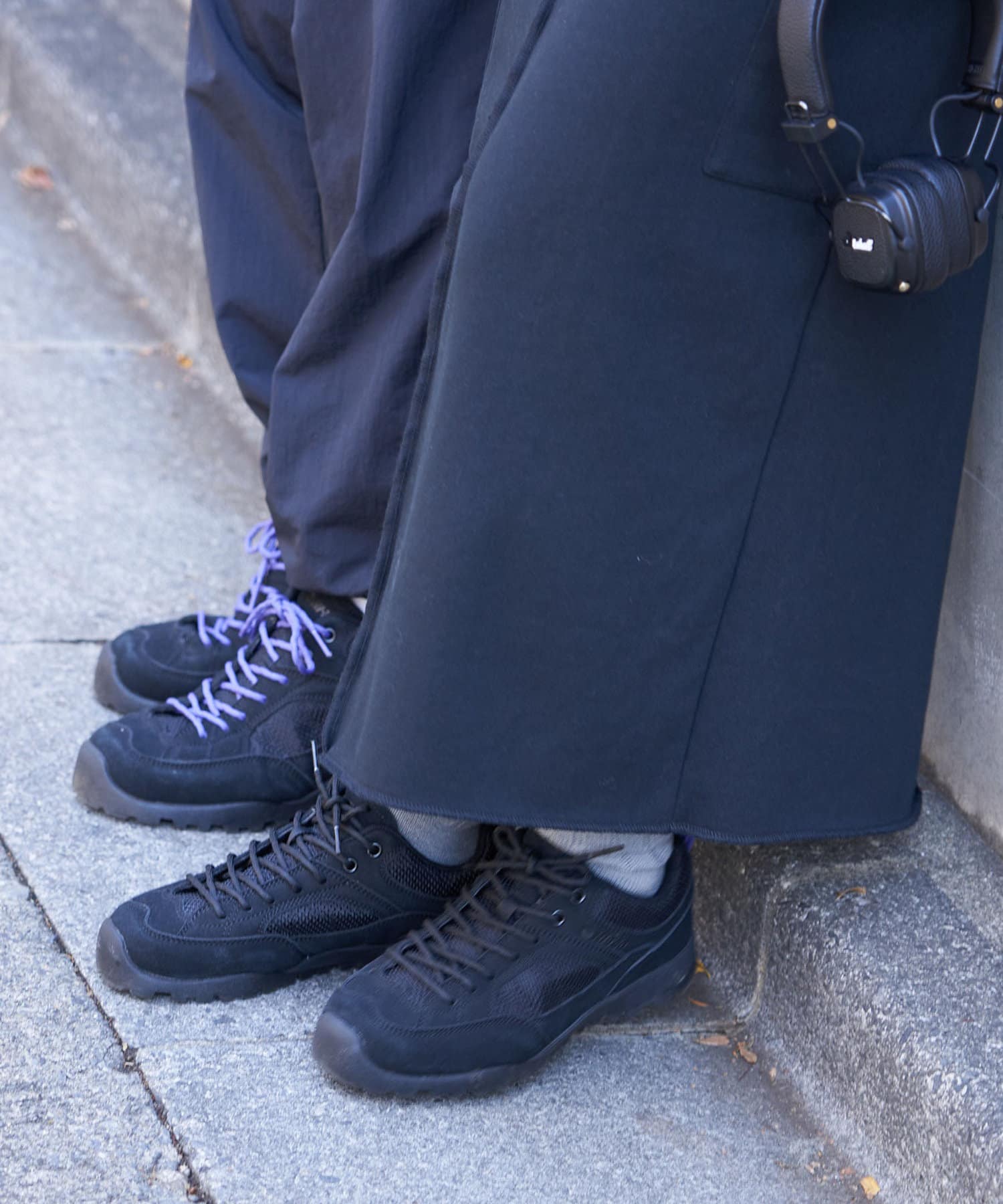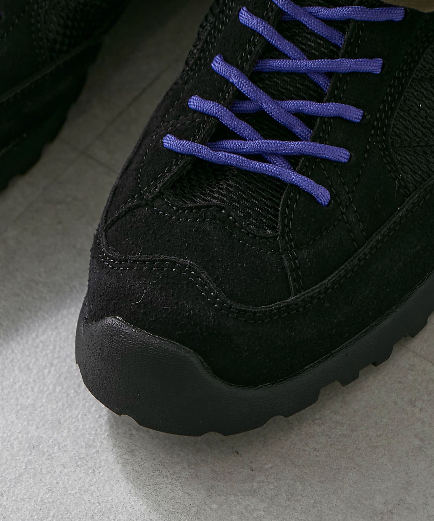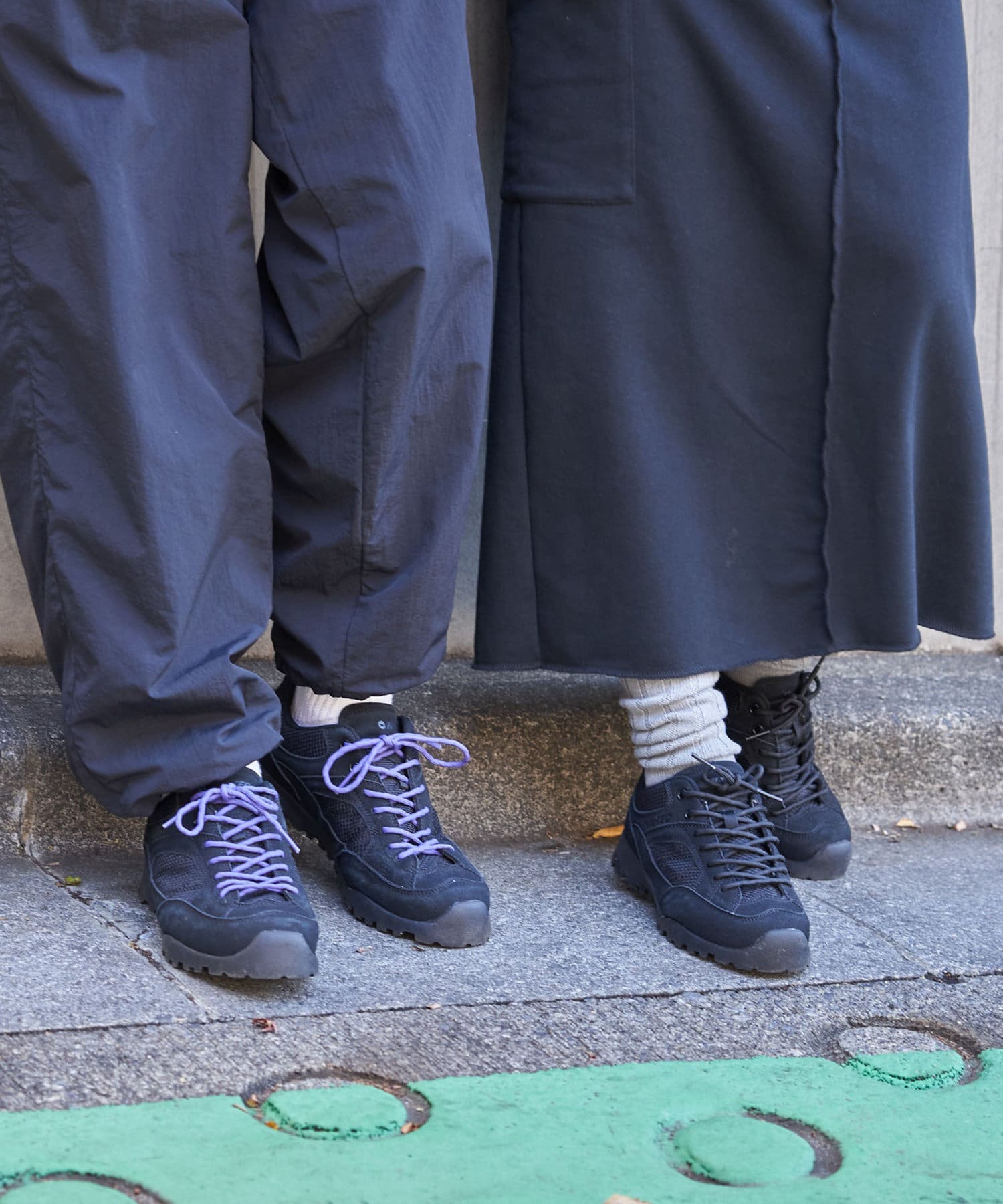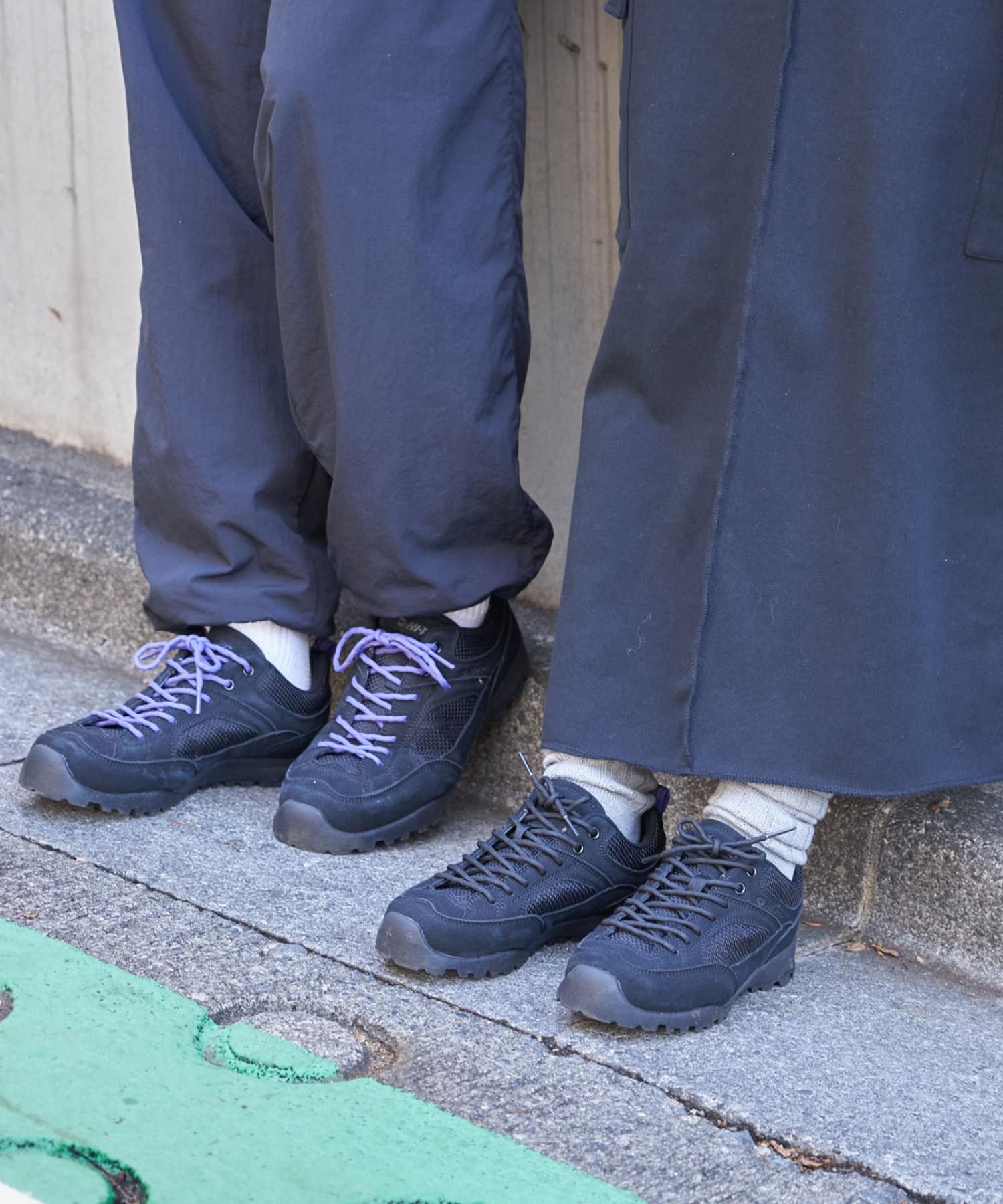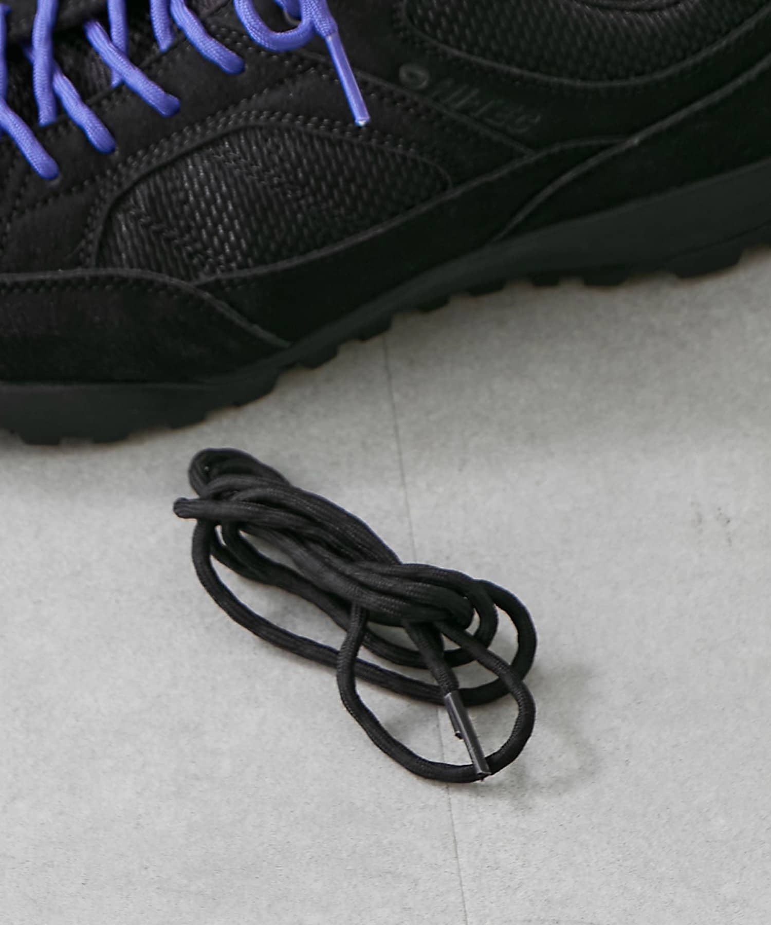 (ブラックには、ブラックとパープルのシューレースが、ベージュには、ベージュとマスタードのシューレースが付いています。)