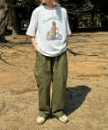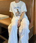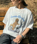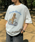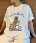 【愛犬がe-bikeに乗って出かけるシーン】をパロディーにしたグラフィックTeeです。