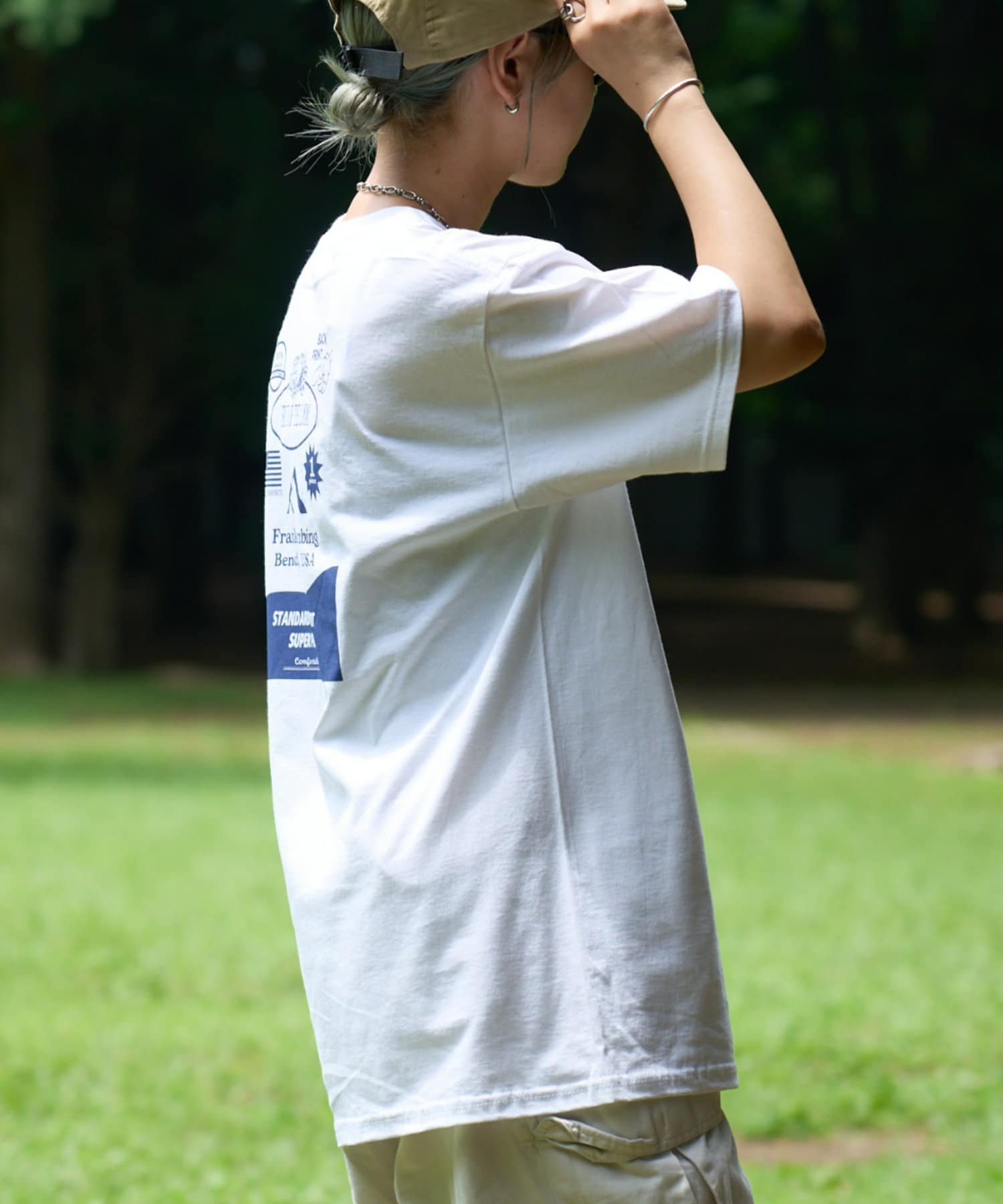 ・背面のプリントが目を惹くのでコーデのアクセントに最適です◎