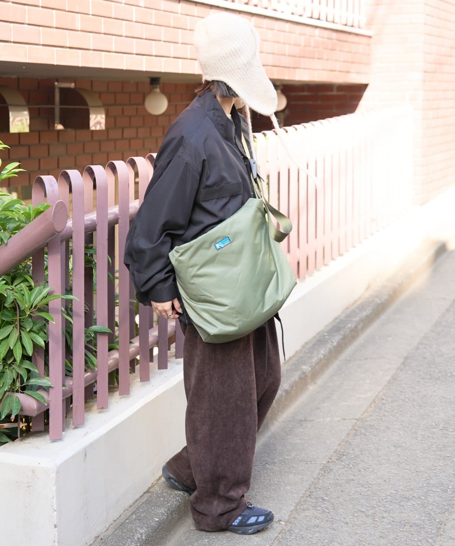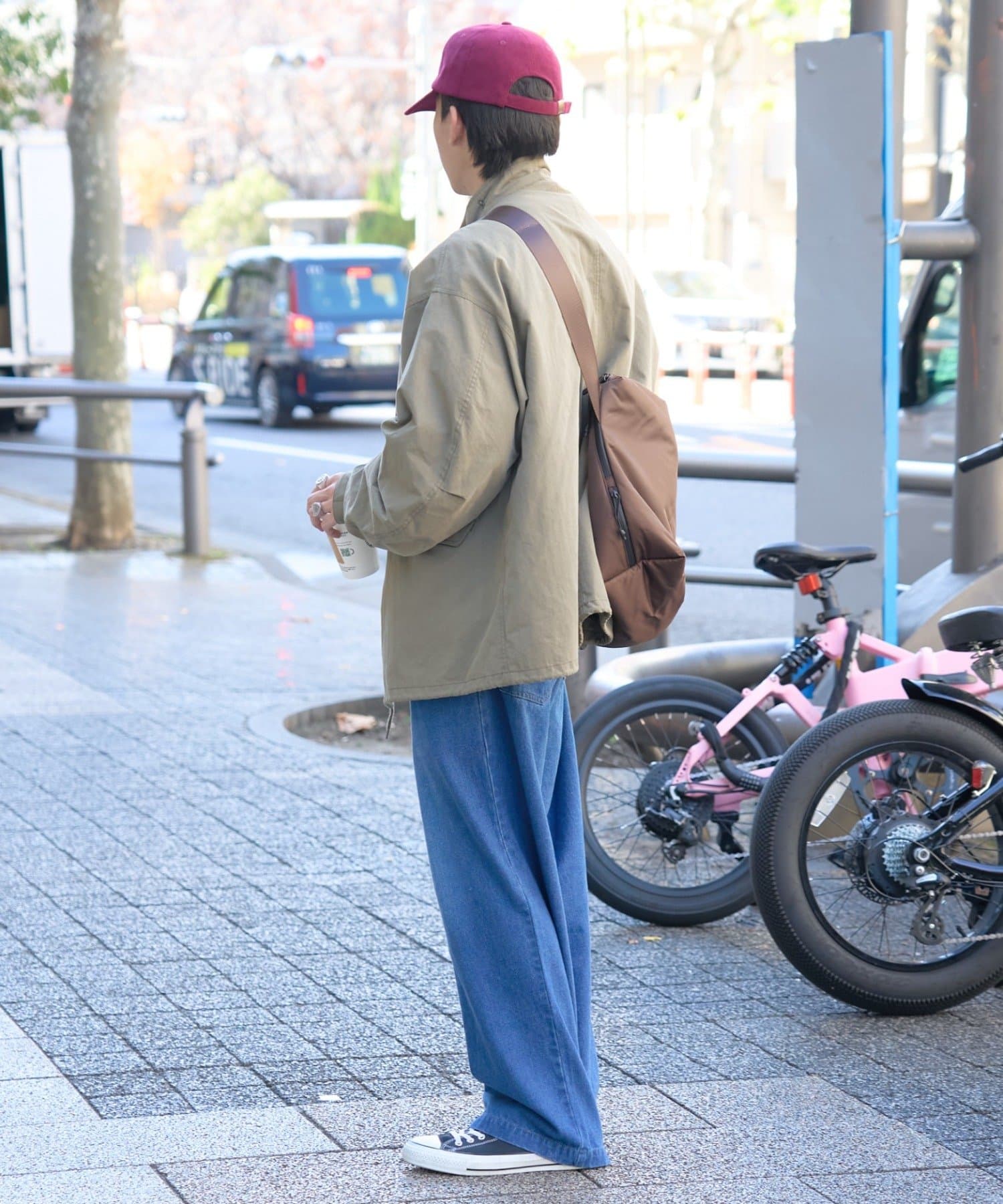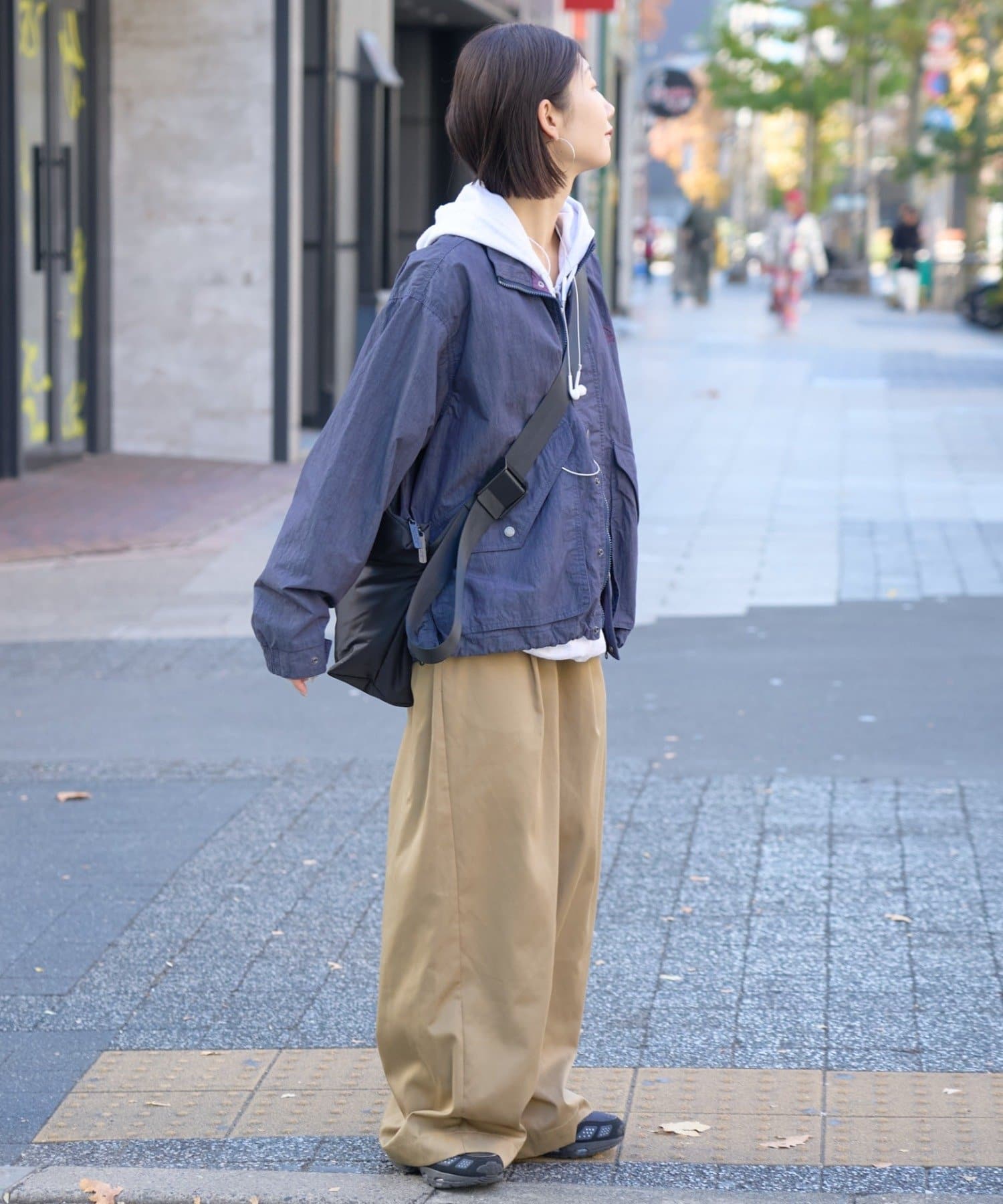 ナイロンの軽やかな素材感がカジュアルコーデにフィット。