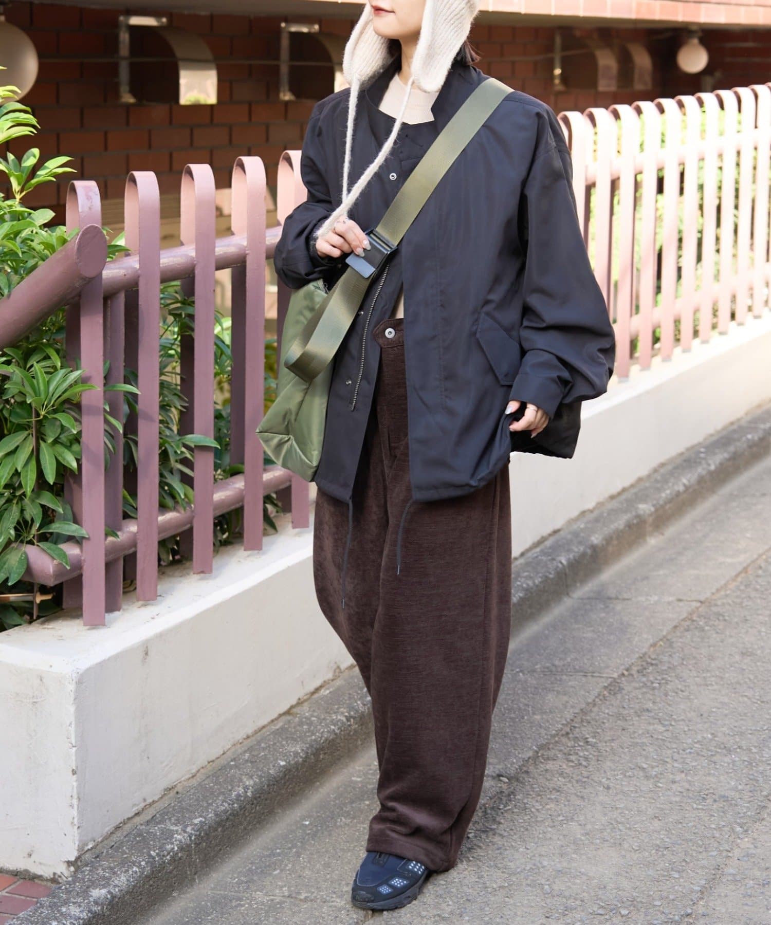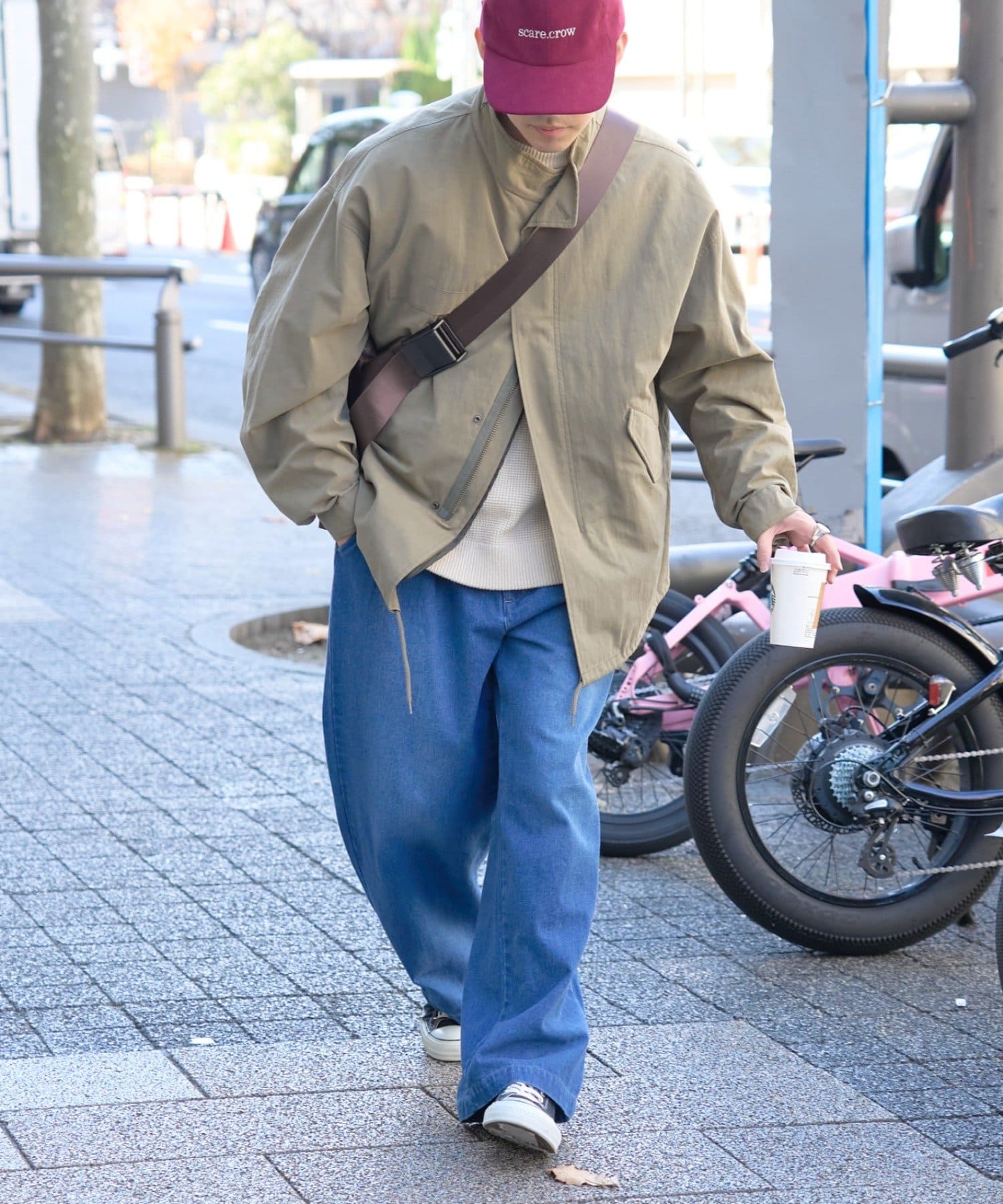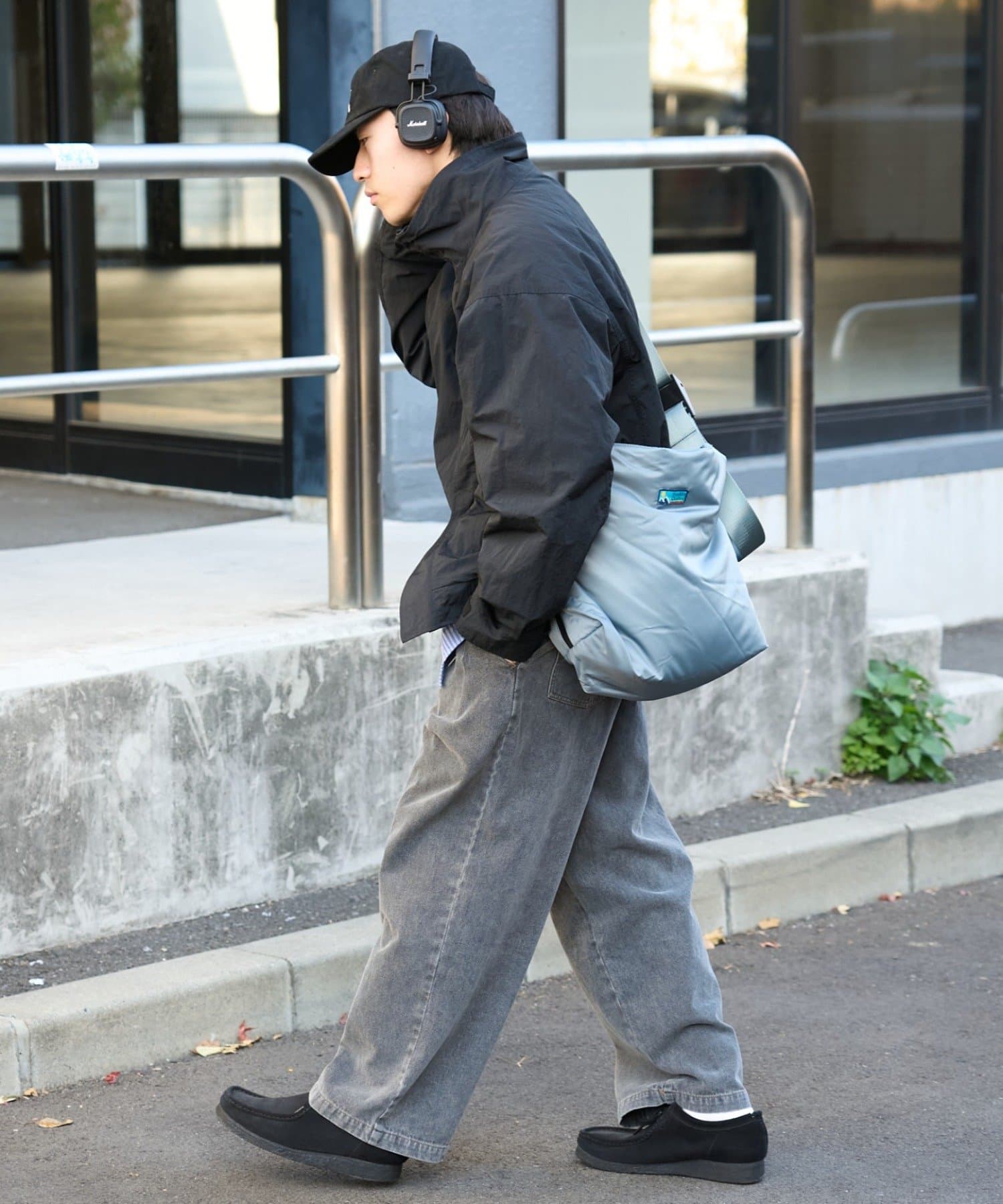 ナイロンの軽やかな素材感がカジュアルコーデにフィット。